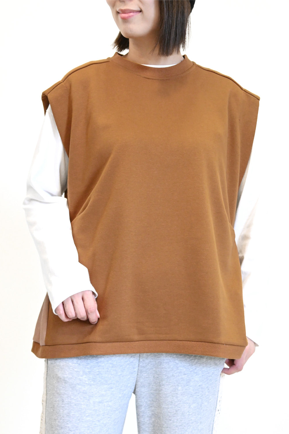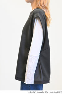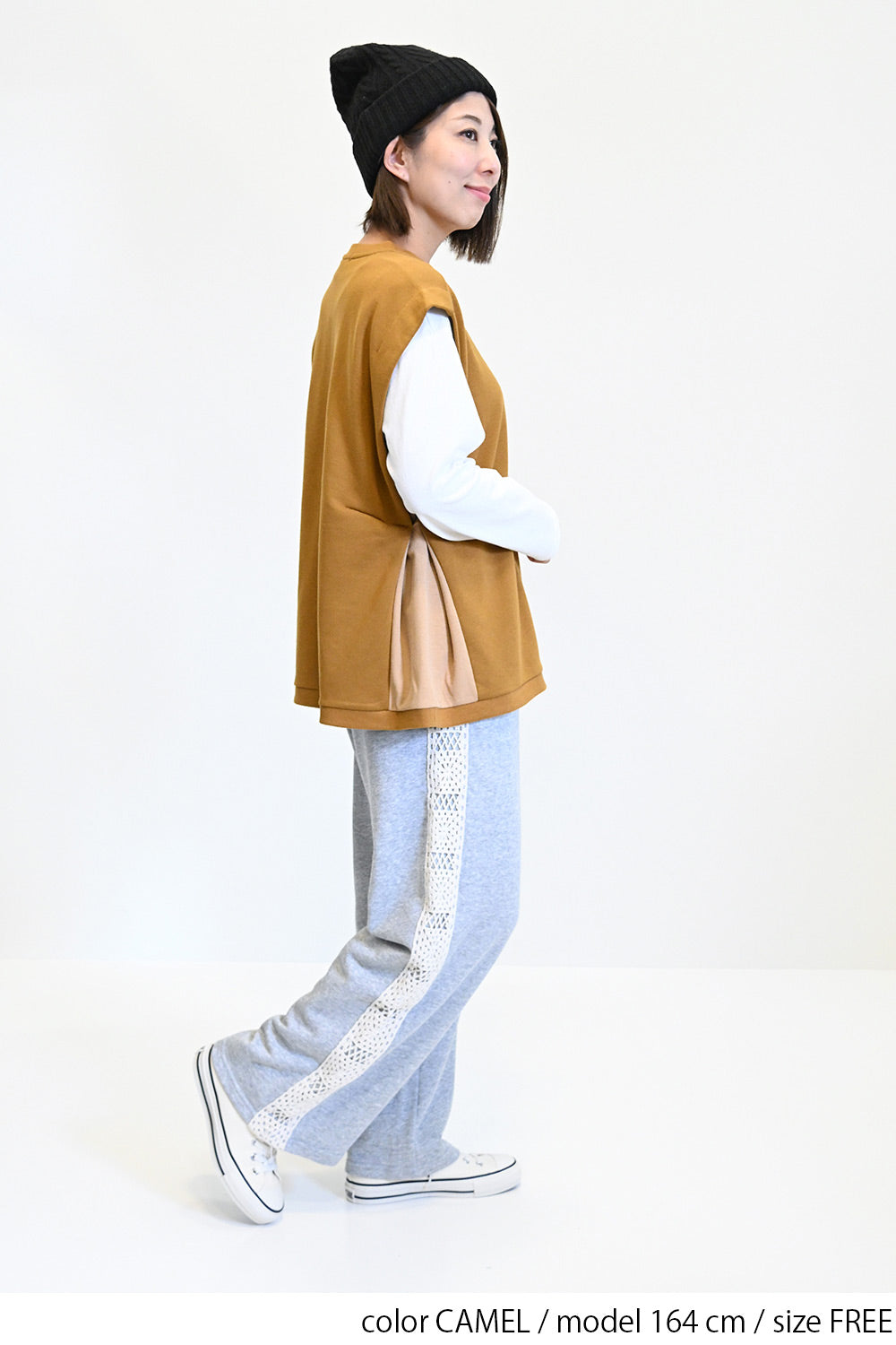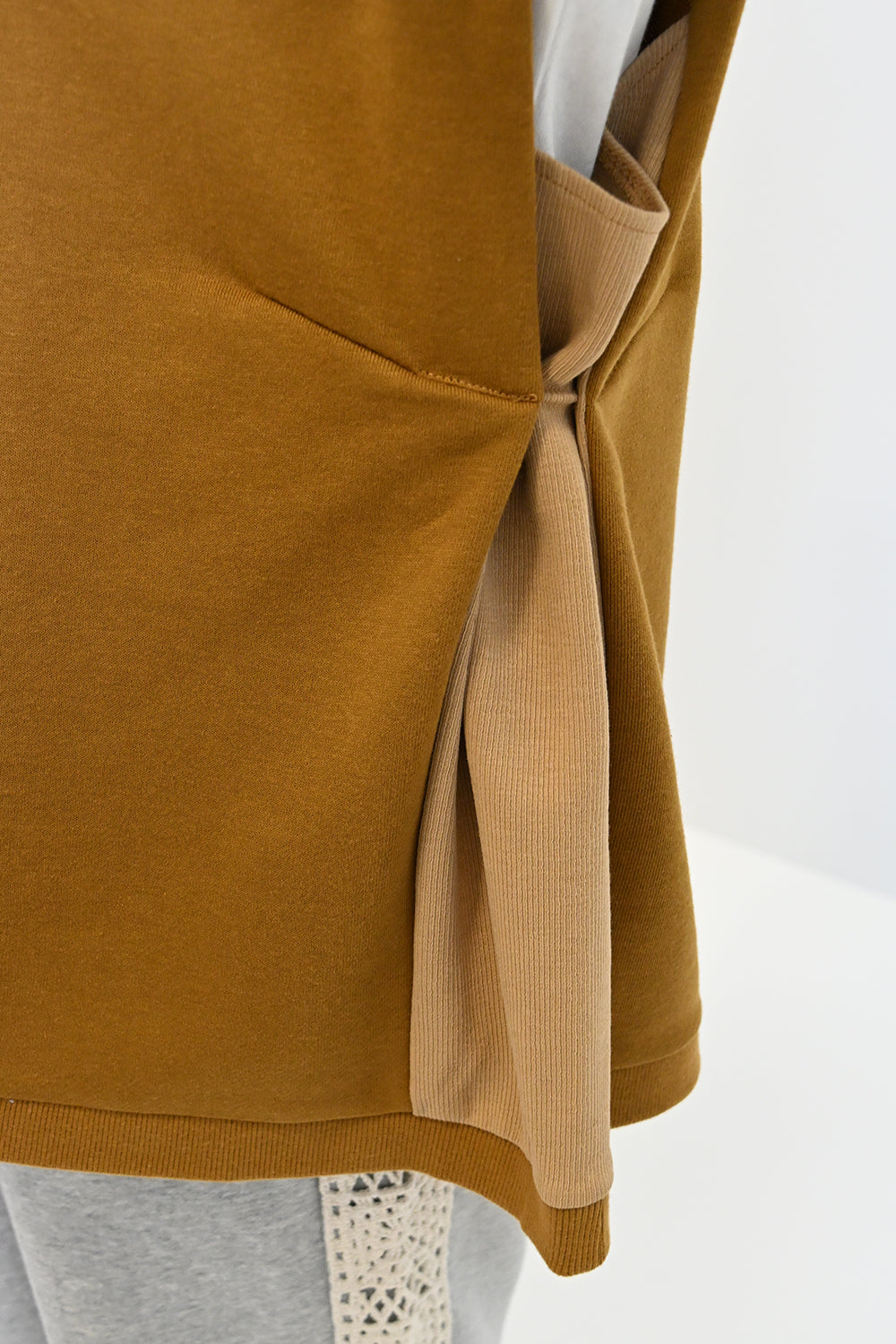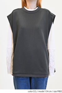 カジュアルなスウェット生地をベースに、サイドをリブで切り替えたこだわりのデザイン。