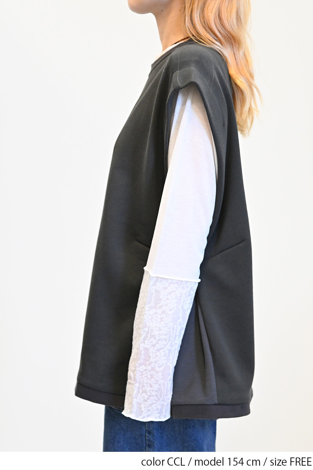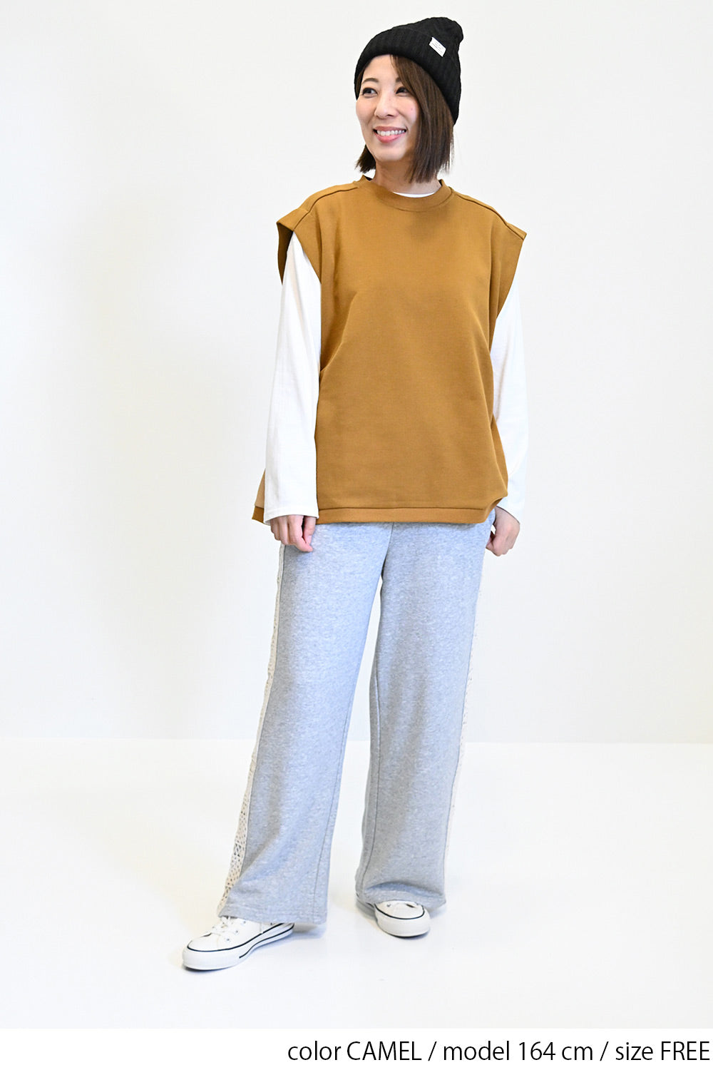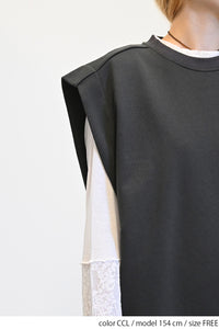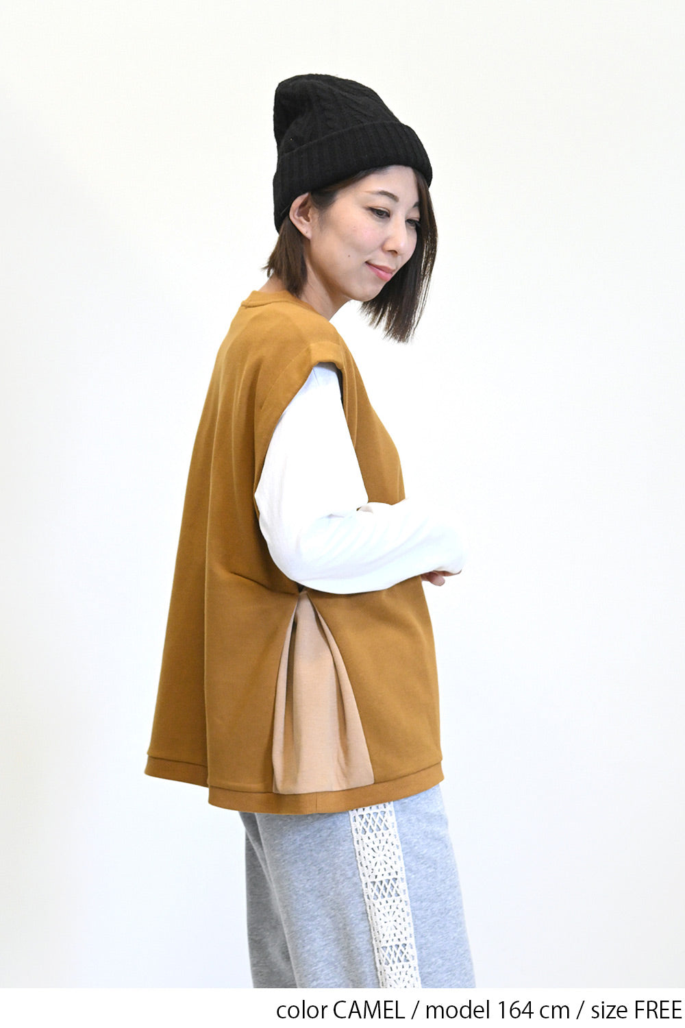 カジュアルなスウェット生地をベースに、サイドをリブで切り替えたこだわりのデザイン。
