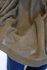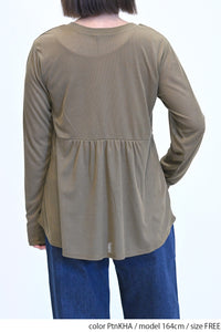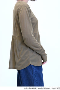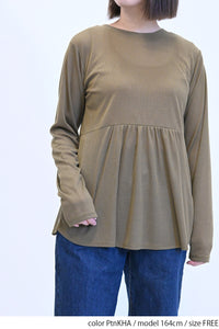 ロンTはやや透け感のある薄手で柔らかなポリエステル素材。