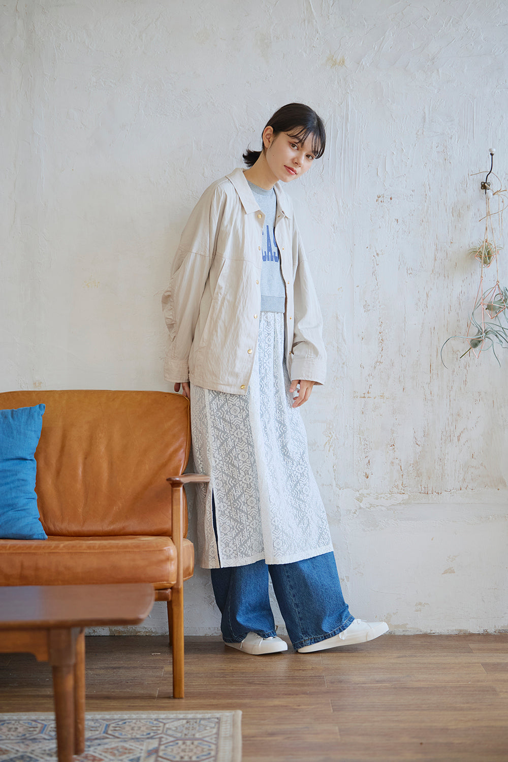 ゆったりとしたワイドなシルエットでリラックスして着こなせます。