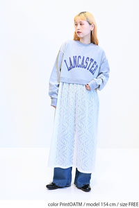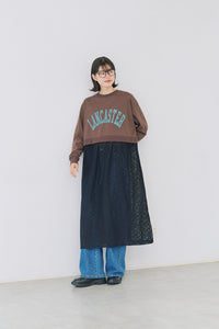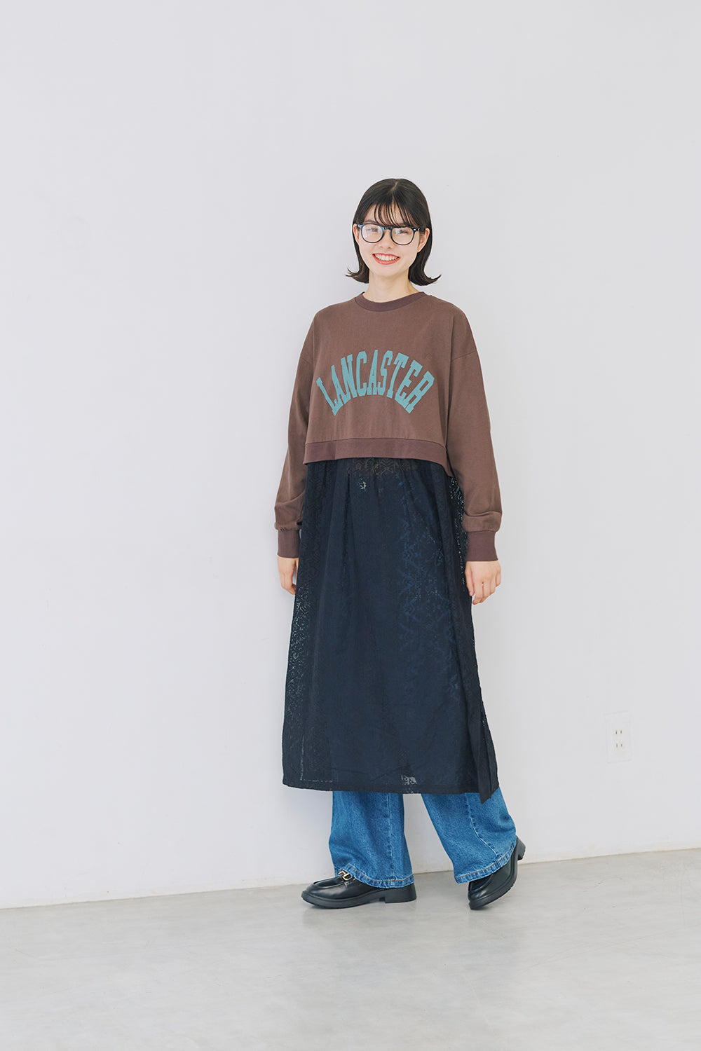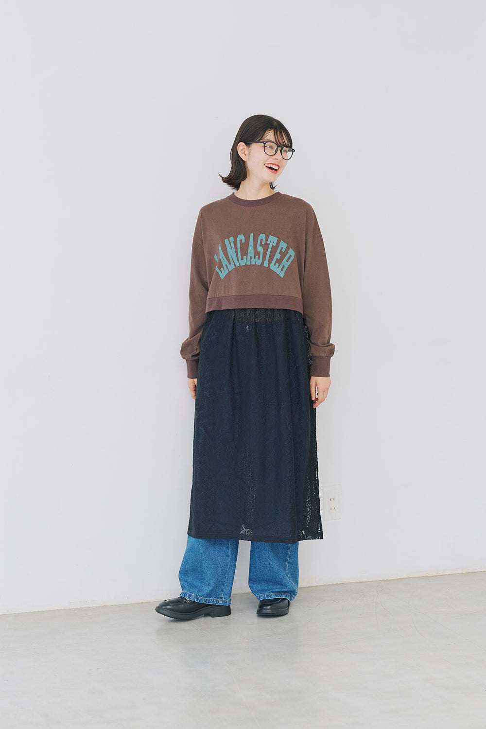上身頃はショート丈のカジュアルなロゴがアクセントの効いたスウェット素材。