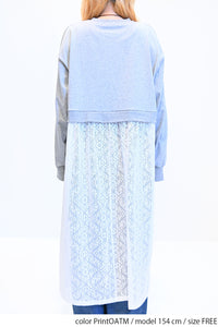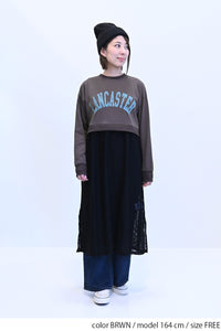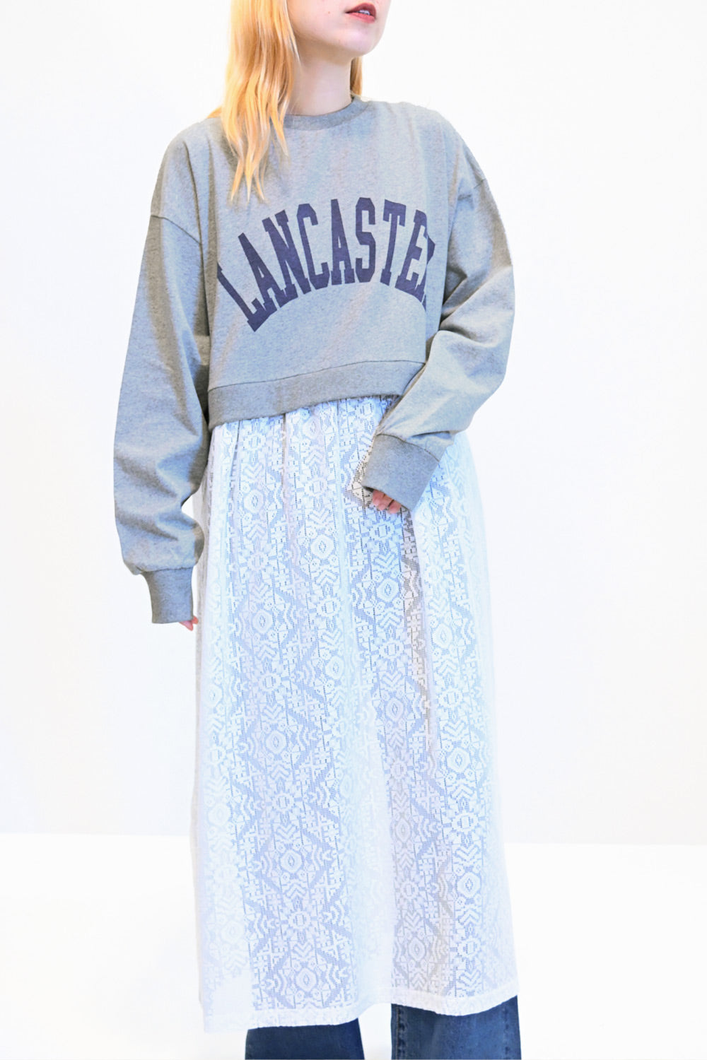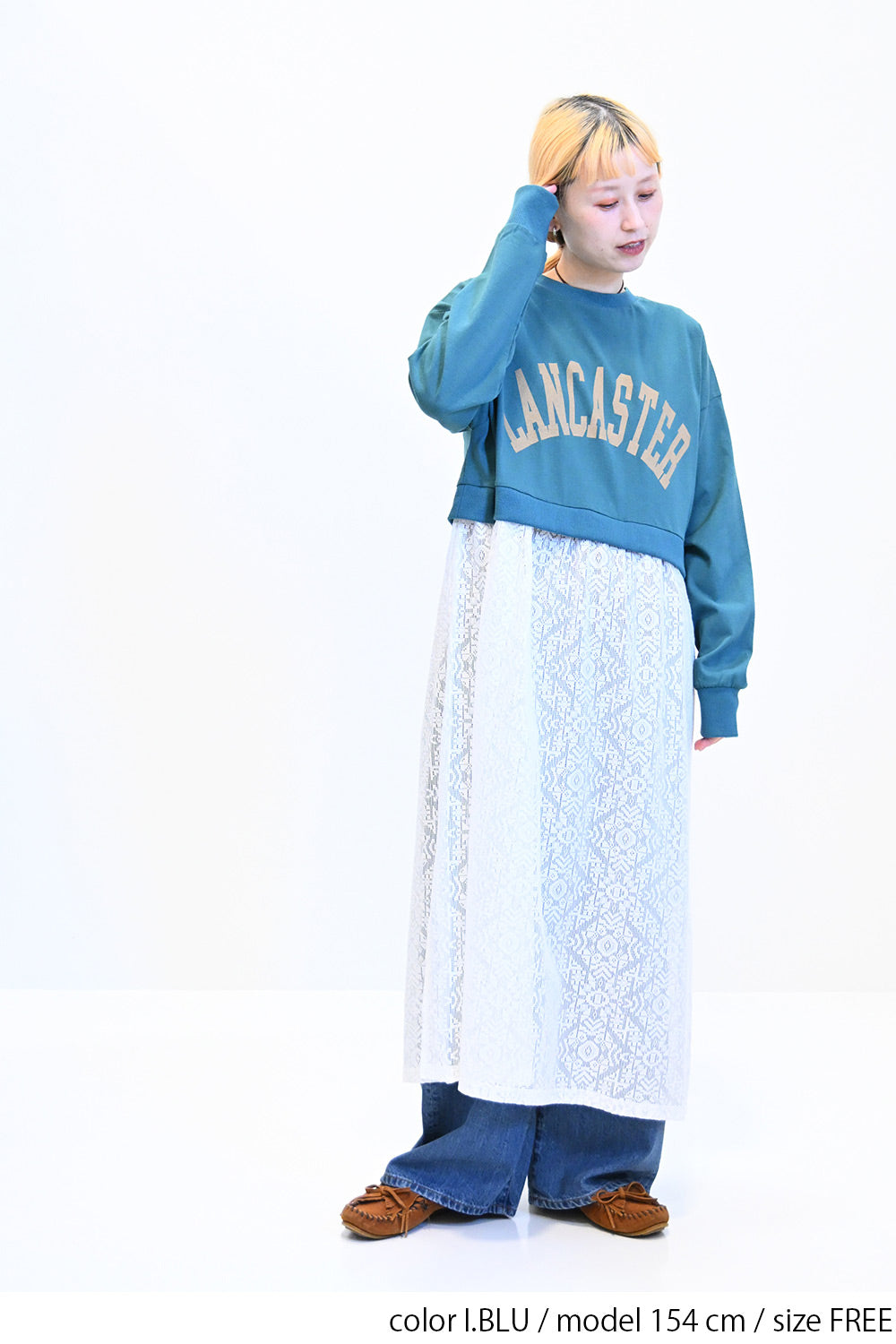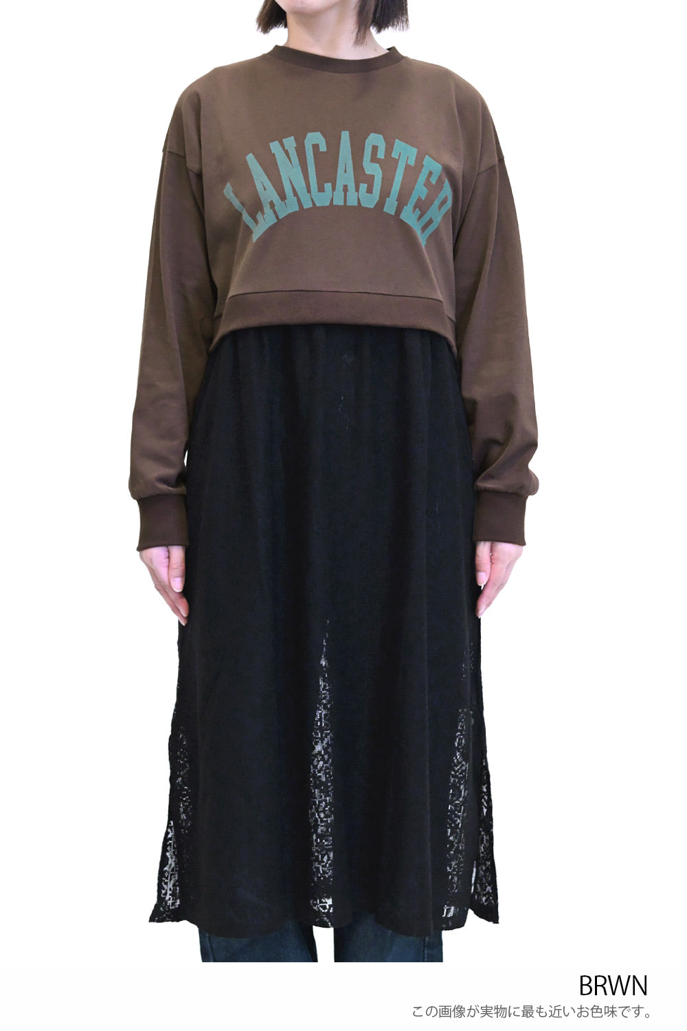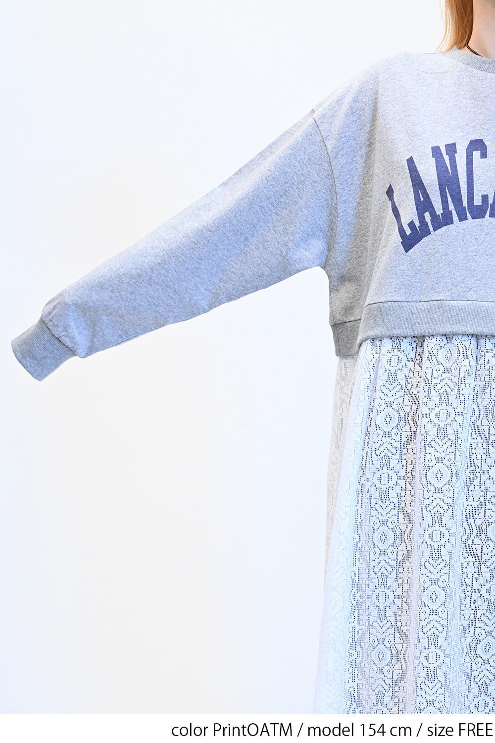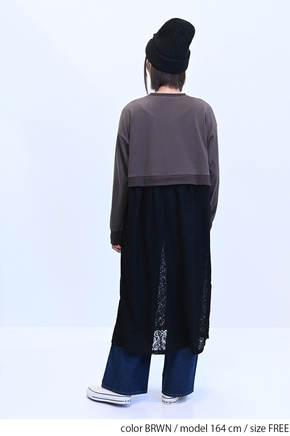 カジュアルなTシャツとフェミニンなレースが一つになった、ドッキングデザインのワンピースです。
