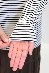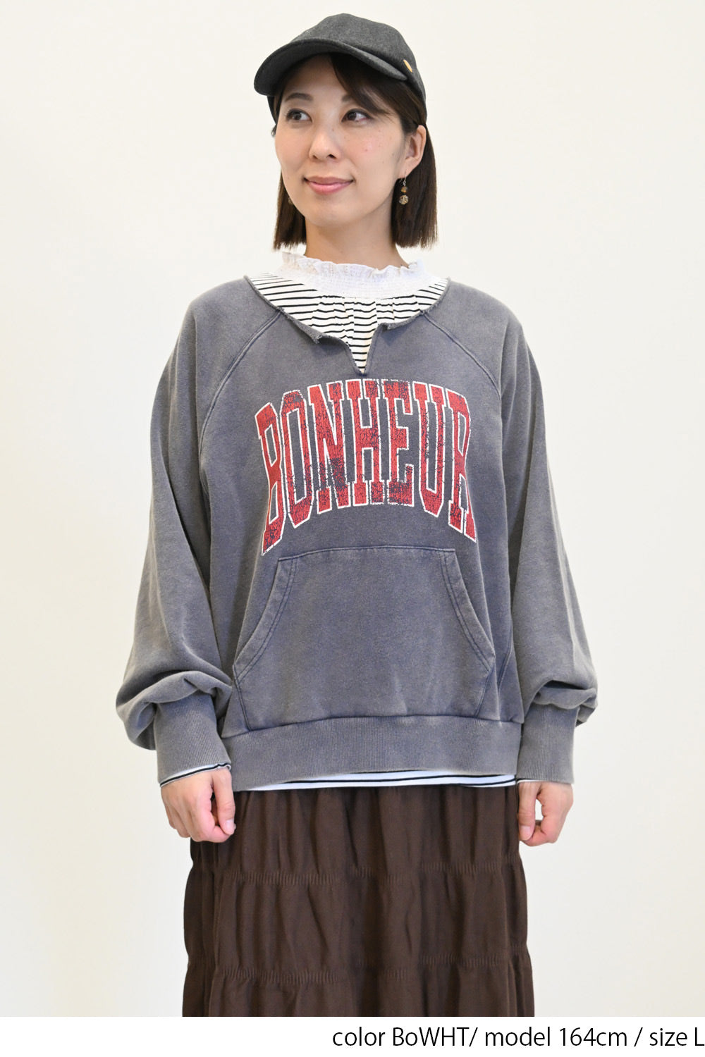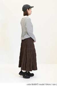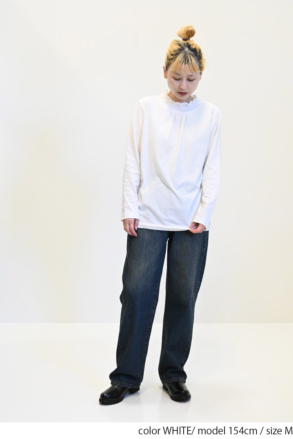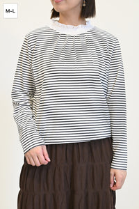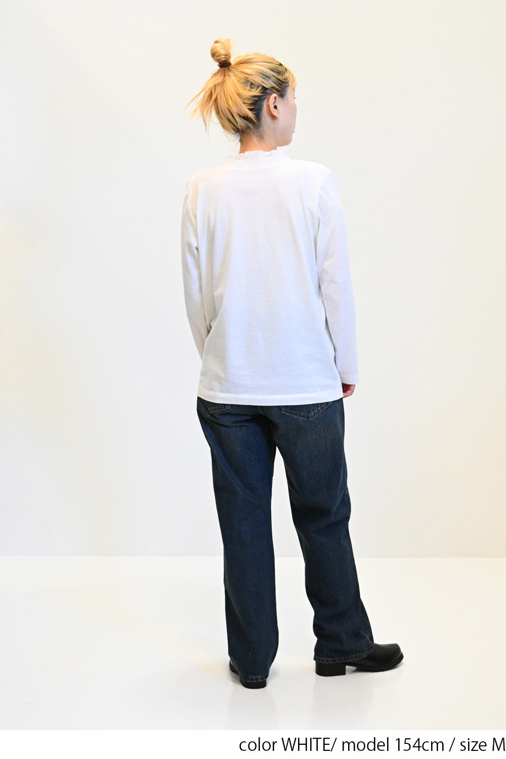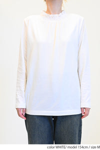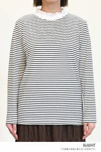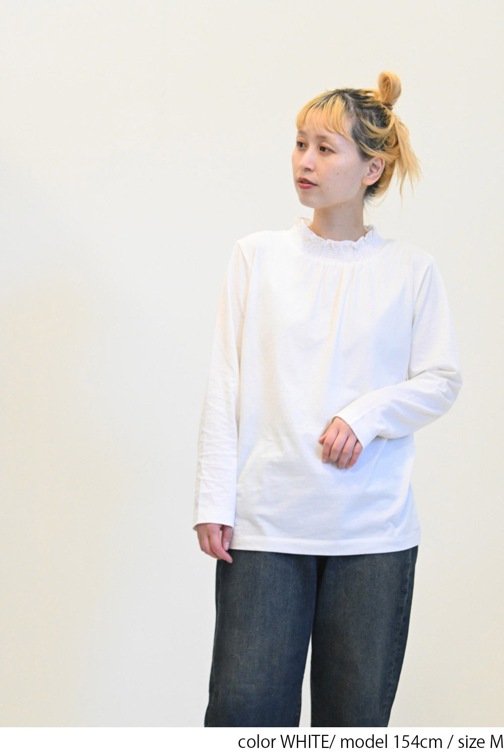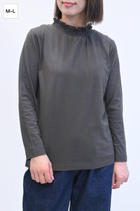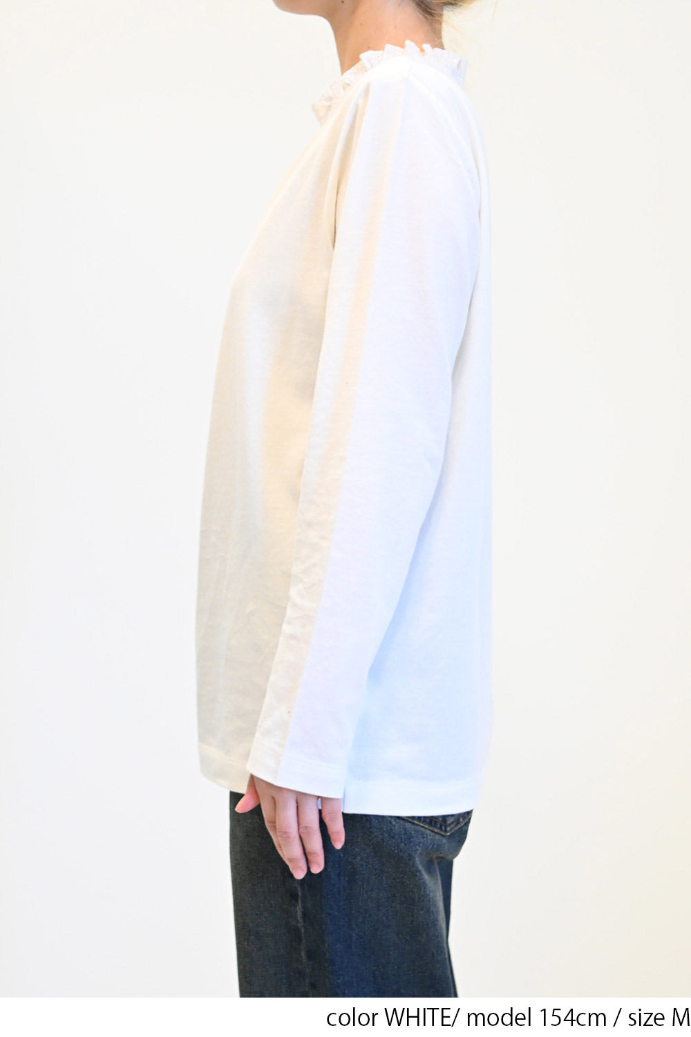 シンプルながらも顔まわりを華やかに見せてくれる、大人可愛いデザインのロンTです。