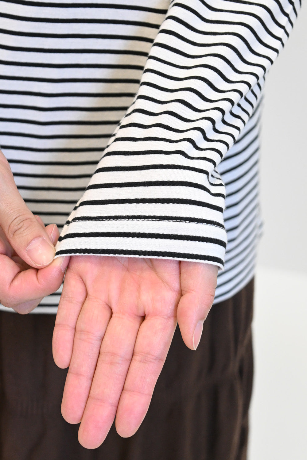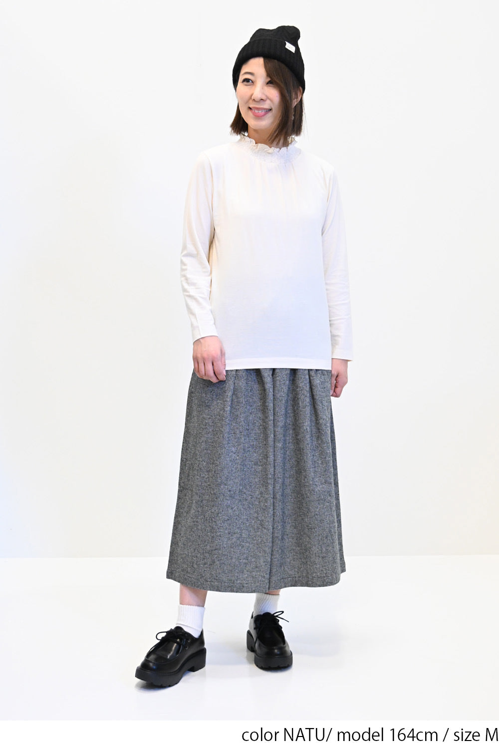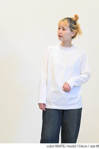 インナーとして重ね着するのはもちろん、一枚でさらりと着ても様になり、ロングシーズン活躍します。