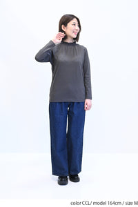 タートルネックほど詰まりすぎないデザインで締め付け感がなく、快適な着心地を叶えます。