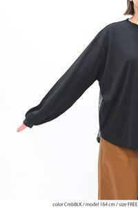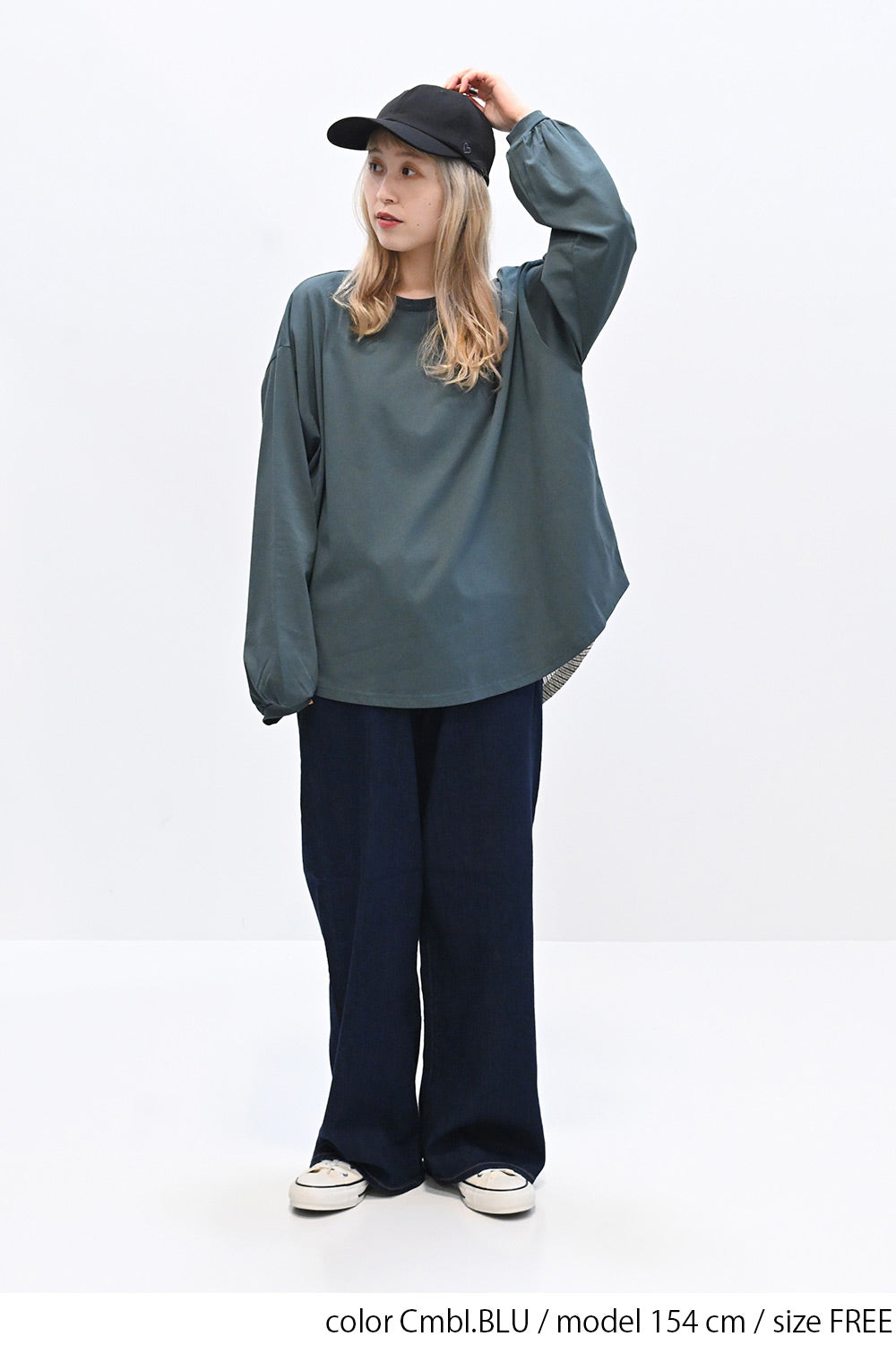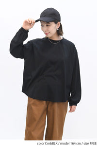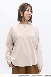 ロンT感覚で着られる綿100%の天竺生地を使用し、さらっと心地よい肌ざわりです。