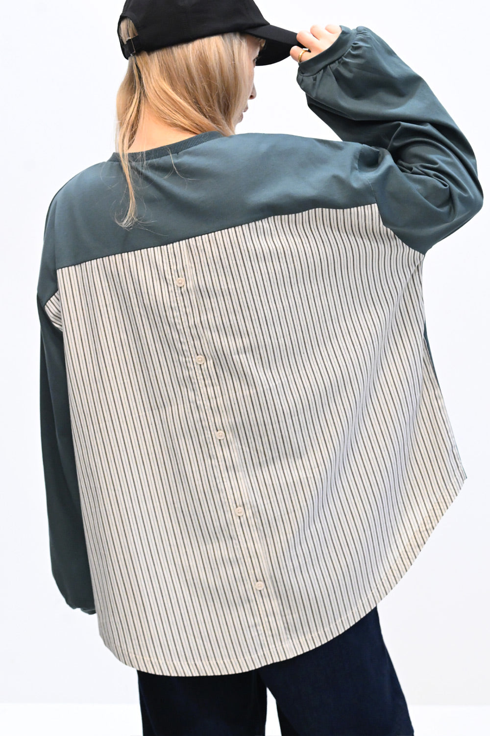 シンプルな中にさりげないデザイン性が光る、後ろ切り替えがポイントのプルオーバー。