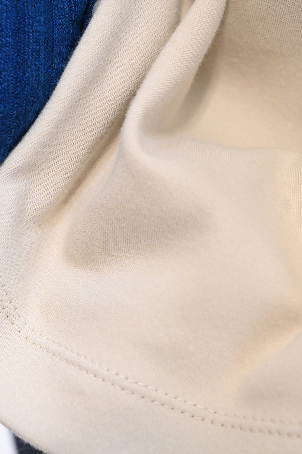 身頃部分は程よい厚みと柔らかな肌触りが魅力のスムース天竺素材を使用。