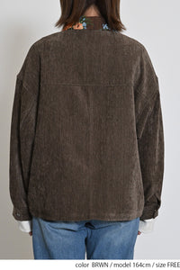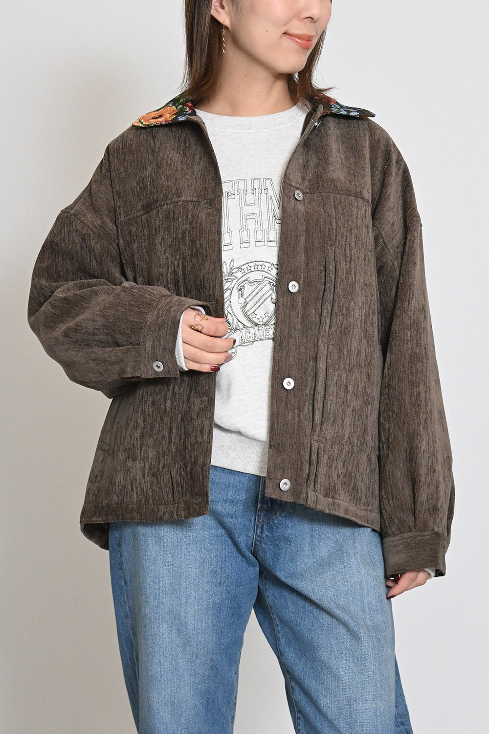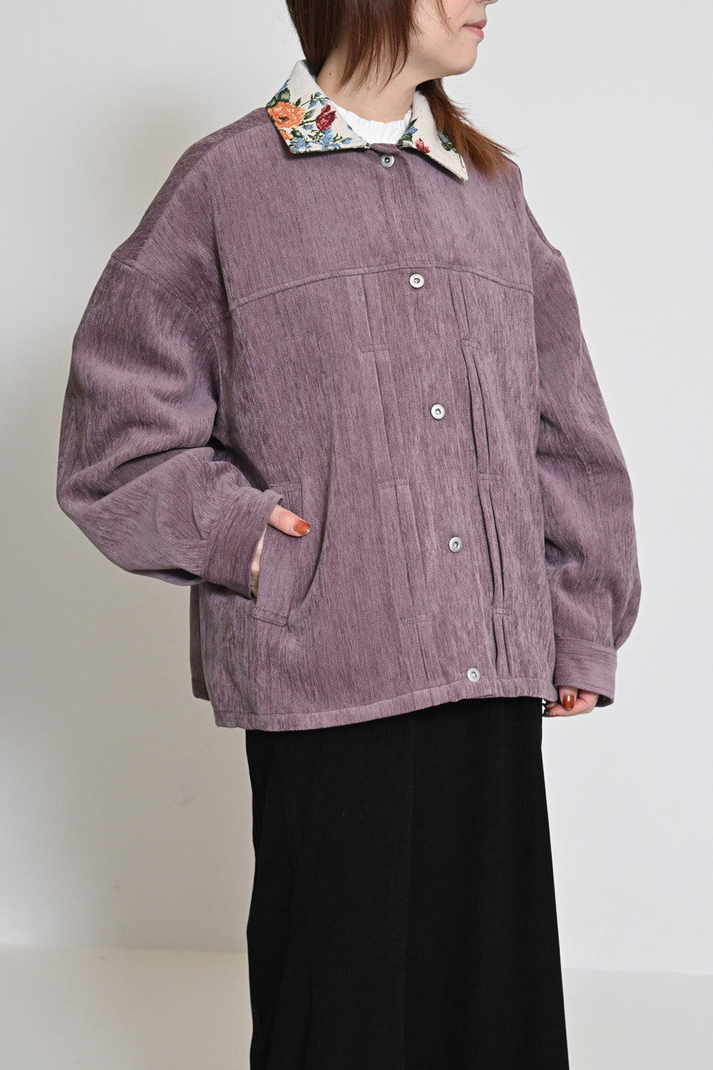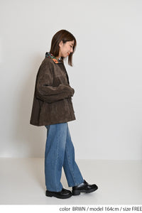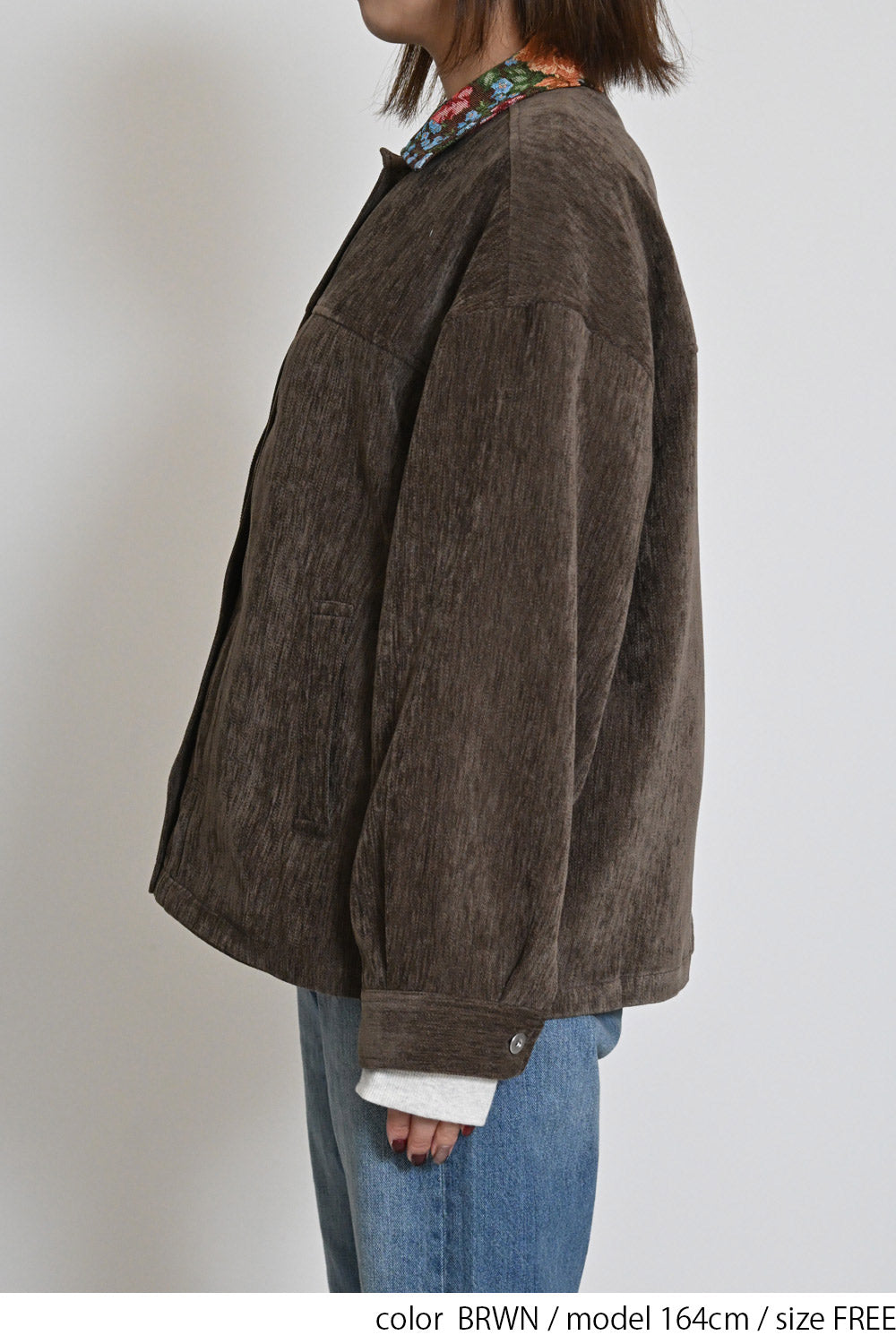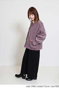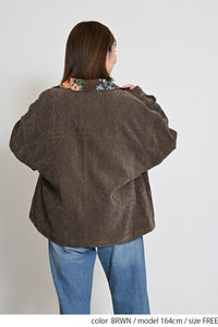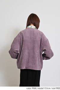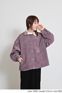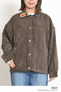 レトロ柄の衿が印象的なジャケット。