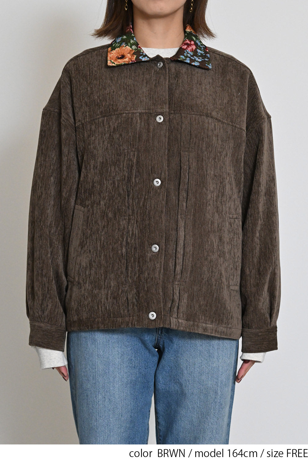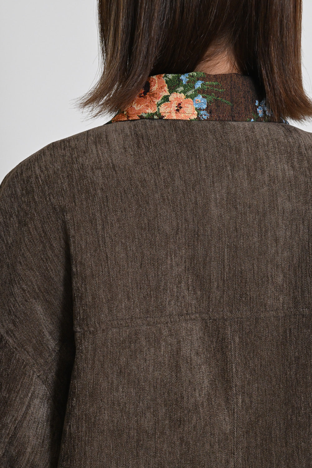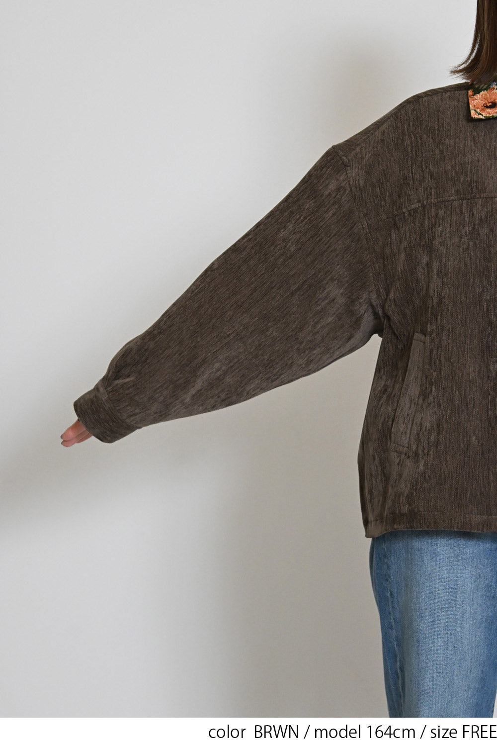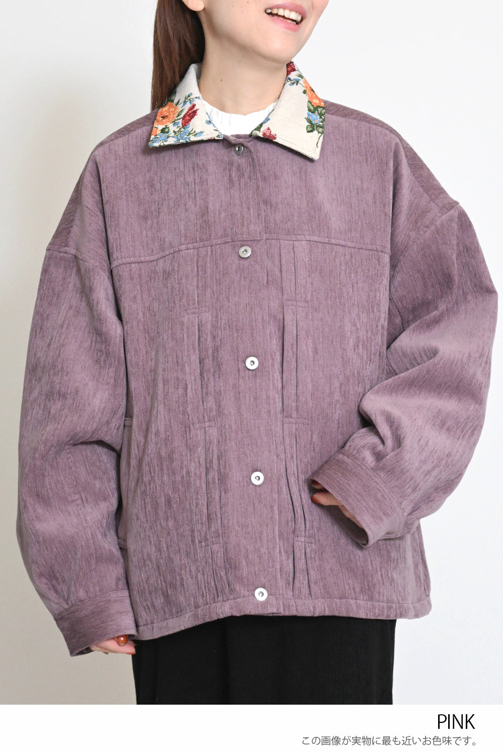 レトロ柄の衿が印象的なジャケット。