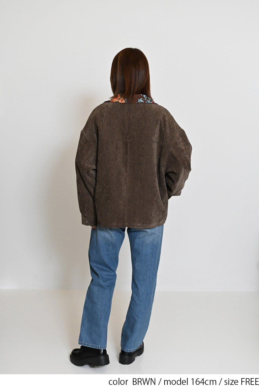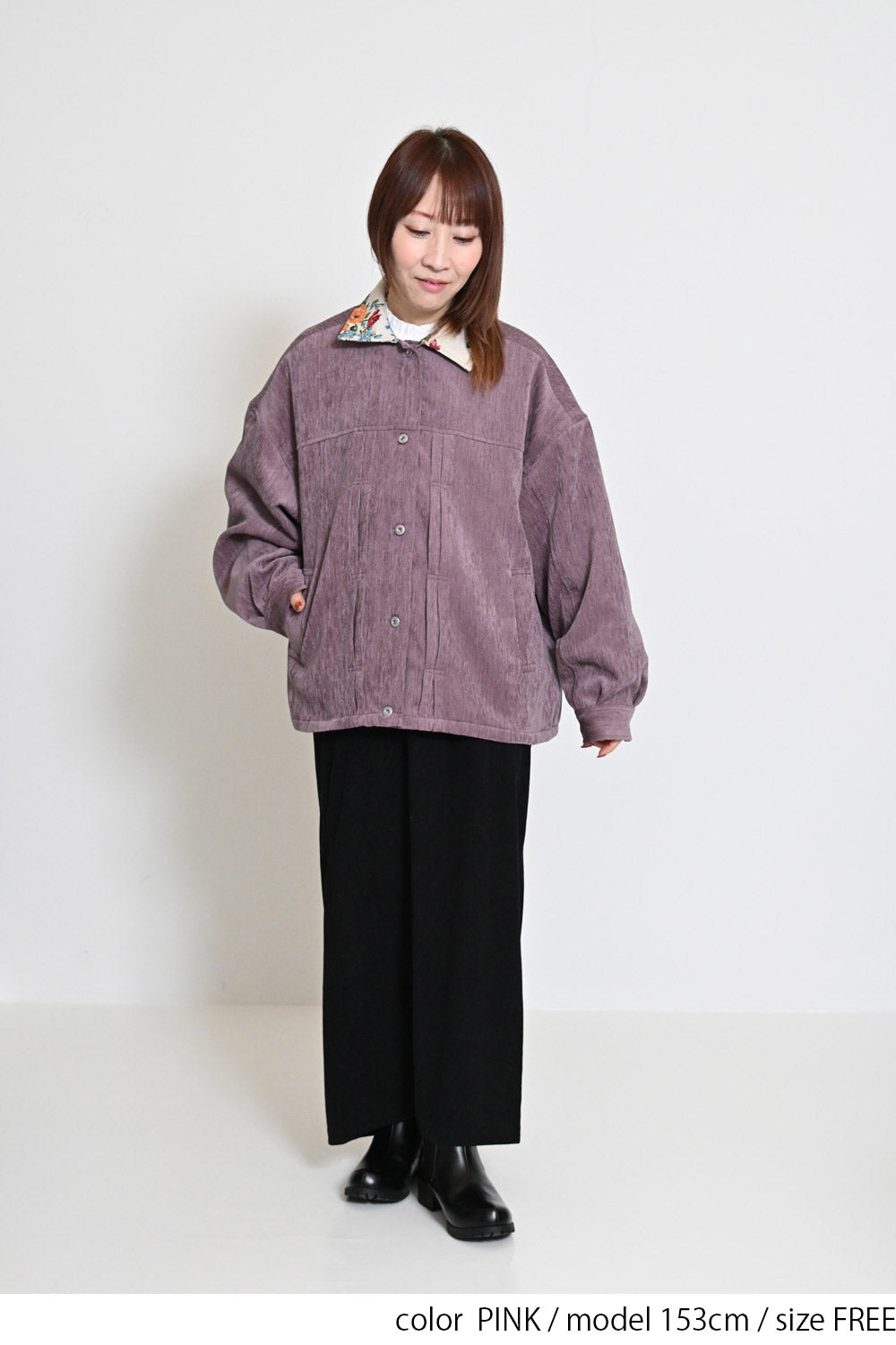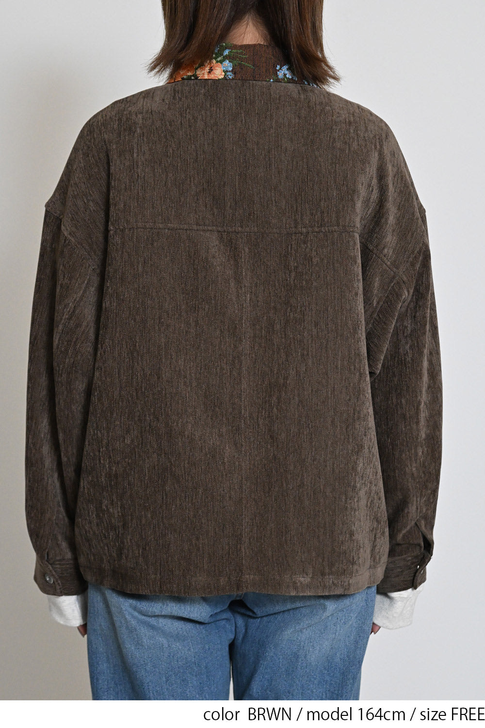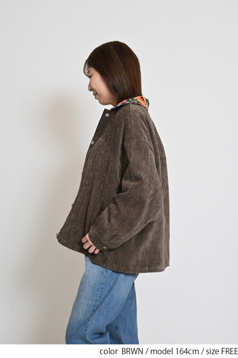レトロ柄の衿が印象的なジャケット。