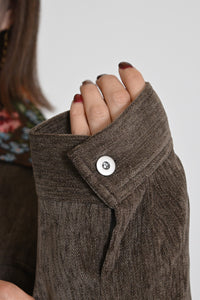 ゆったりとしたシルエットで、ニットやスウェットなどの厚手インナーとも重ねやすく、季節の変わり目から冬までロングシーズン活躍します。
