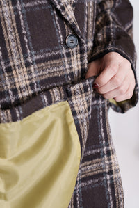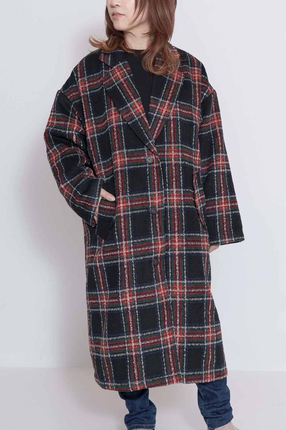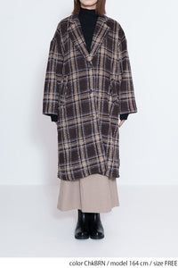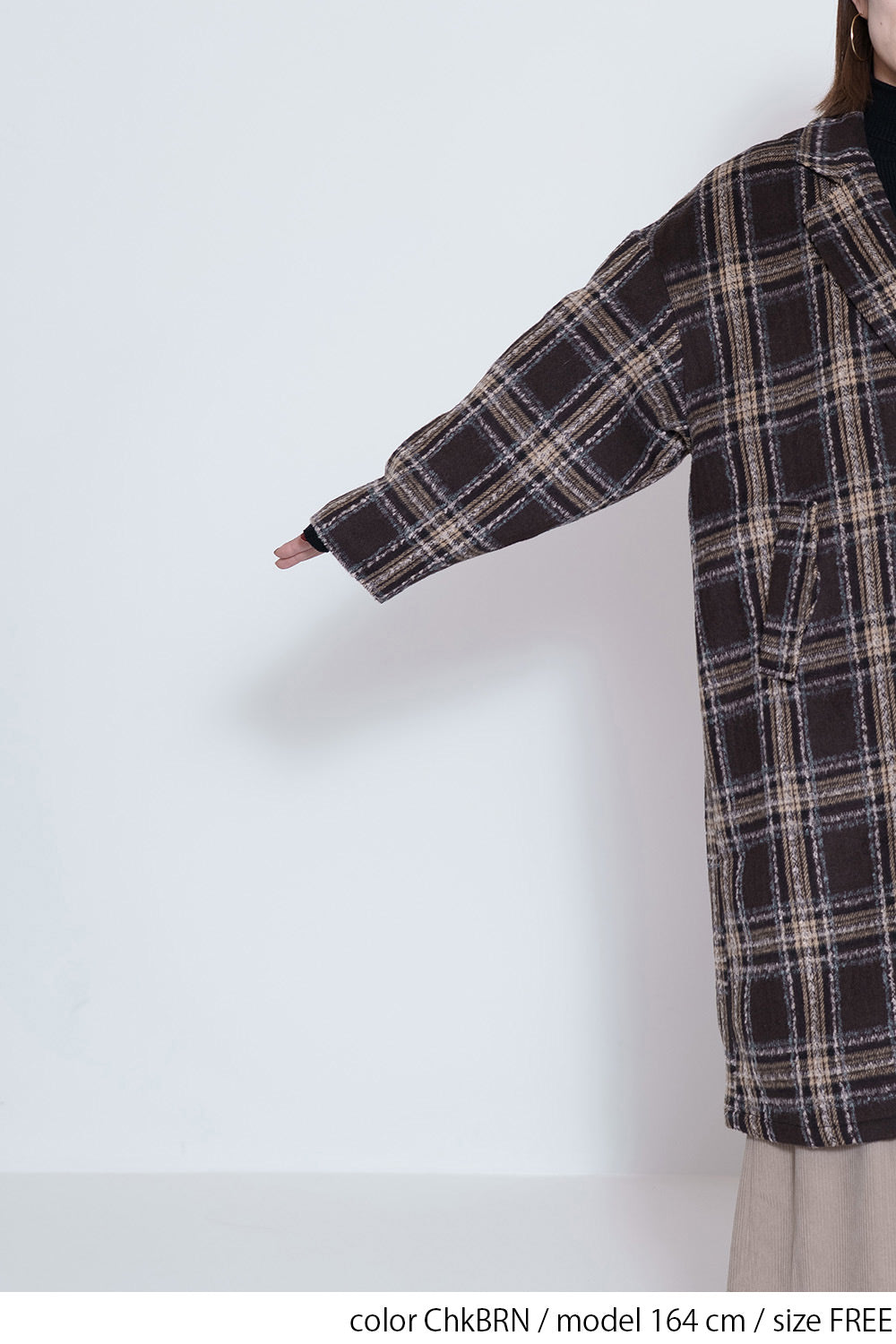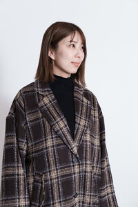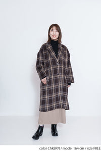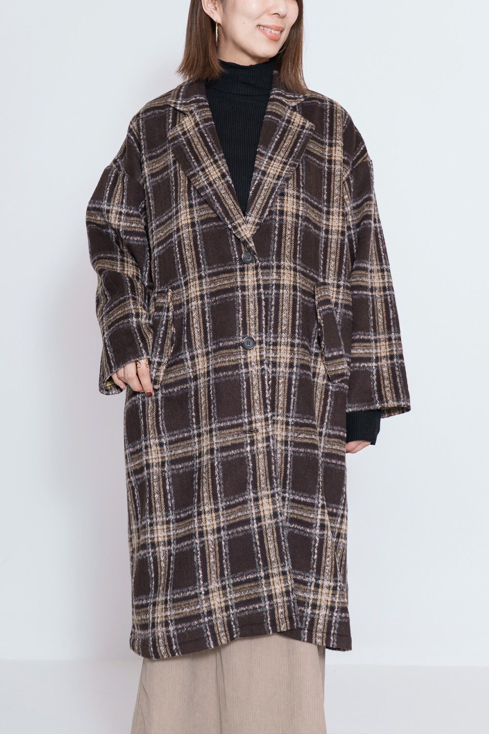 秋冬定番のチェック柄が目を引く、トラッド感漂うチェスターコート。