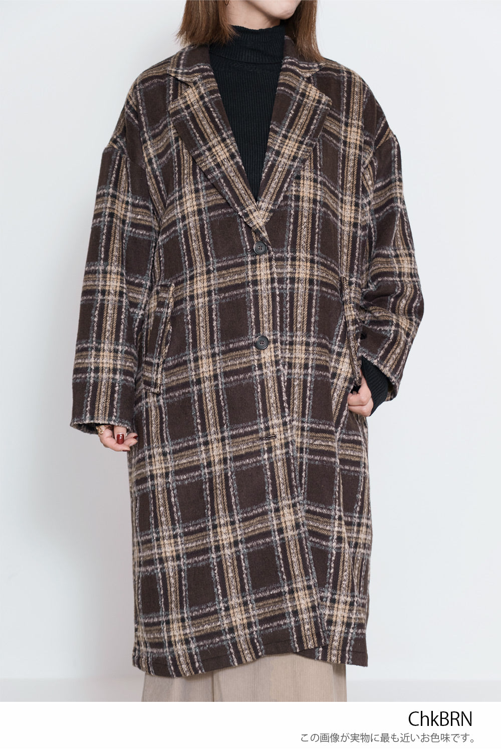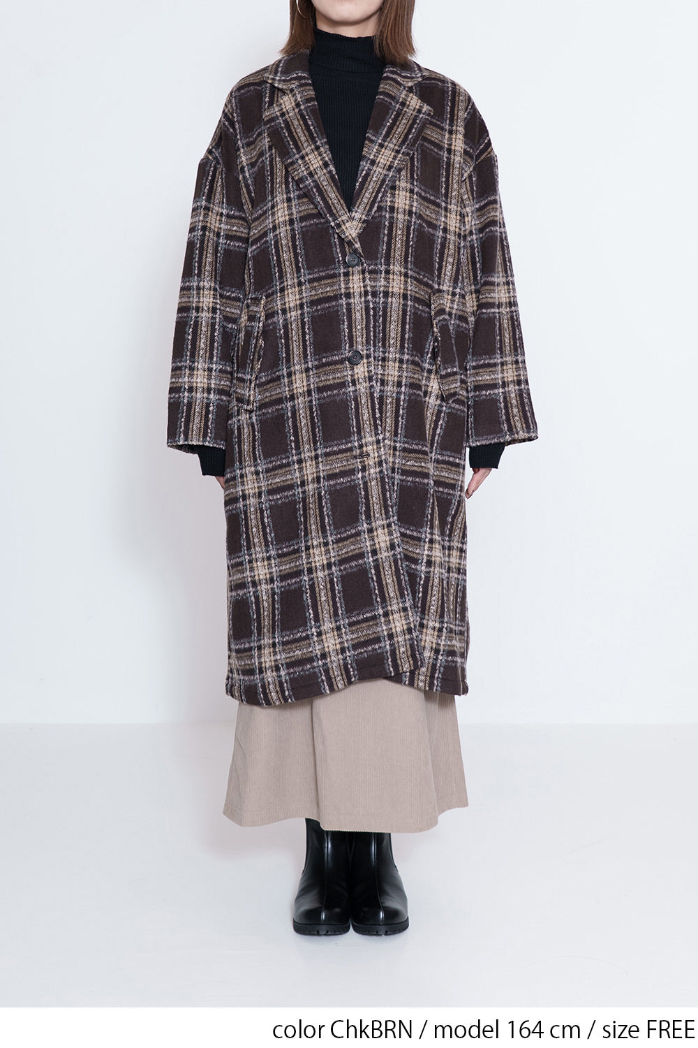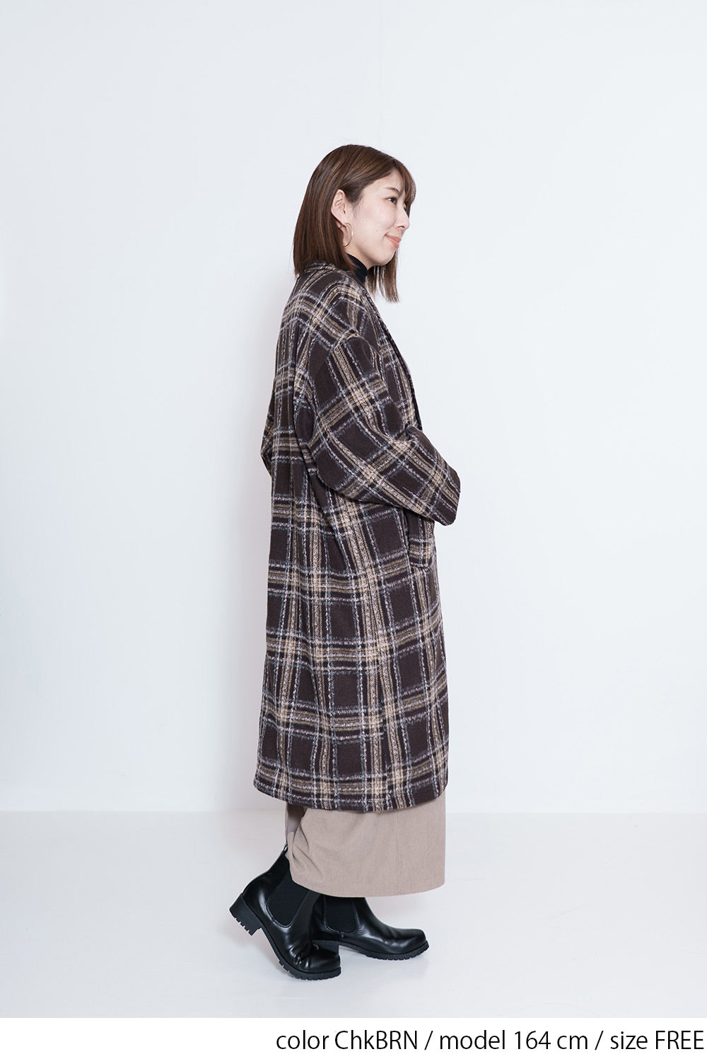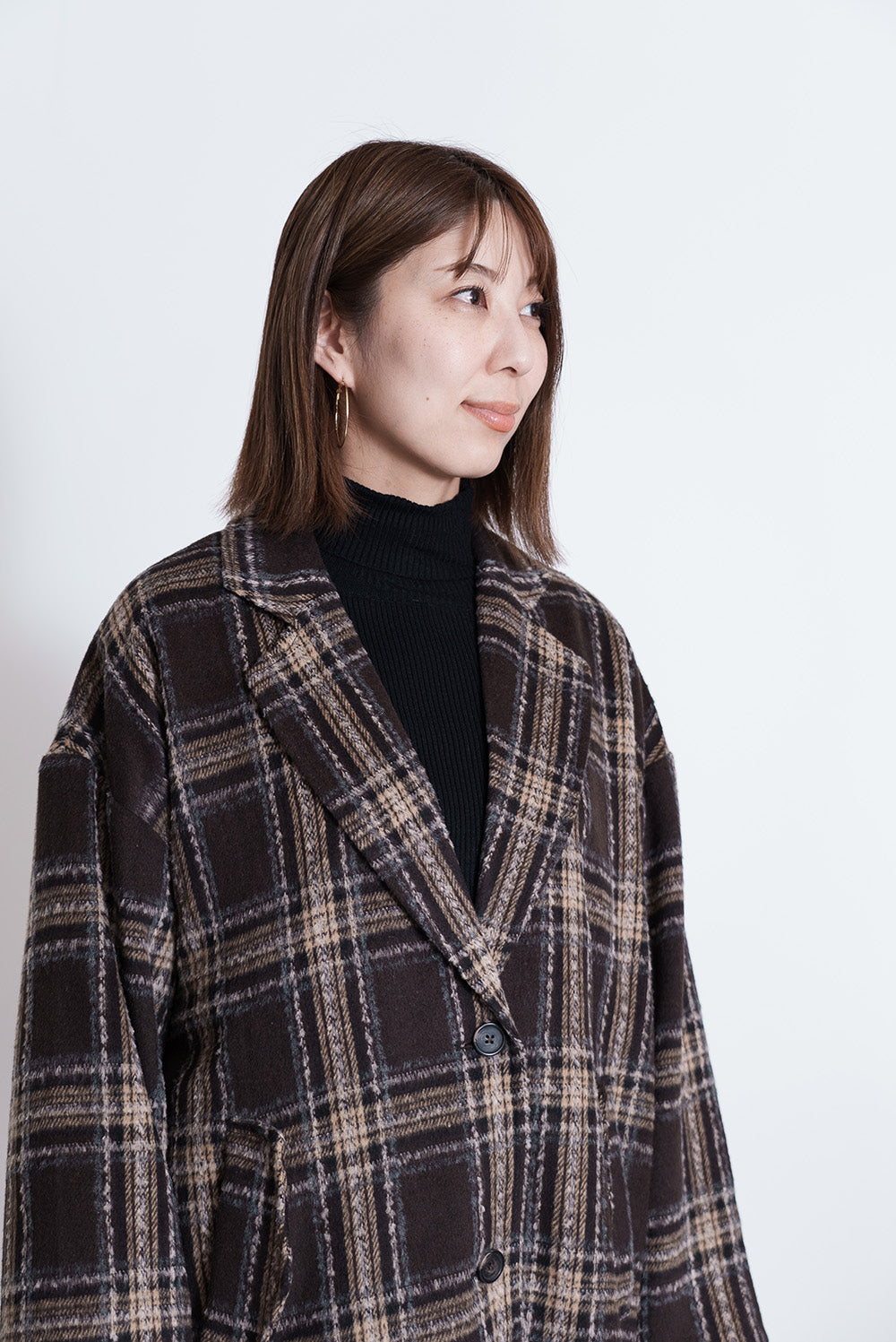 ロング丈で幅広いインナーやボトムスに合わせやすく、チェック柄が秋冬ムードを高めてくれます。