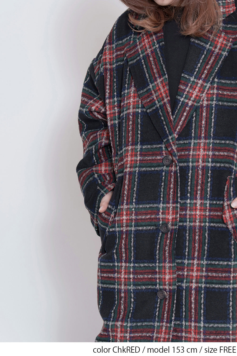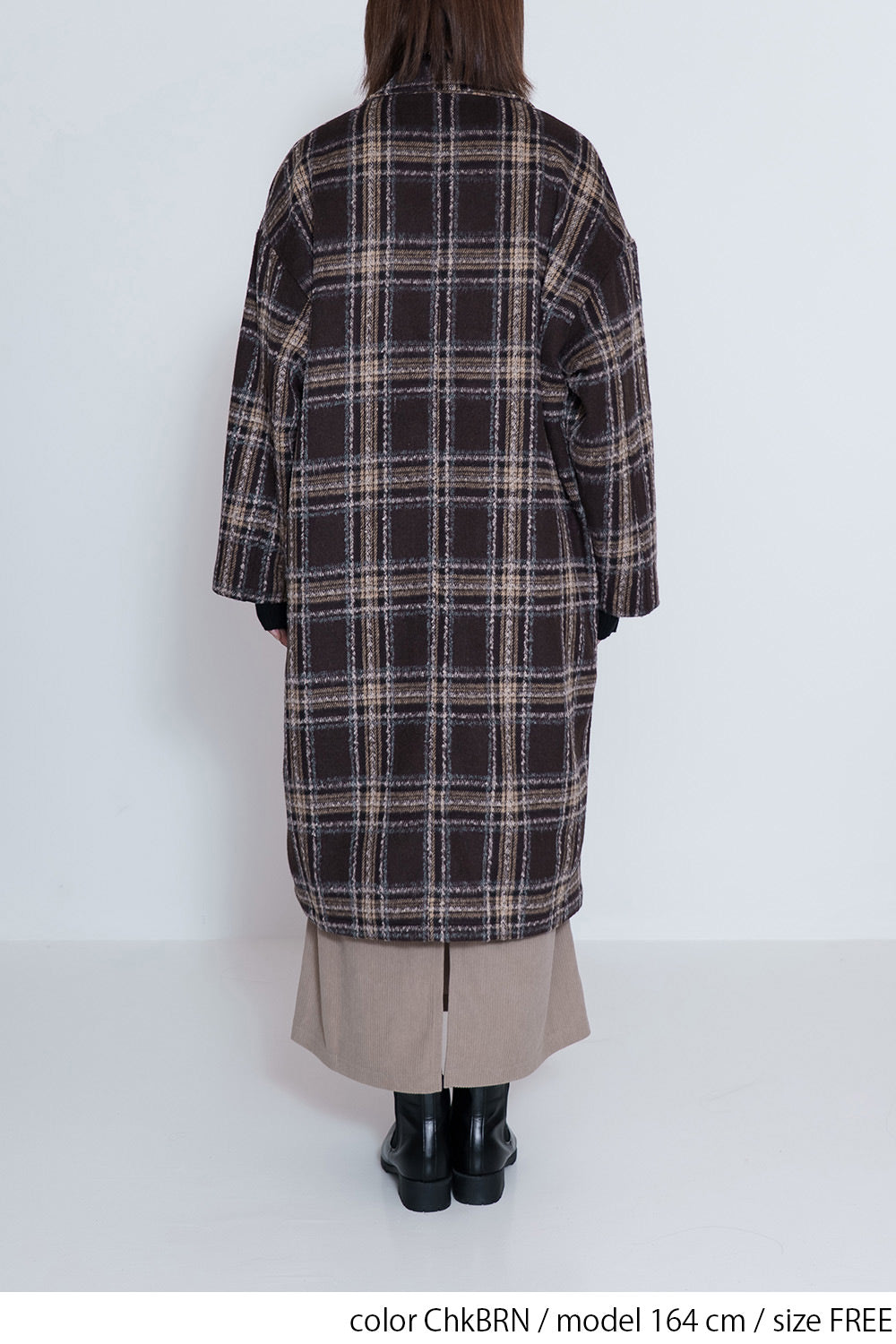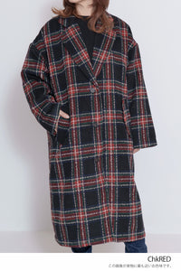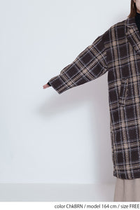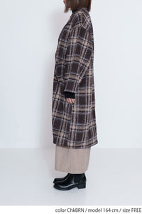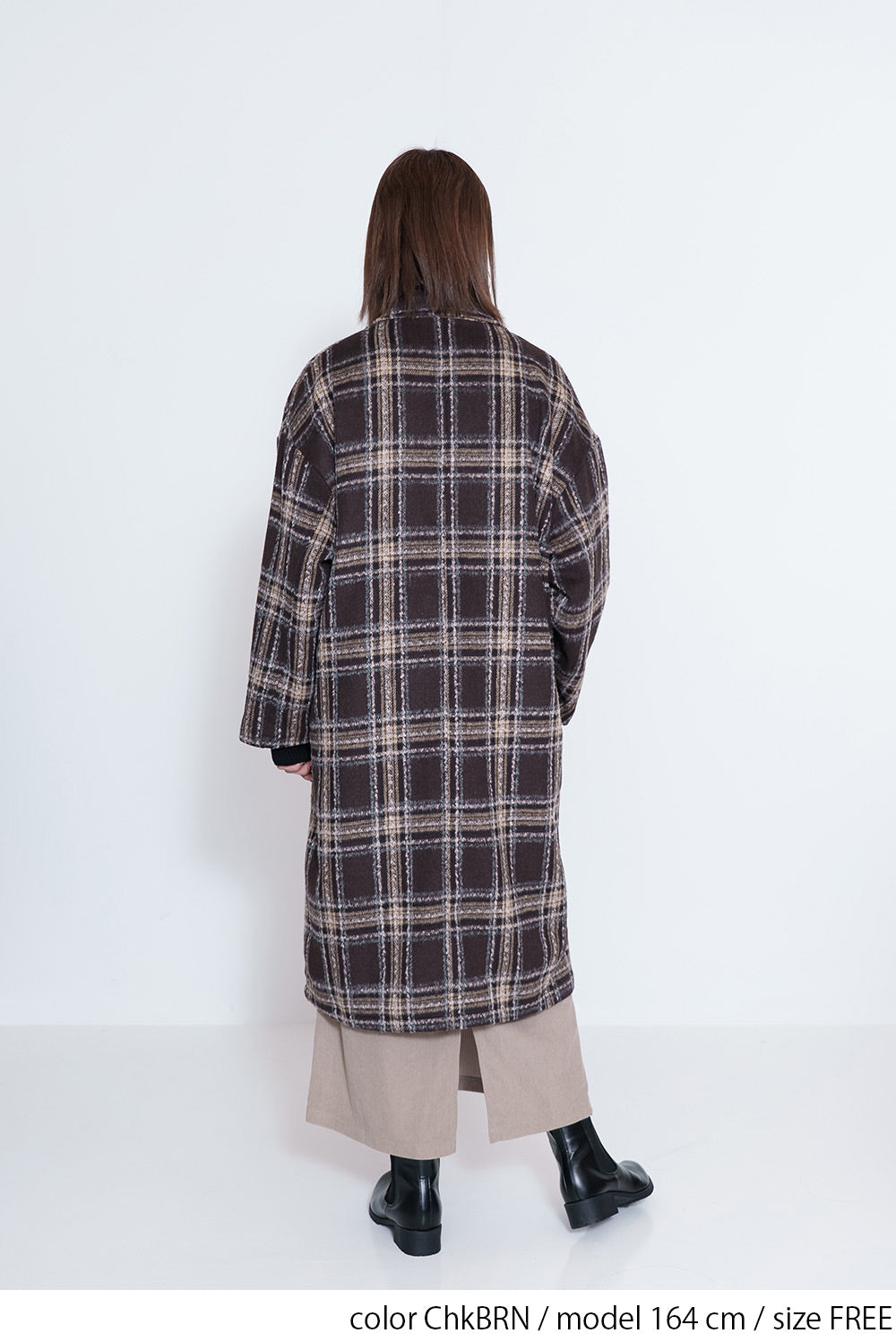 ロング丈で幅広いインナーやボトムスに合わせやすく、チェック柄が秋冬ムードを高めてくれます。