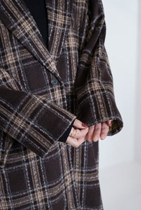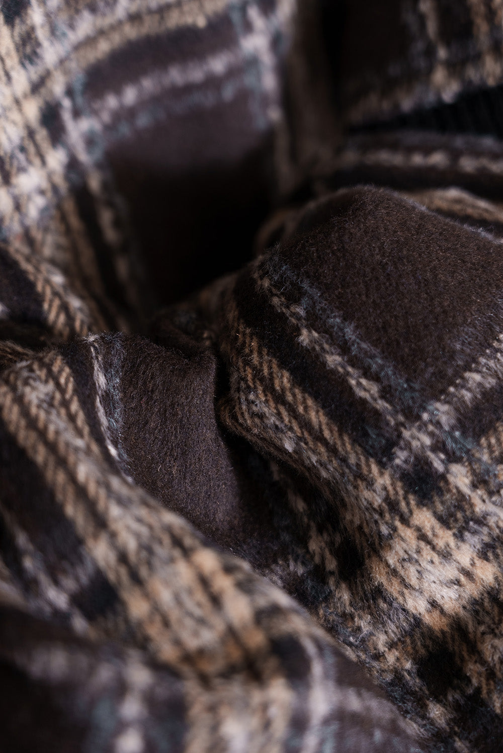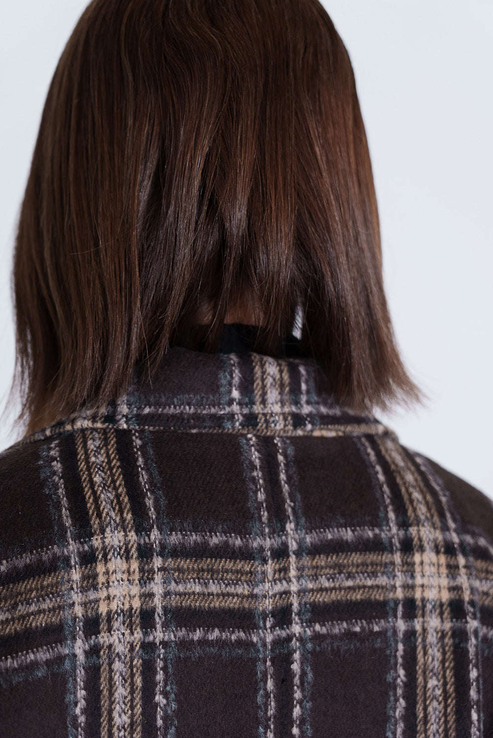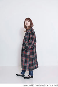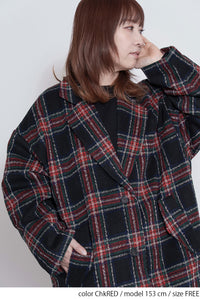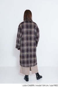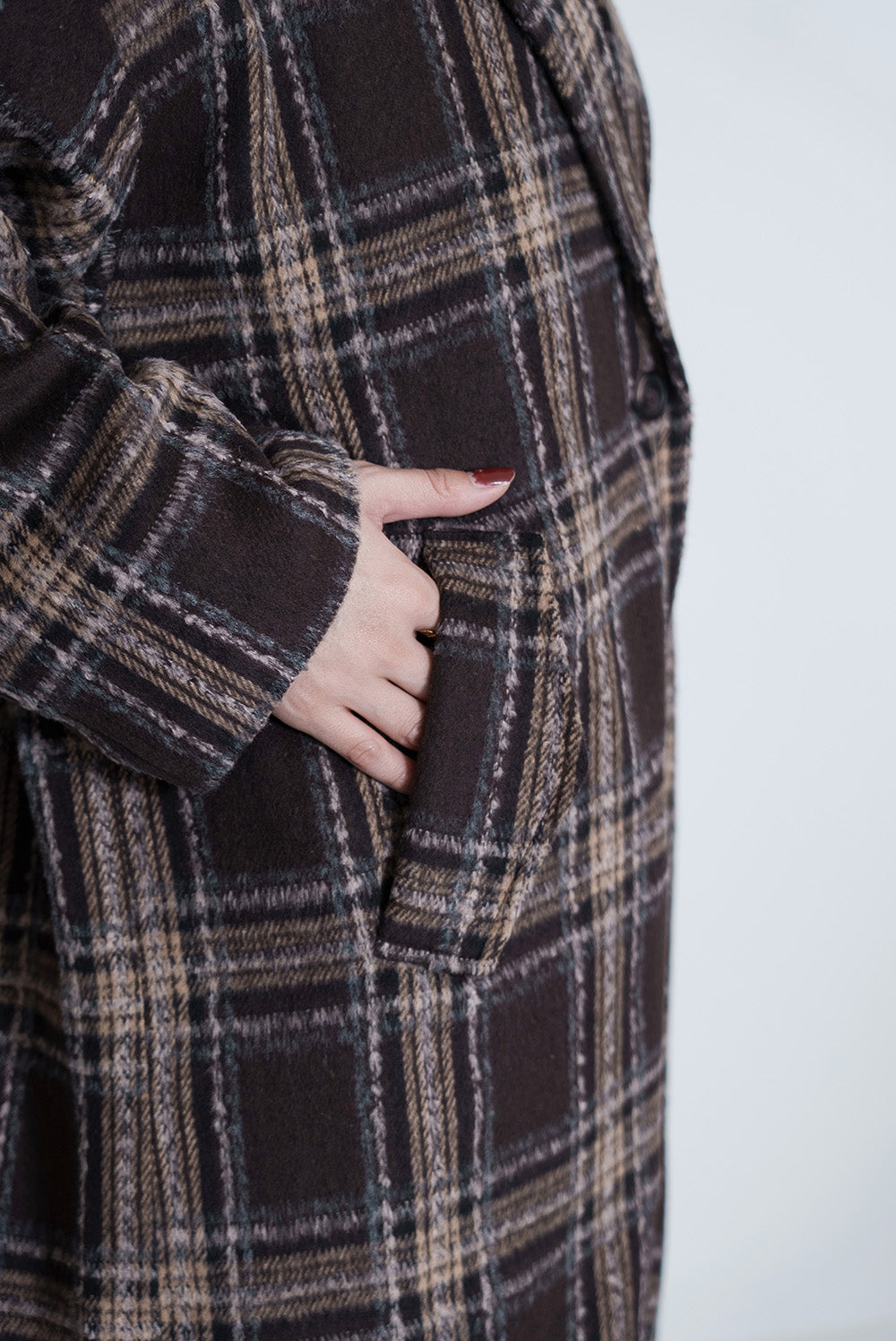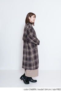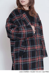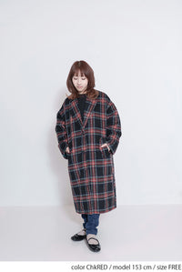 ロング丈で幅広いインナーやボトムスに合わせやすく、チェック柄が秋冬ムードを高めてくれます。