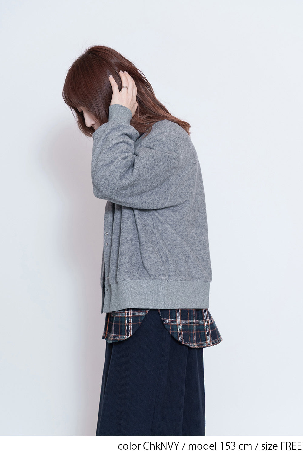 表起毛を施し、あたたかみのある風合いに仕上げた、ポリエステル100%素材。