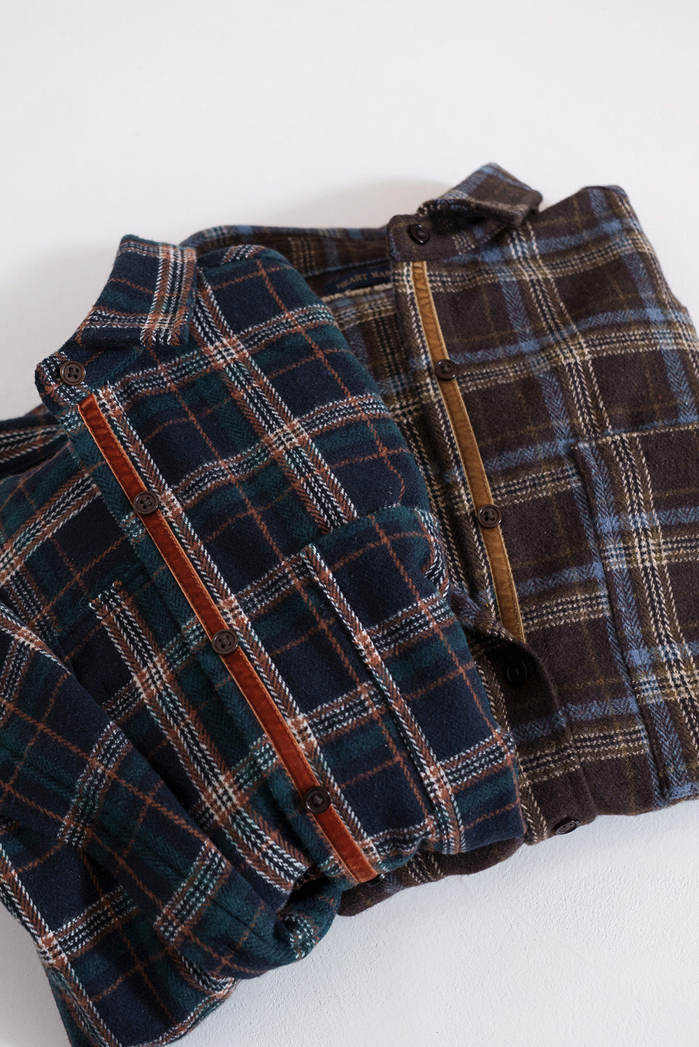 季節感たっぷりな表起毛素材で仕立てた、スタンダードなチェックシャツ。