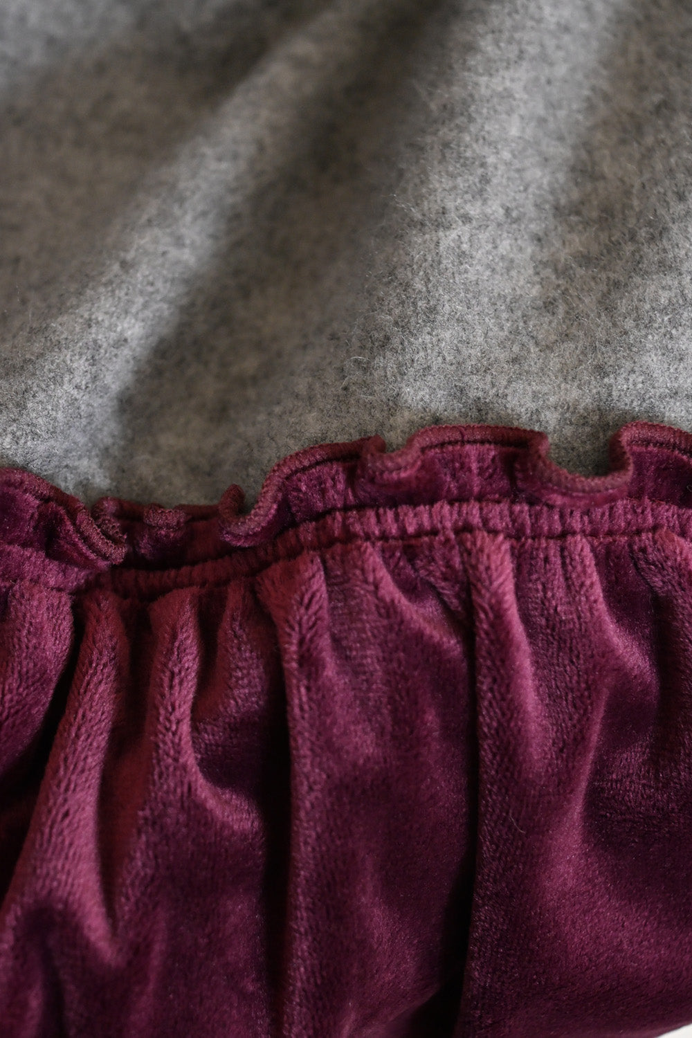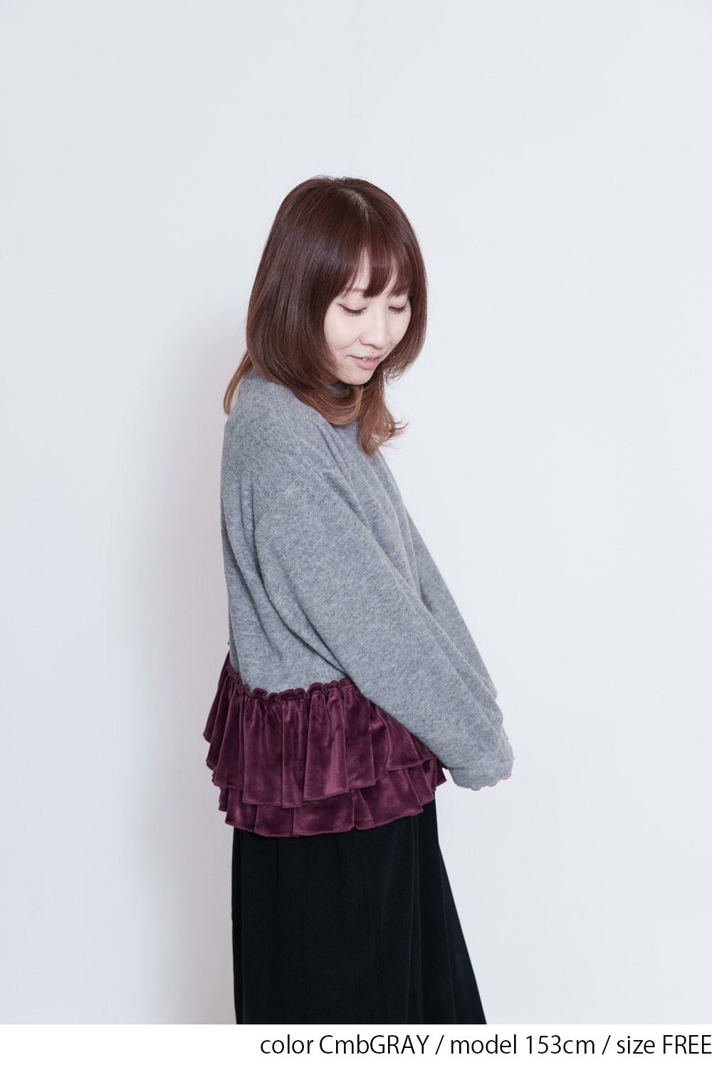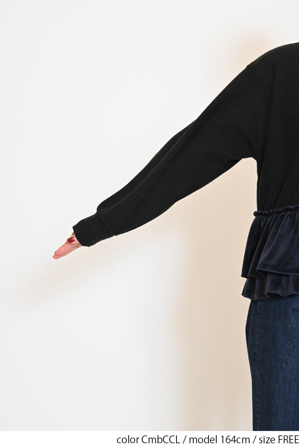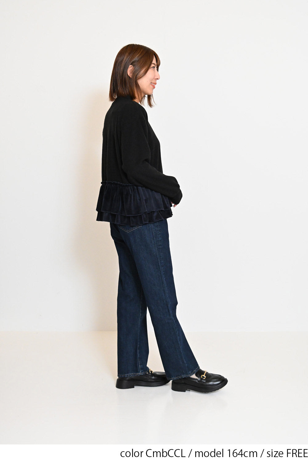 裾のフリル部分は光沢感のあるベロア素材を使用し、コーデに上品なアクセントをプラス。