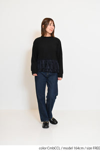 レイヤードいらずでおしゃれに決まる、裾フリルデザインのプルオーバー。