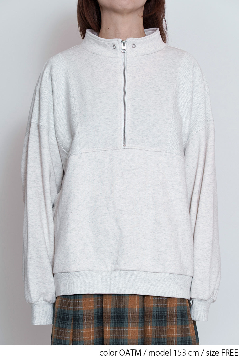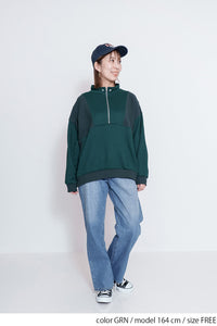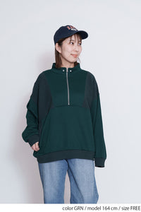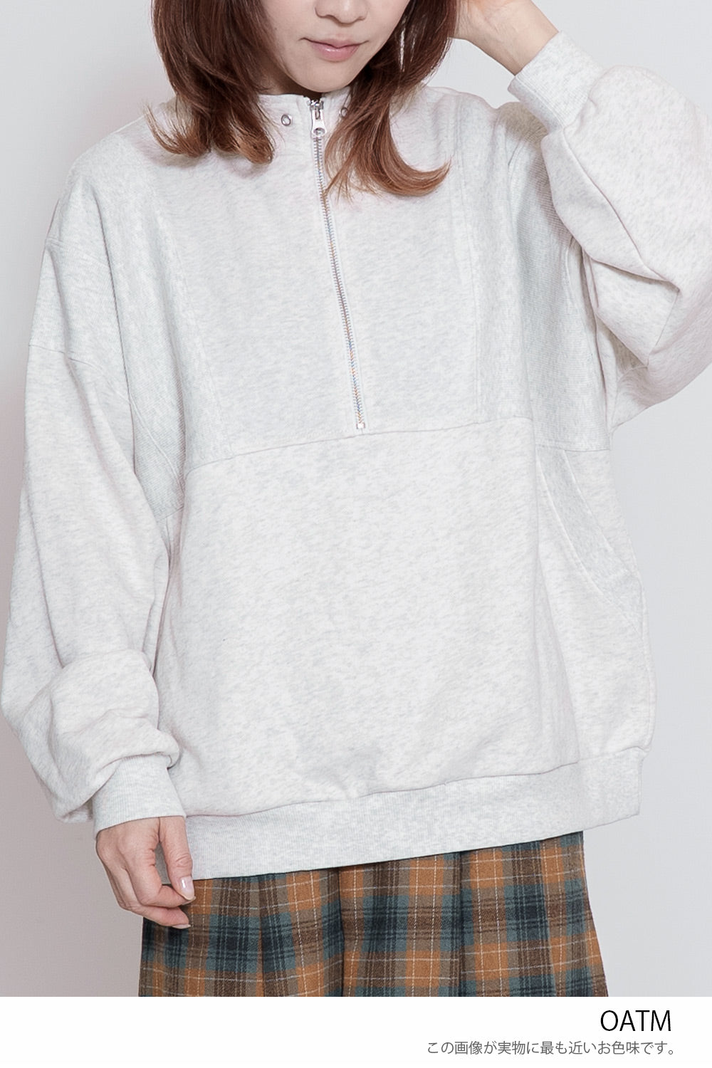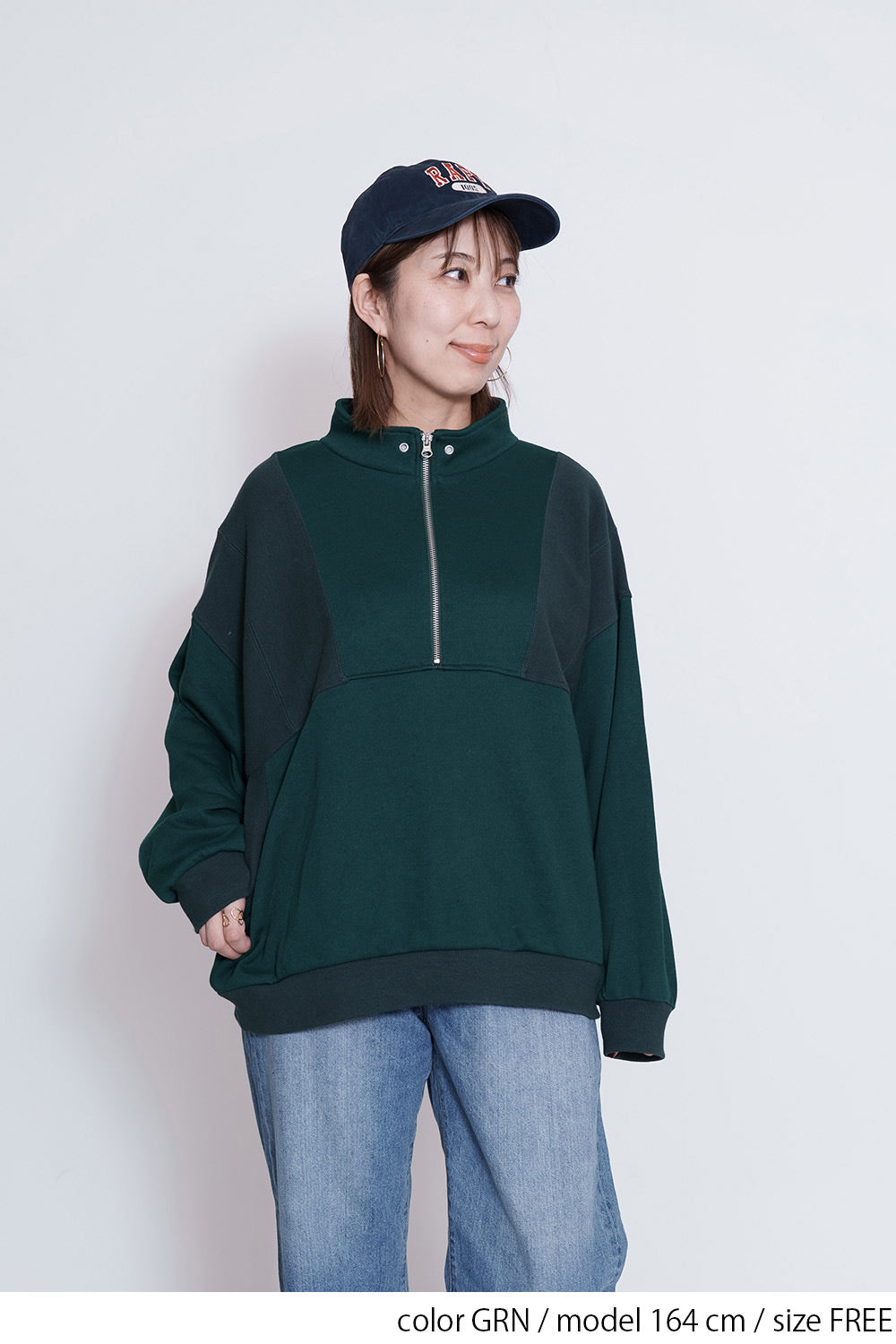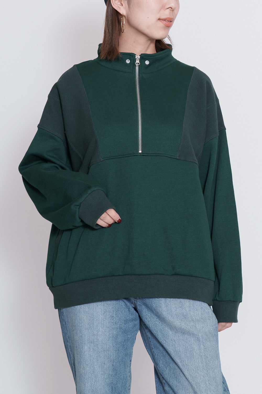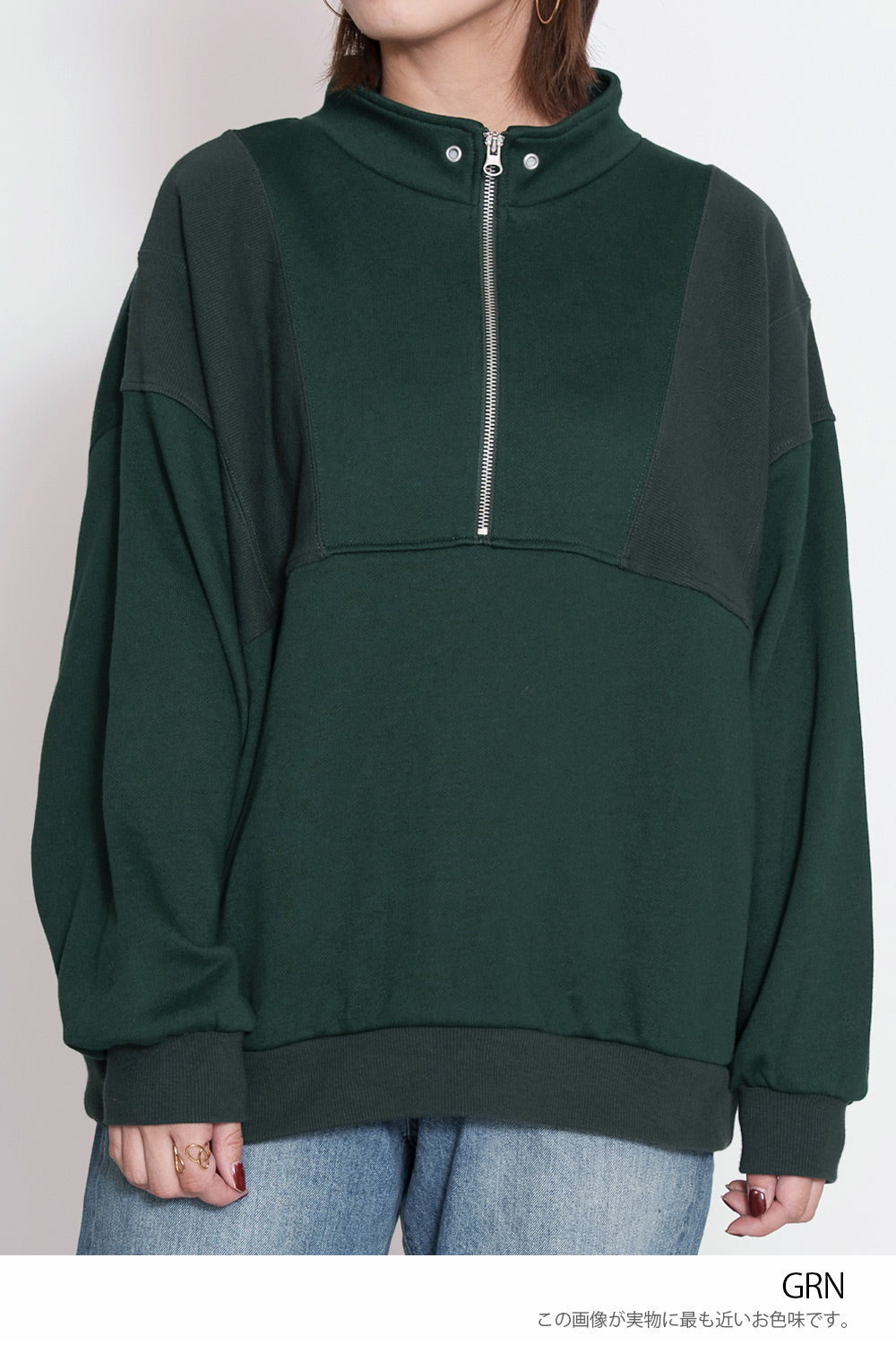 リメイク風の切り替えデザインが個性を演出するハーフジッププルオーバー。