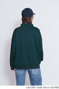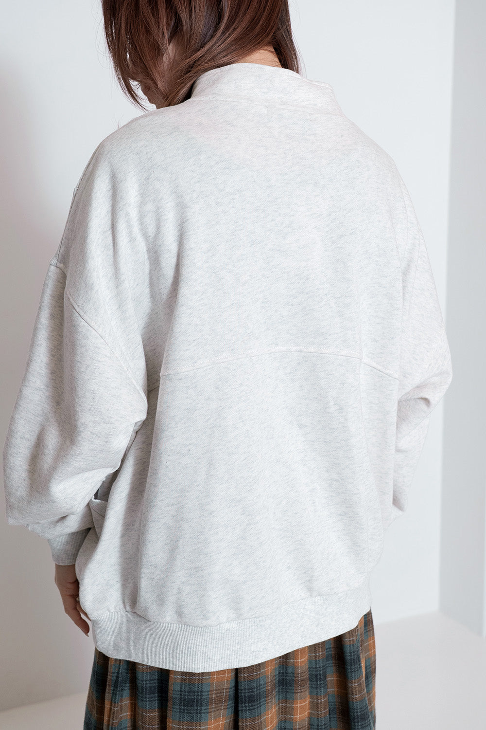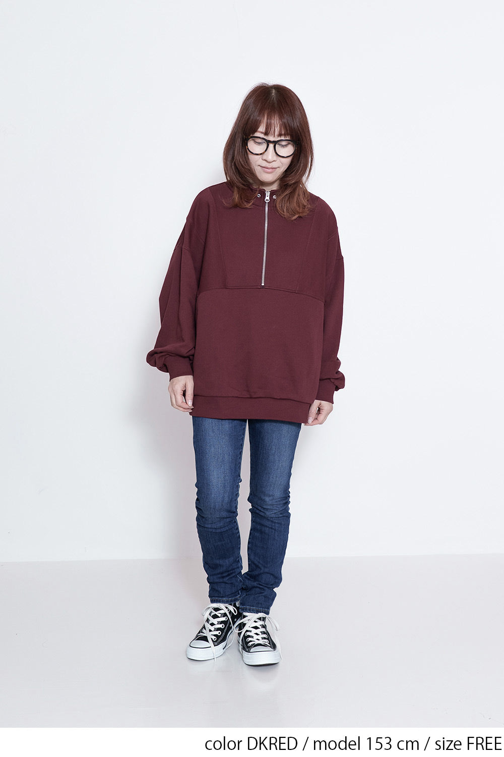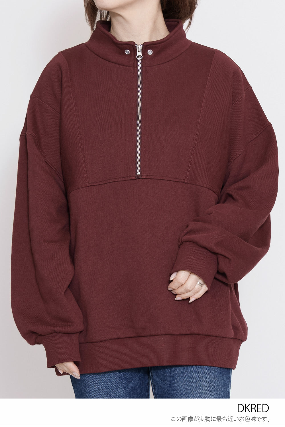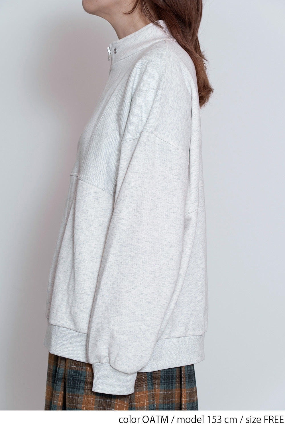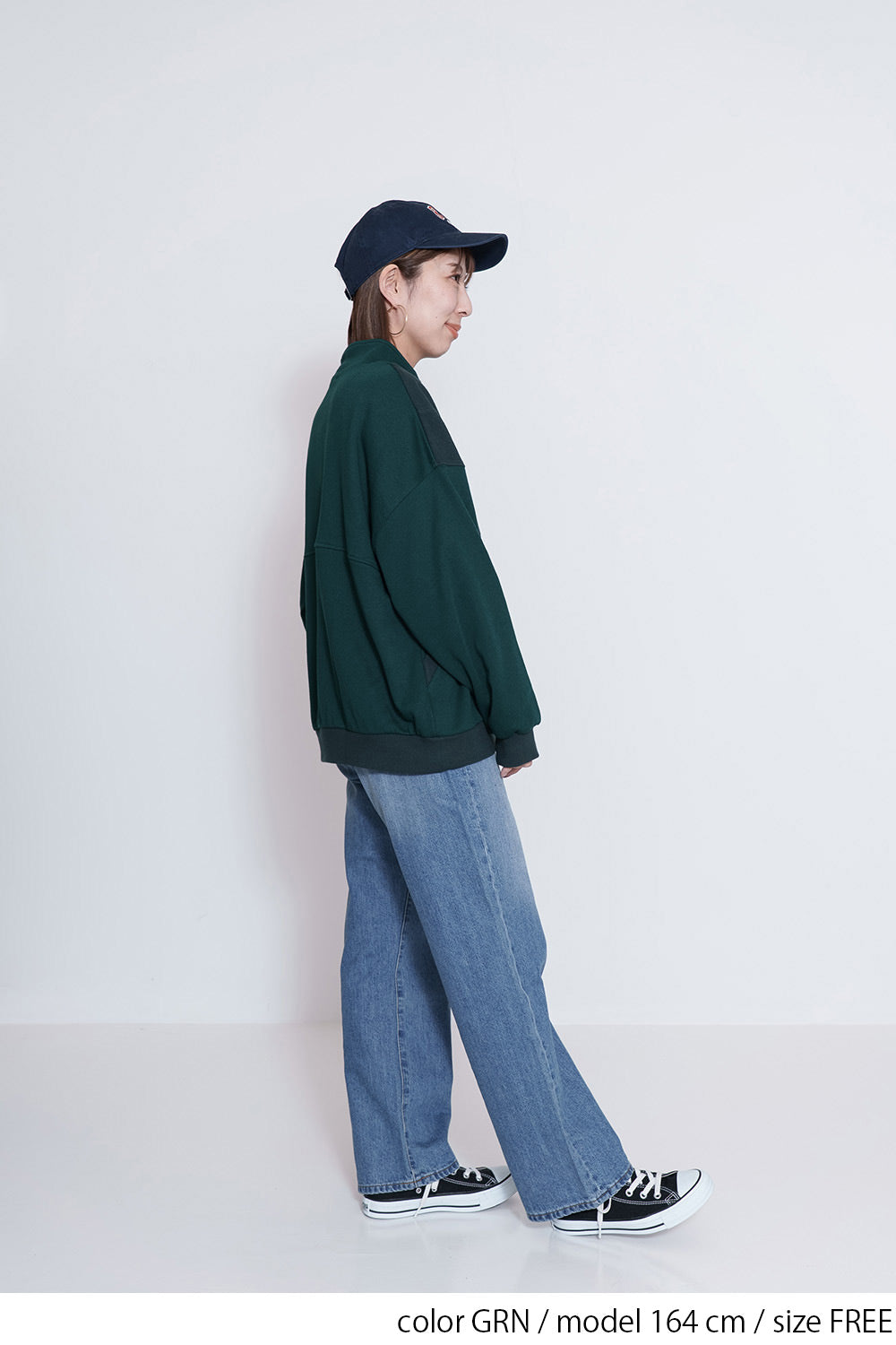 リメイク風の切り替えデザインが個性を演出するハーフジッププルオーバー。