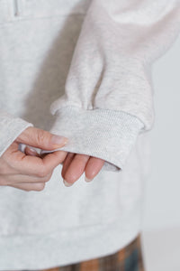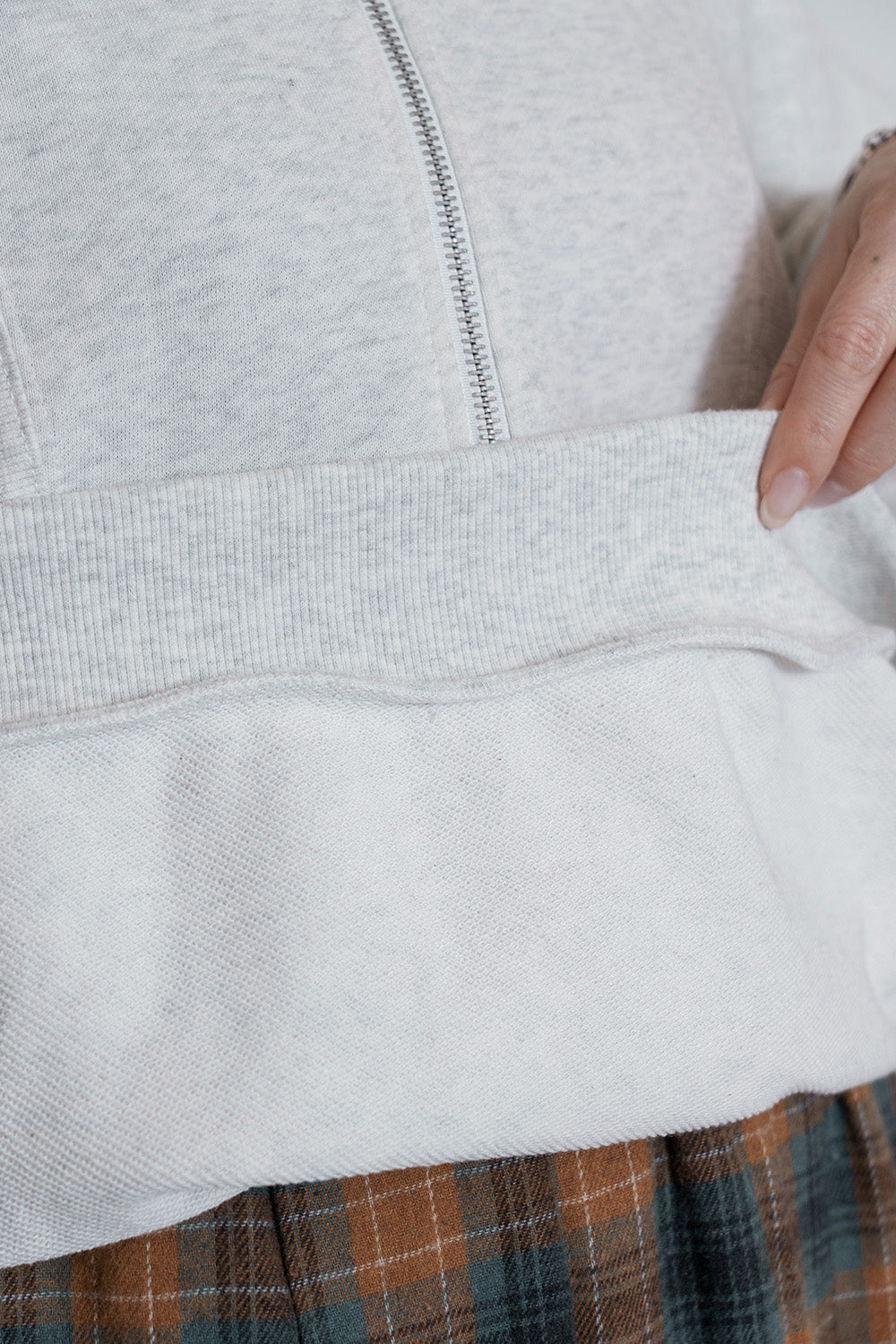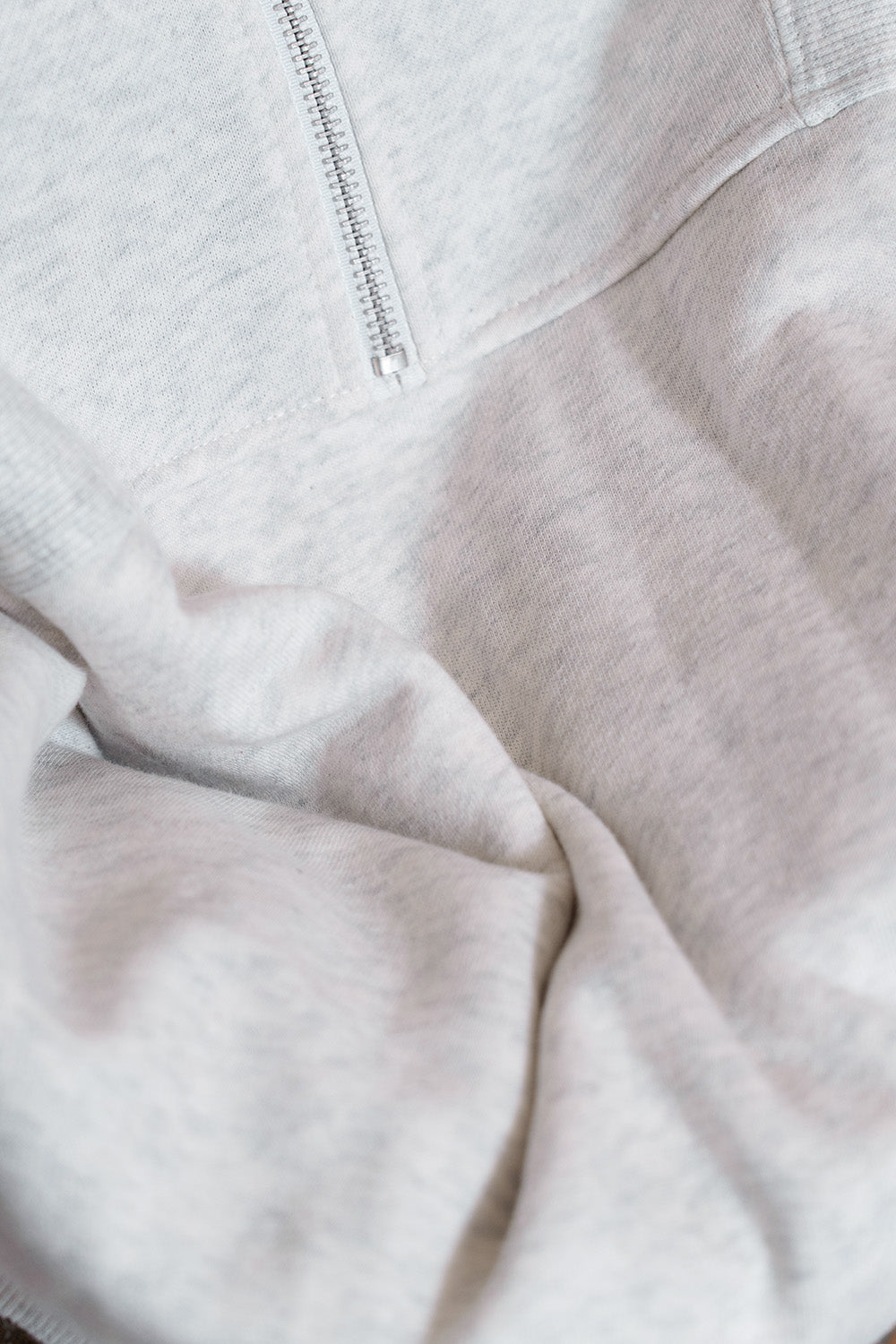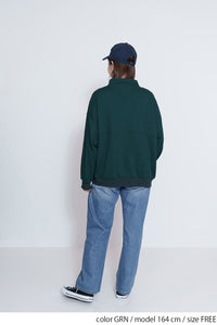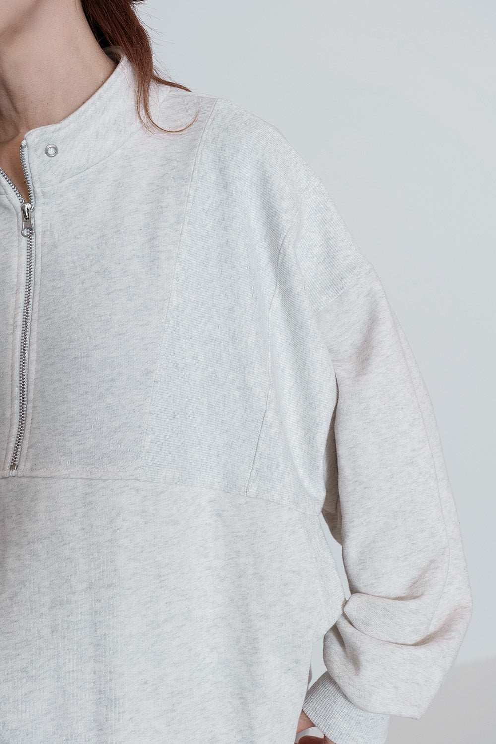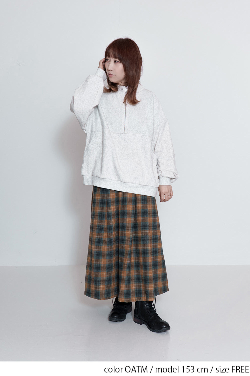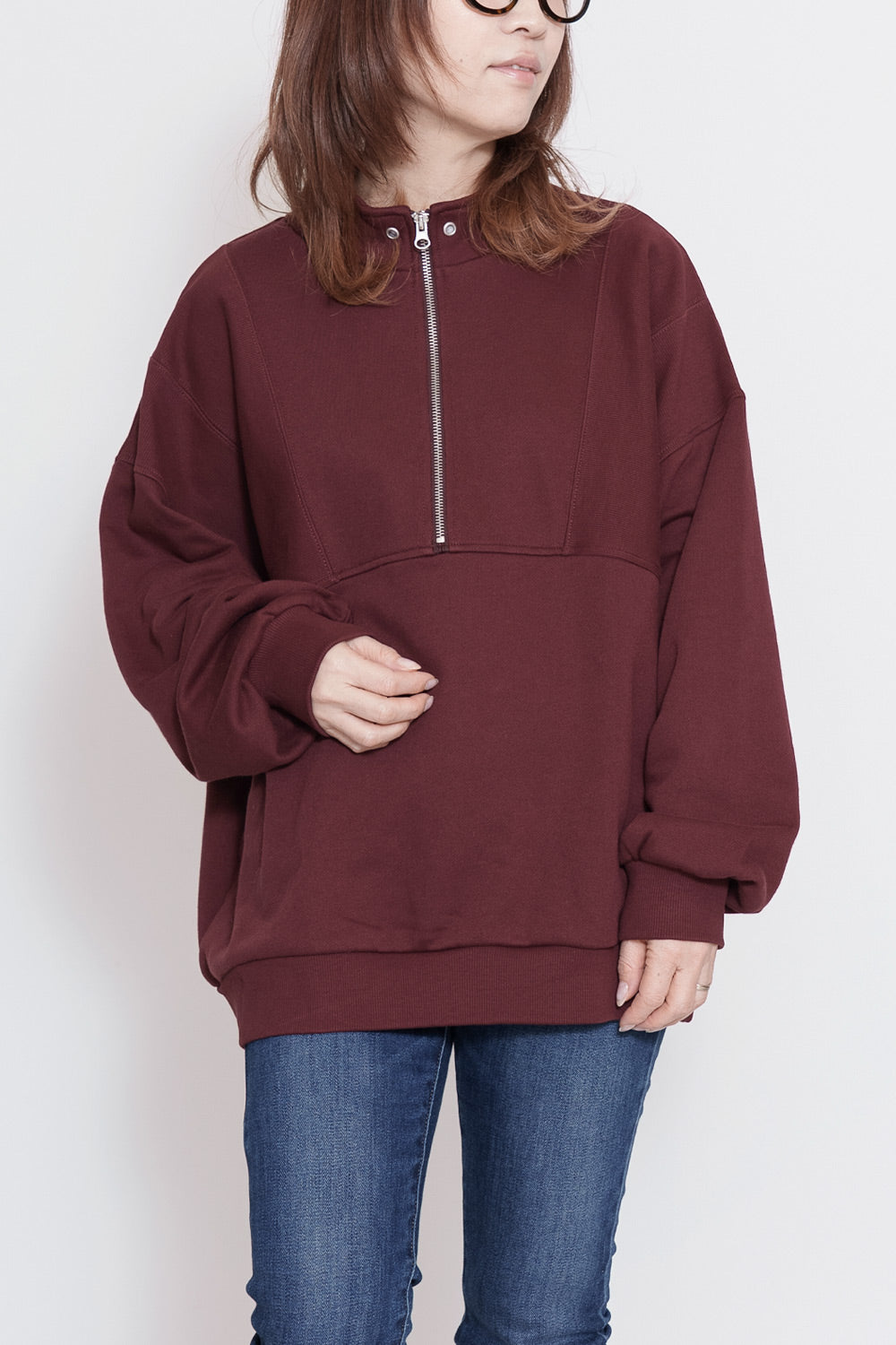 リメイク風の切り替えデザインが個性を演出するハーフジッププルオーバー。