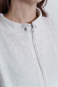 立ち上がりのあるスタンドカラーは、ジップの開け具合で印象を変えられるデザイン。