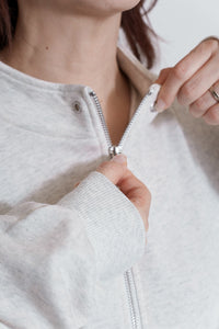 ハーフジップを少し開けてインナーをのぞかせれば、抜け感のあるスタイルに。
