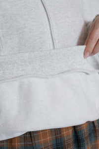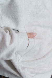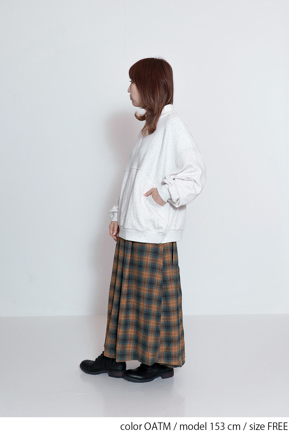 ゆったりとしたシルエットと大きめのマフポケットで、抜け感と実用性を兼ね備えています。