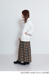 スカート合わせで甘さをプラスすれば、フェミニンカジュアルにもアレンジできます。