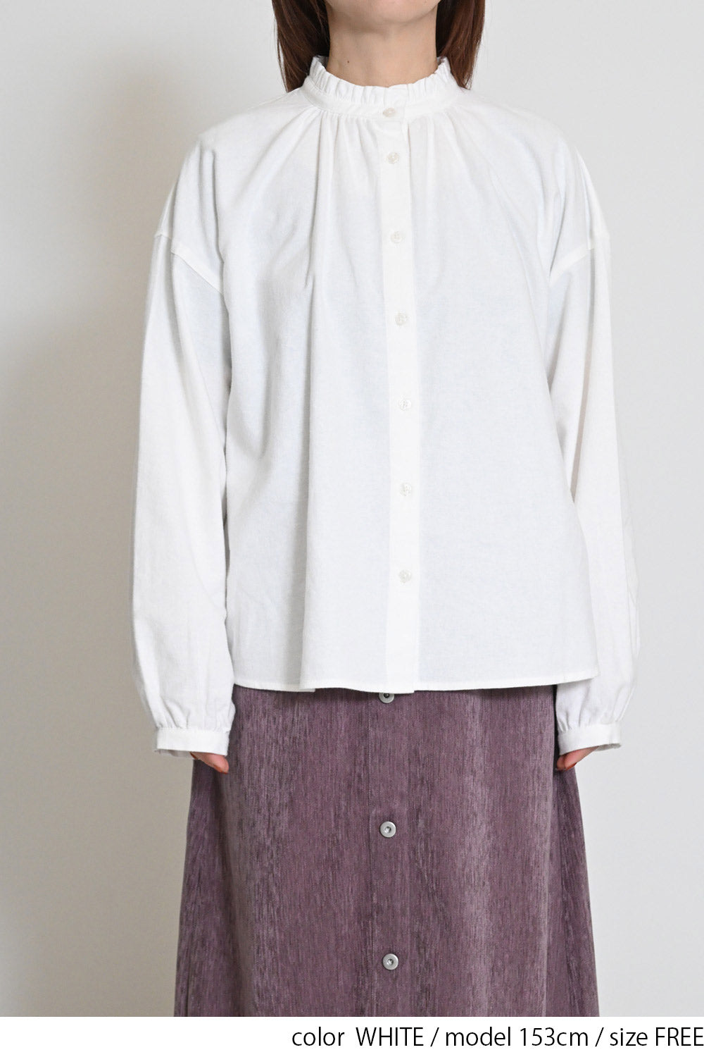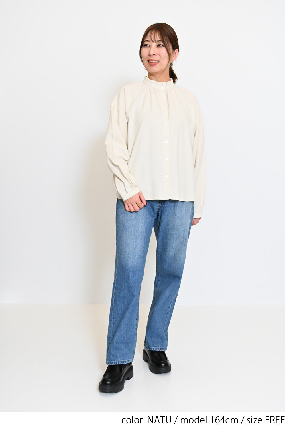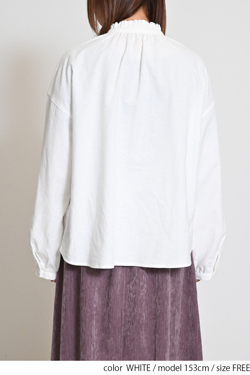 首元にさりげない華やかさを添えてくれるフリルが、スウェットやニットと相性抜群。