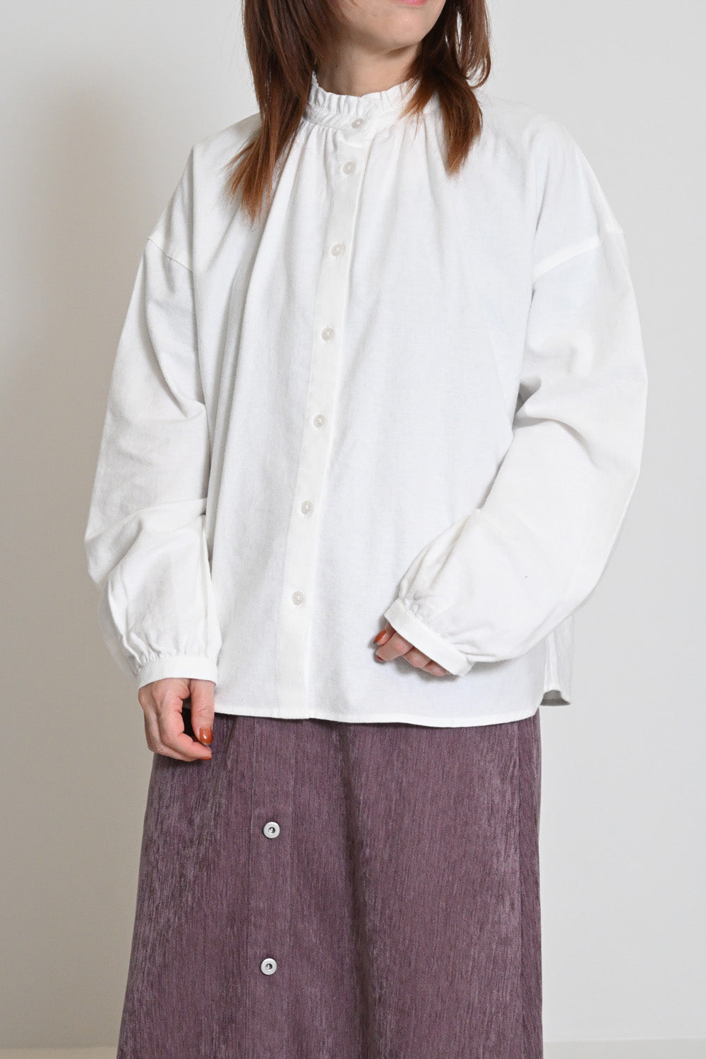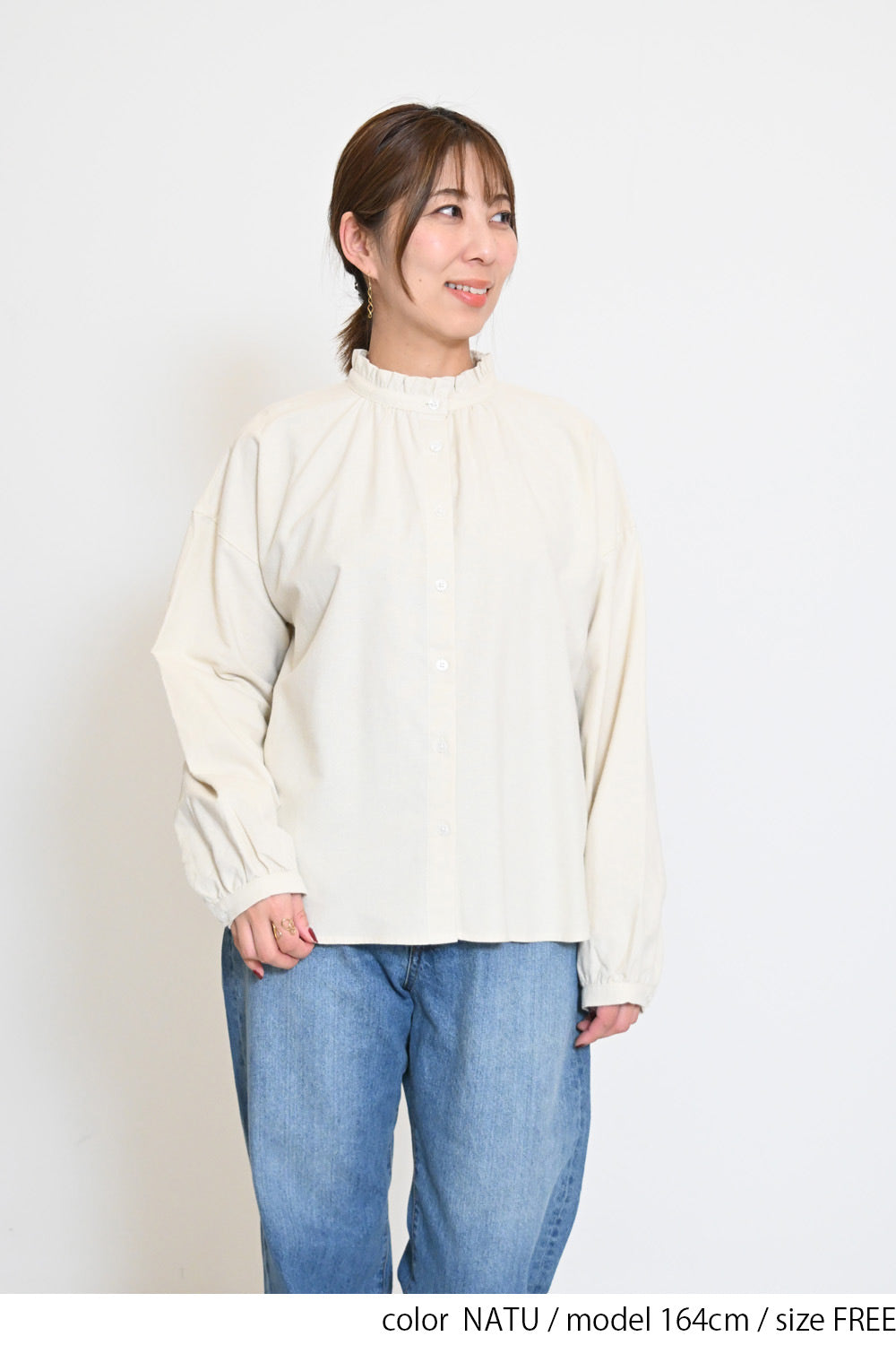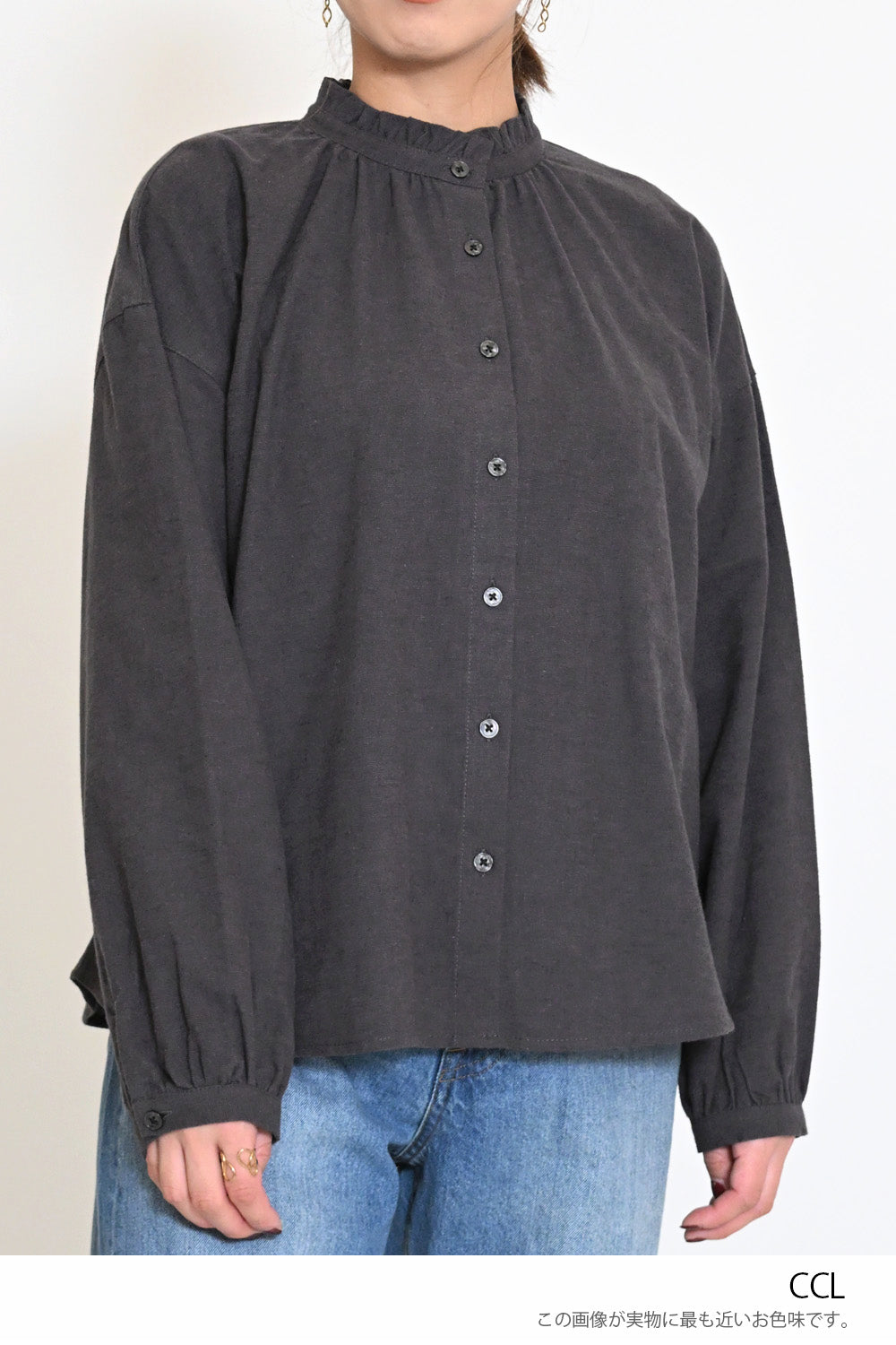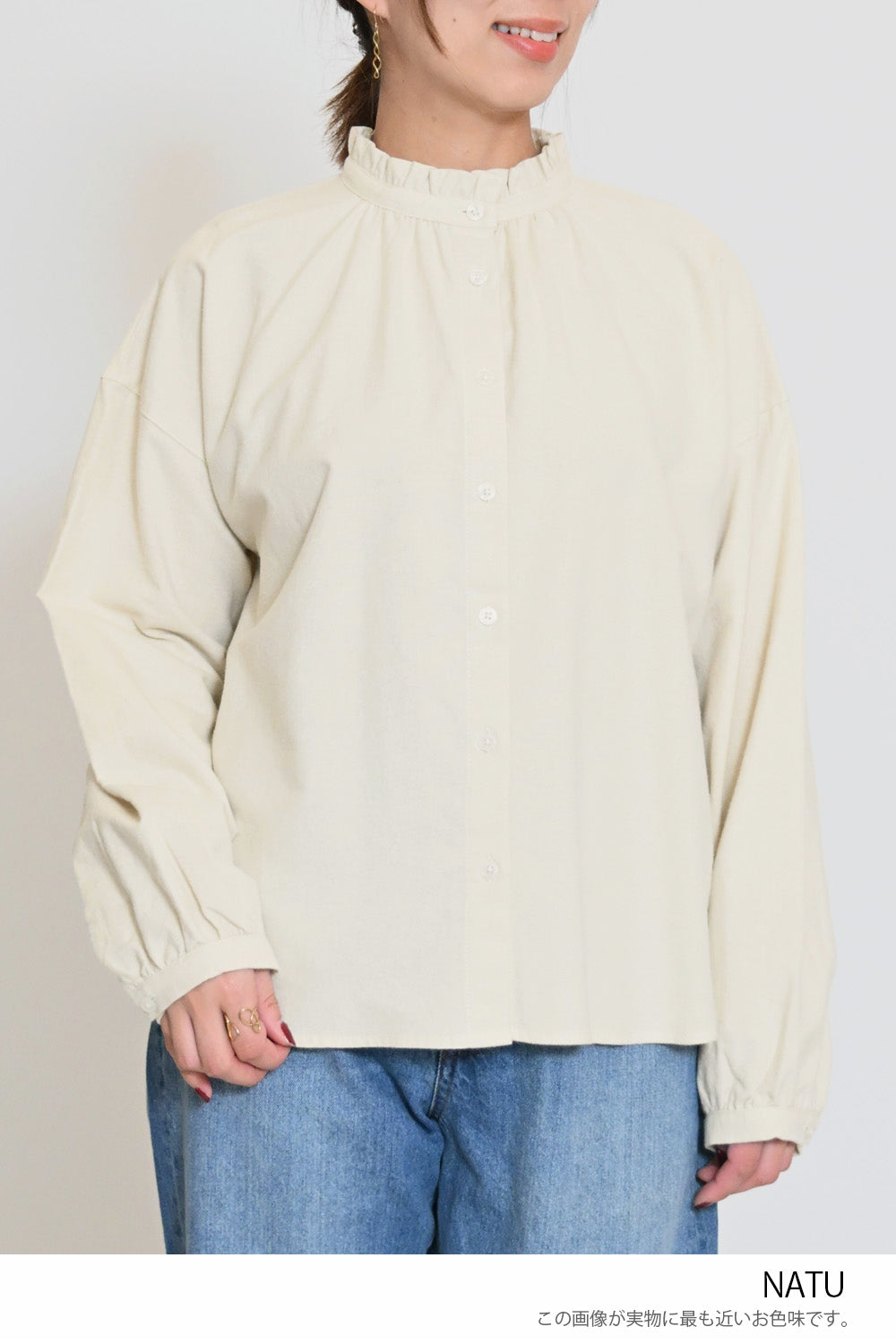 首元にさりげない華やかさを添えてくれるフリルが、スウェットやニットと相性抜群。