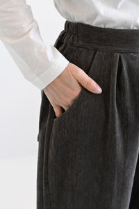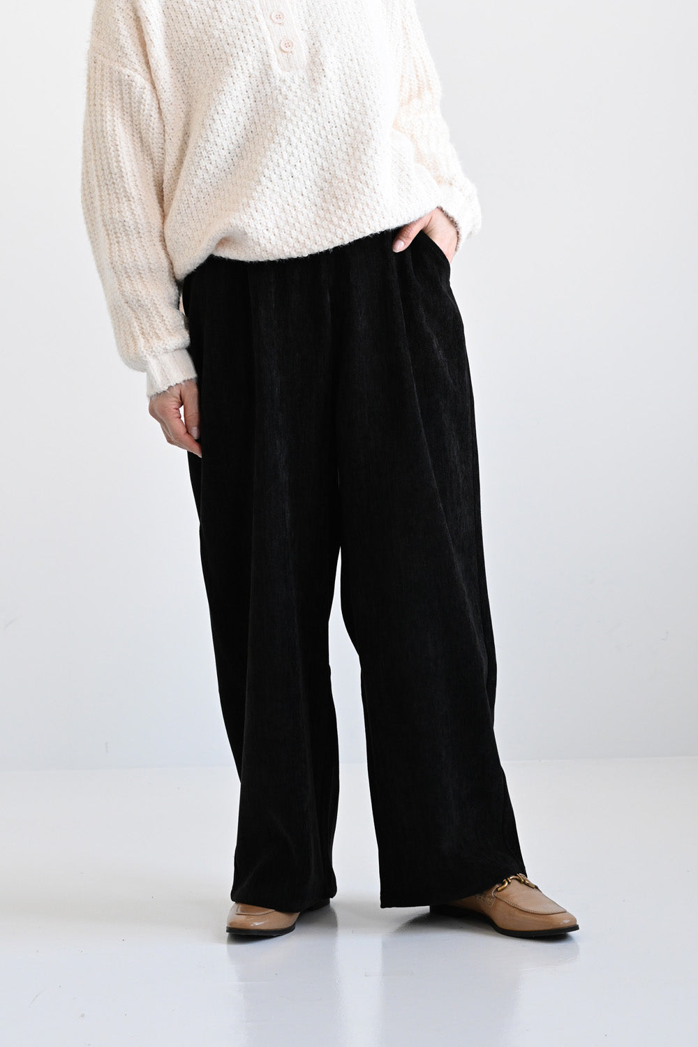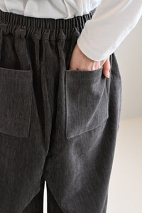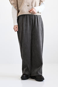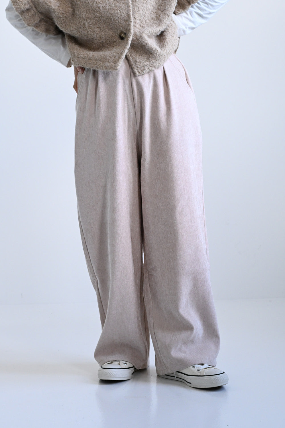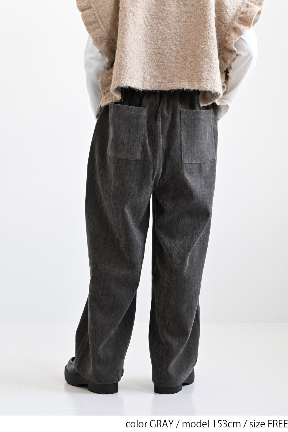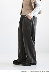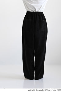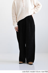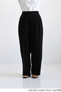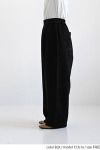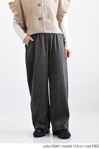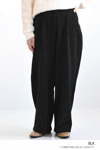ふんわりとした起毛感が魅力のモール素材を使用した、シーズンムードたっぷりのバレルパンツ。