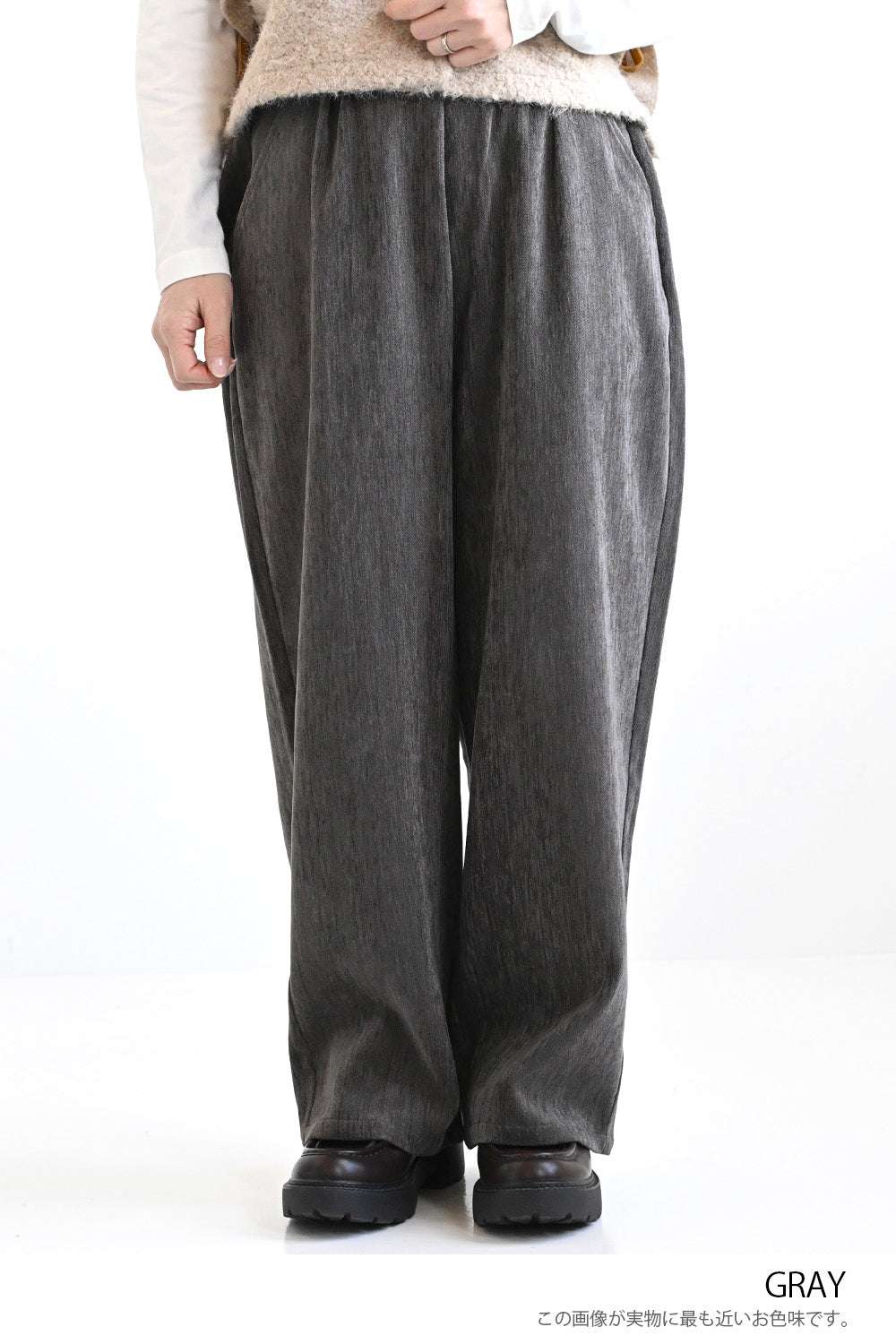 ふわふわとしたやさしい肌触りで、見た目にもあたたかみがあり、秋冬にぴったりの素材感です。