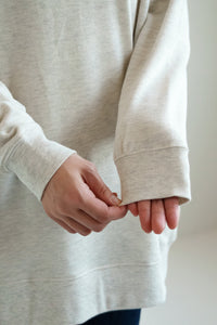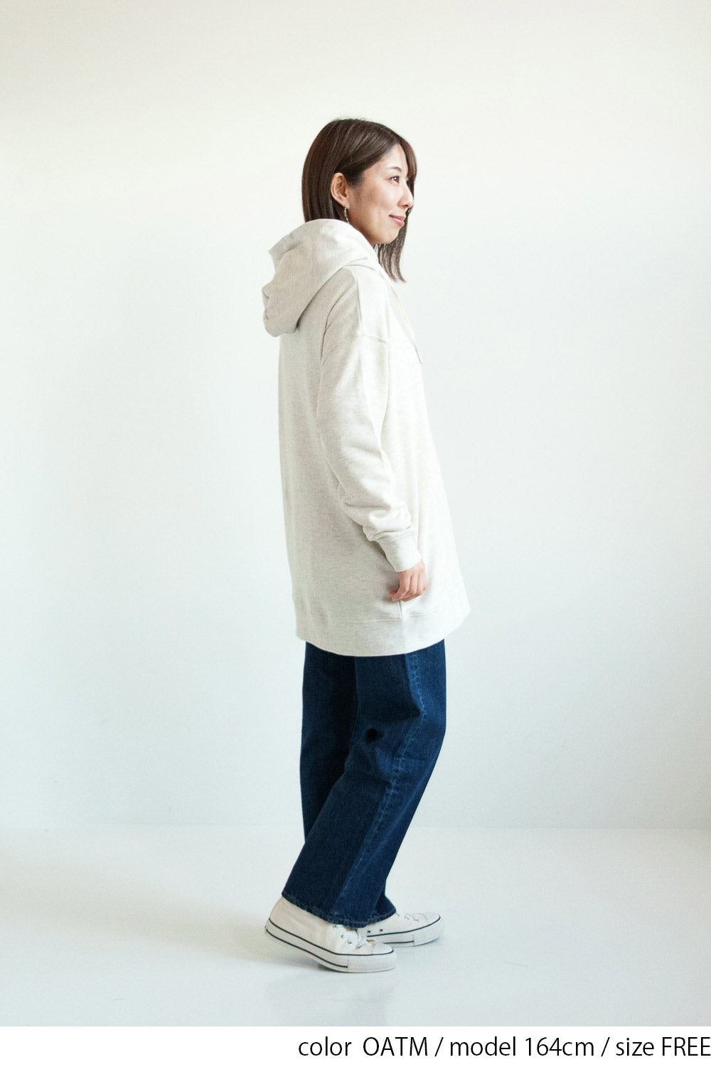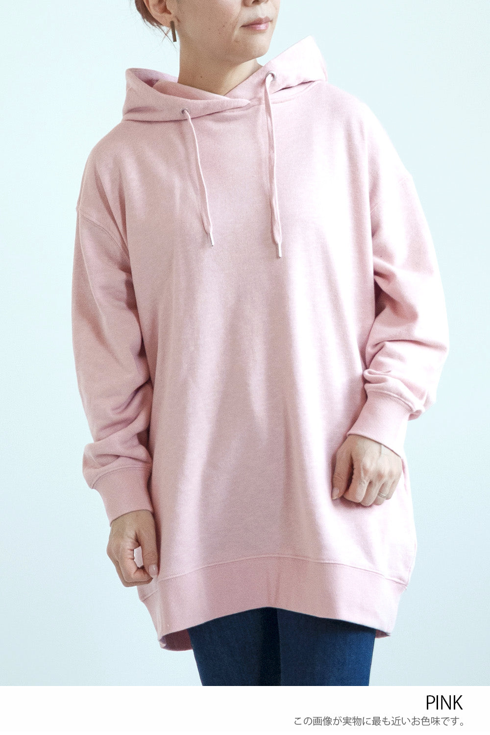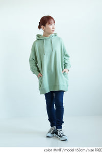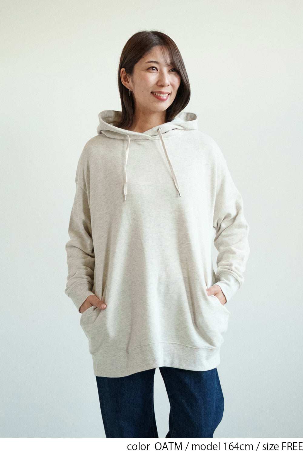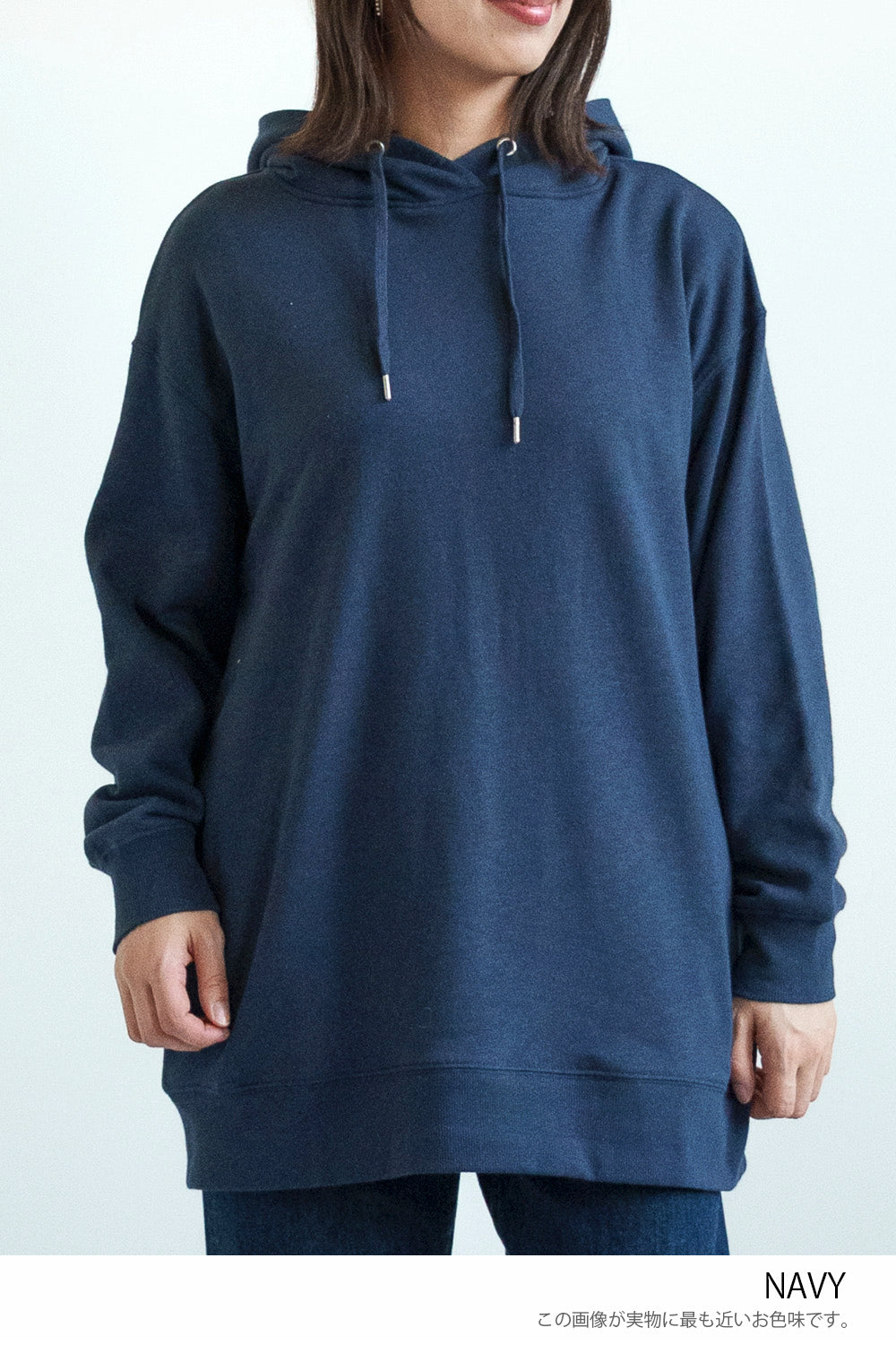 ゆったりとしたオーバーサイズシルエットと、ヒップまでしっかり隠れるチュニック丈が、体のラインをさりげなくカバー。