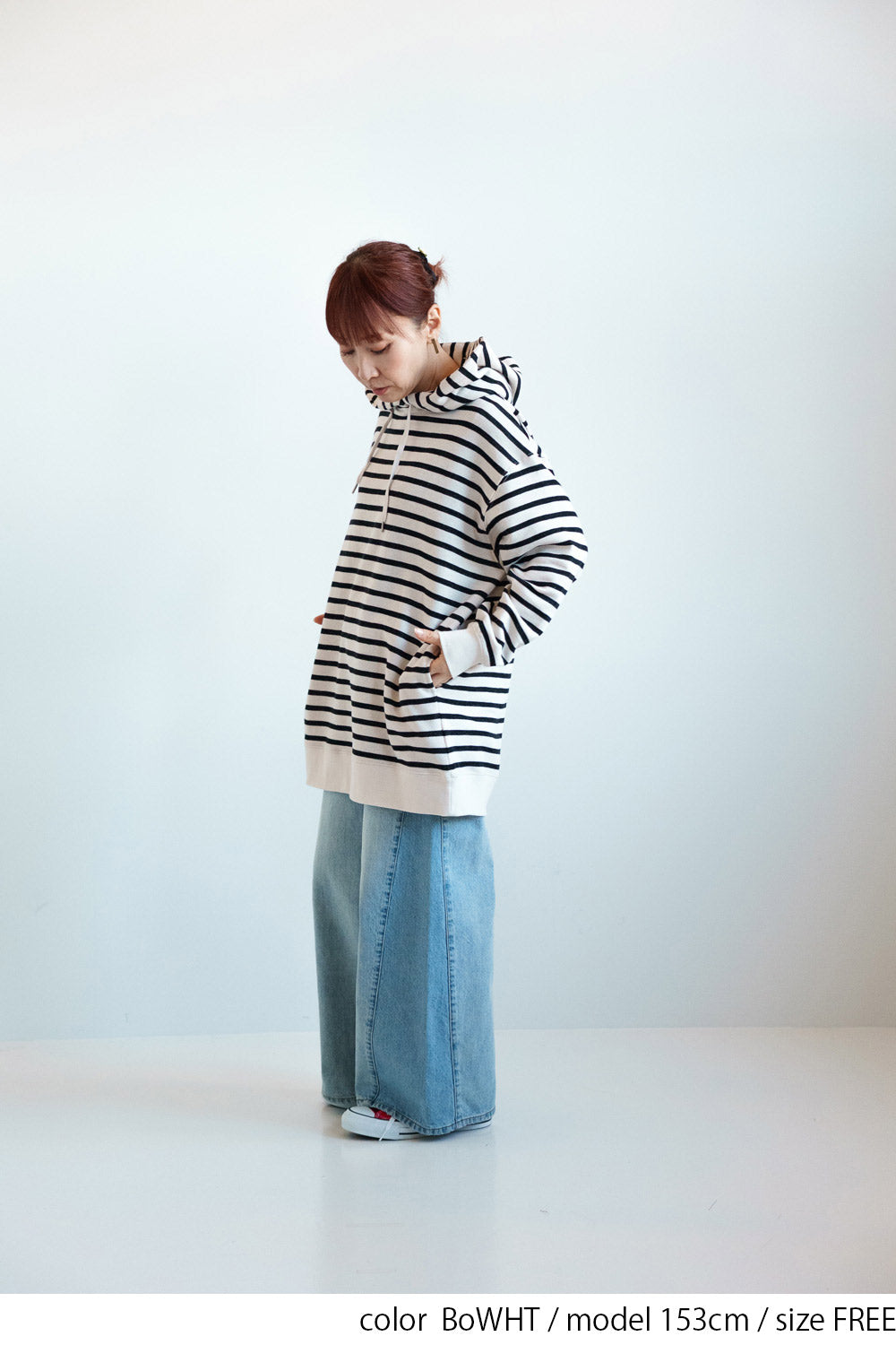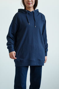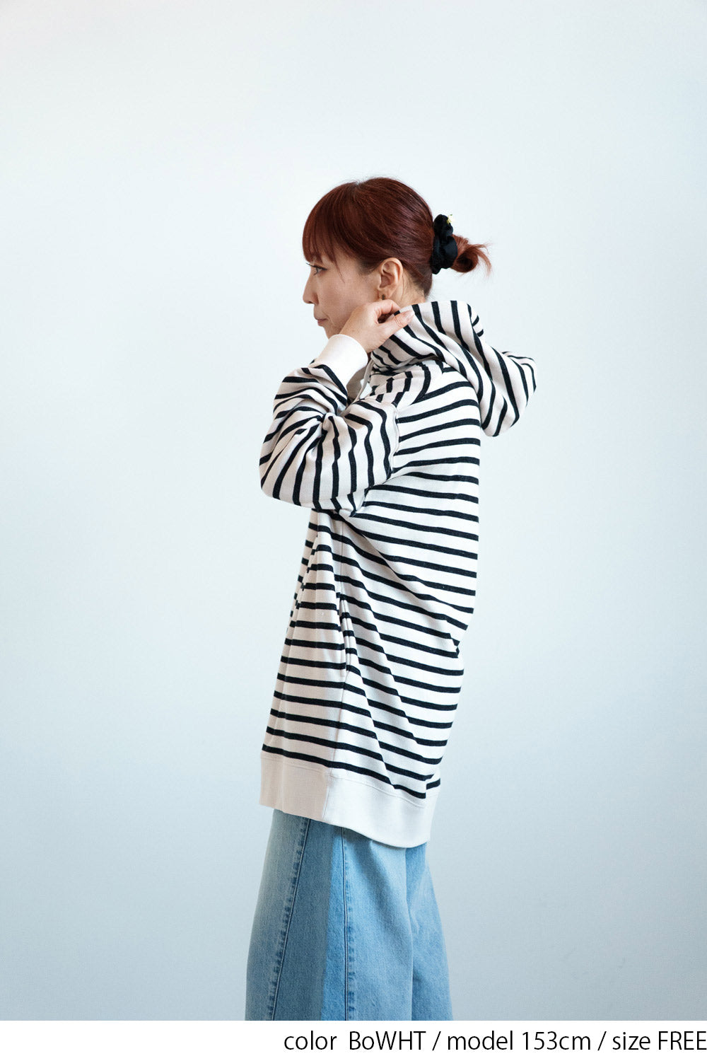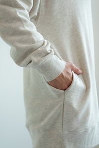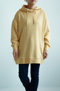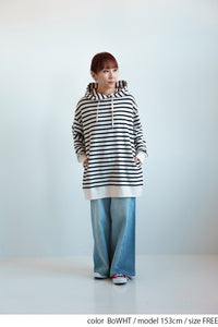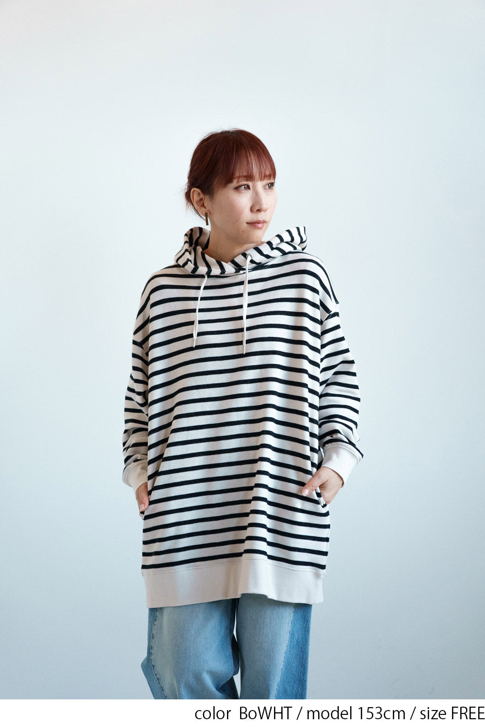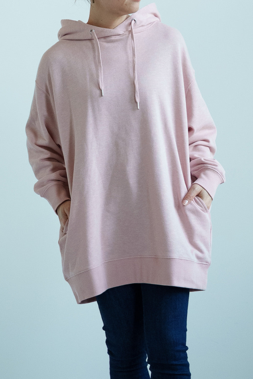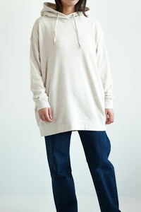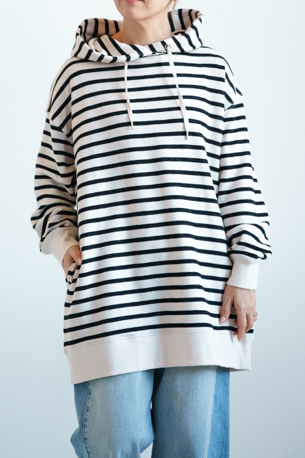 ゆったりとしたオーバーサイズシルエットと、ヒップまでしっかり隠れるチュニック丈が、体のラインをさりげなくカバー。