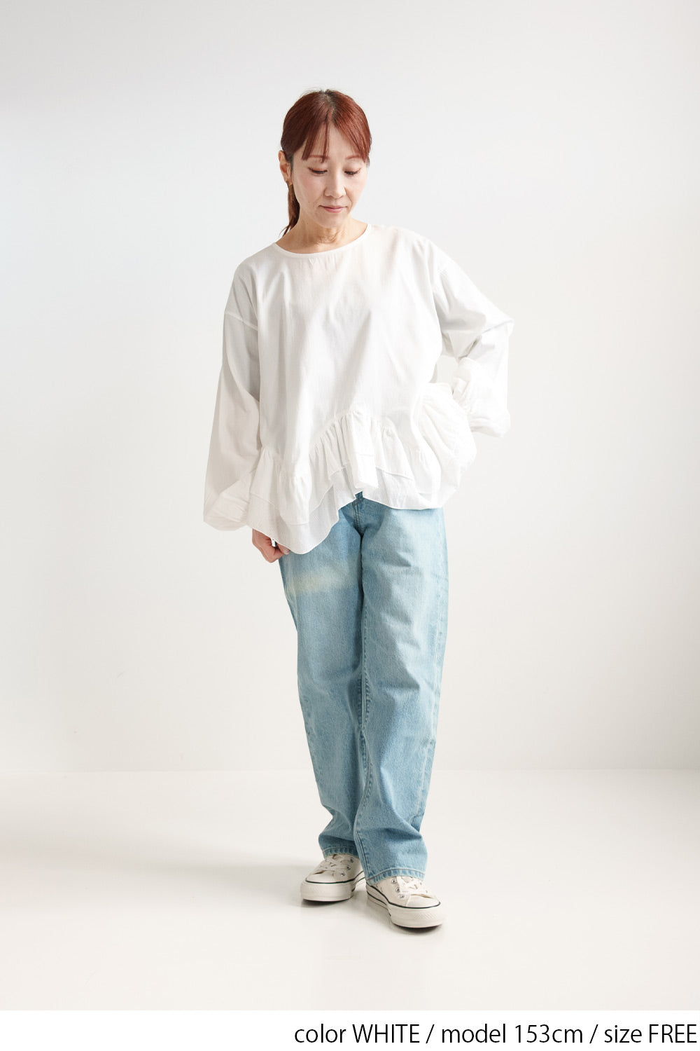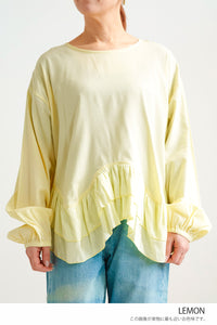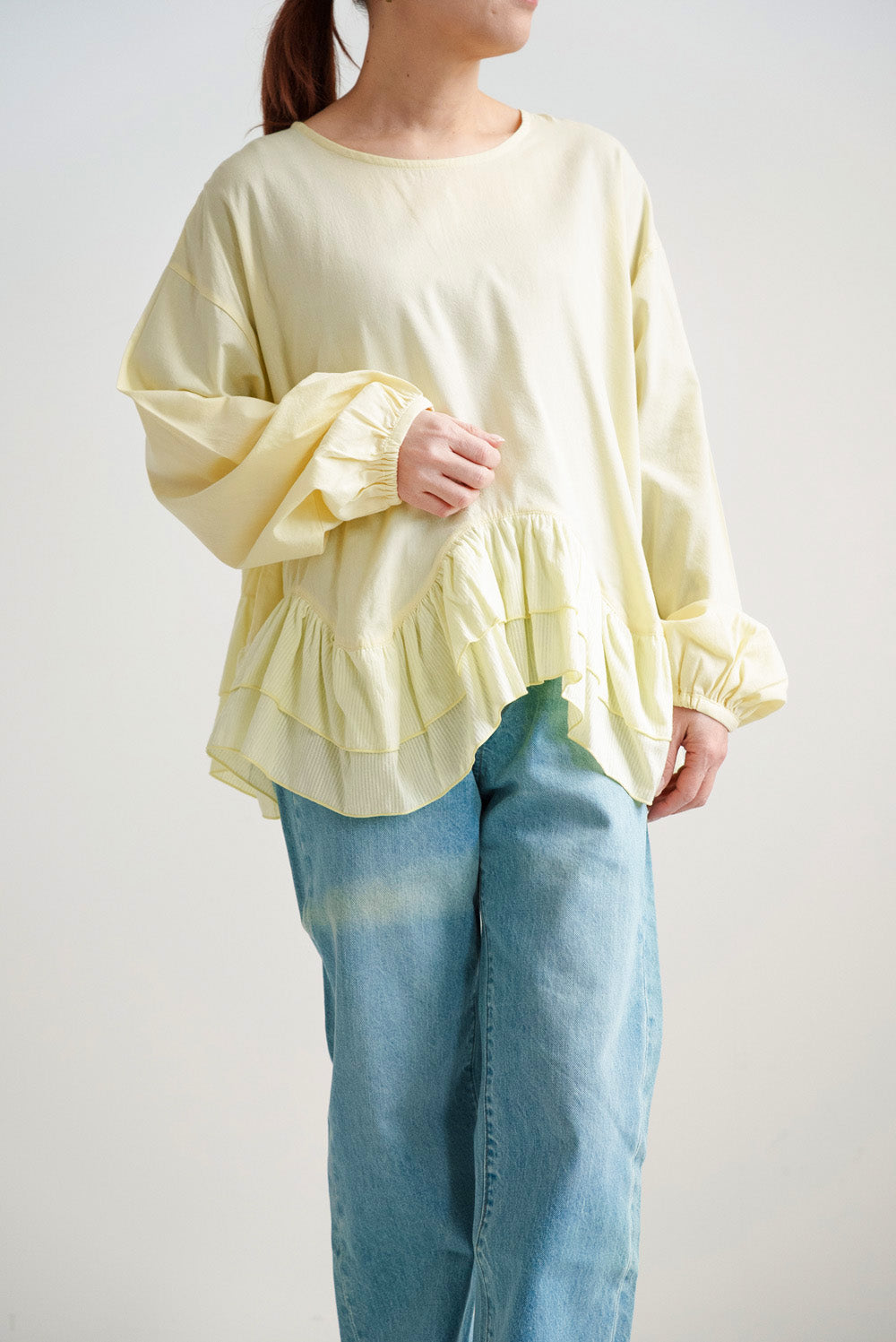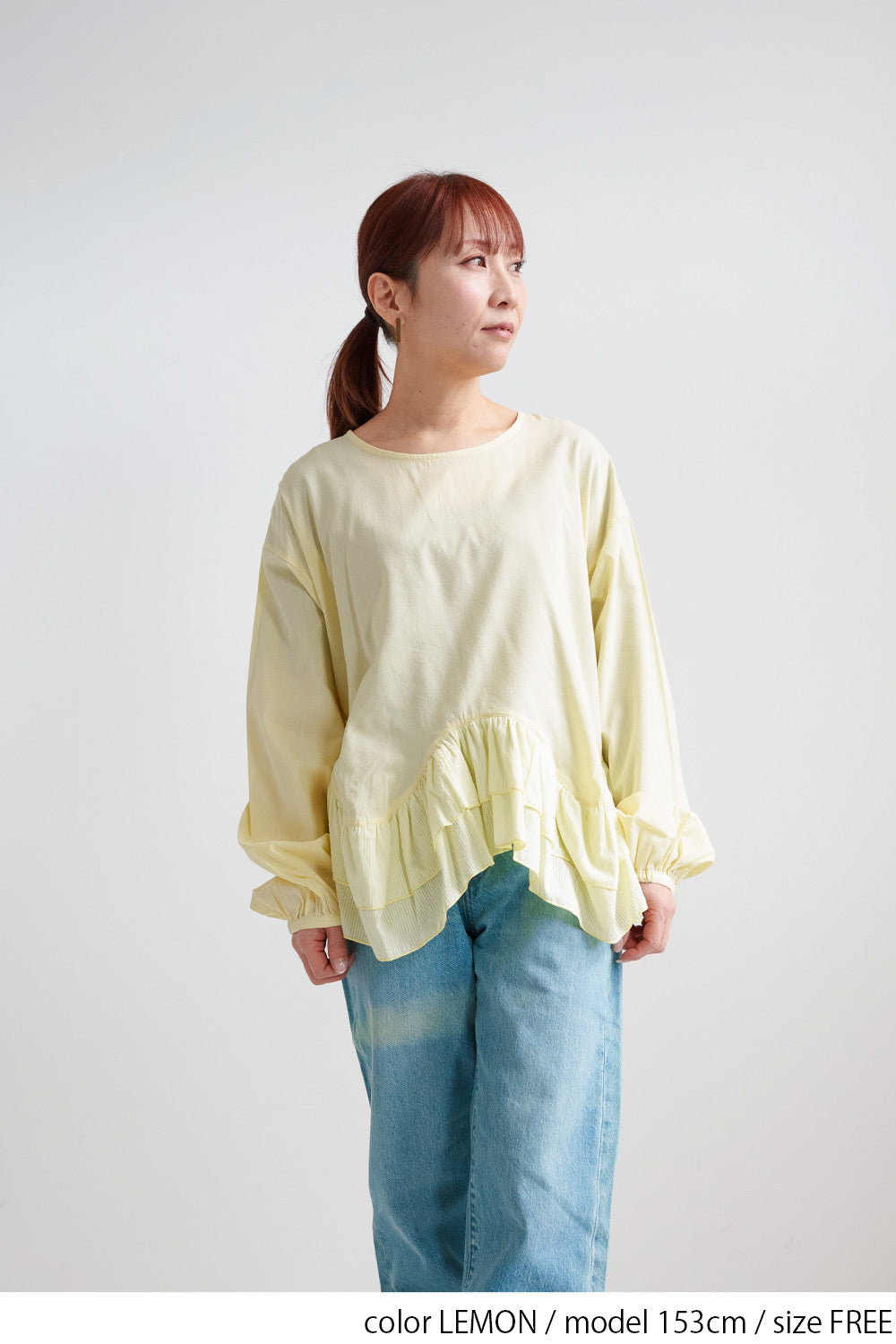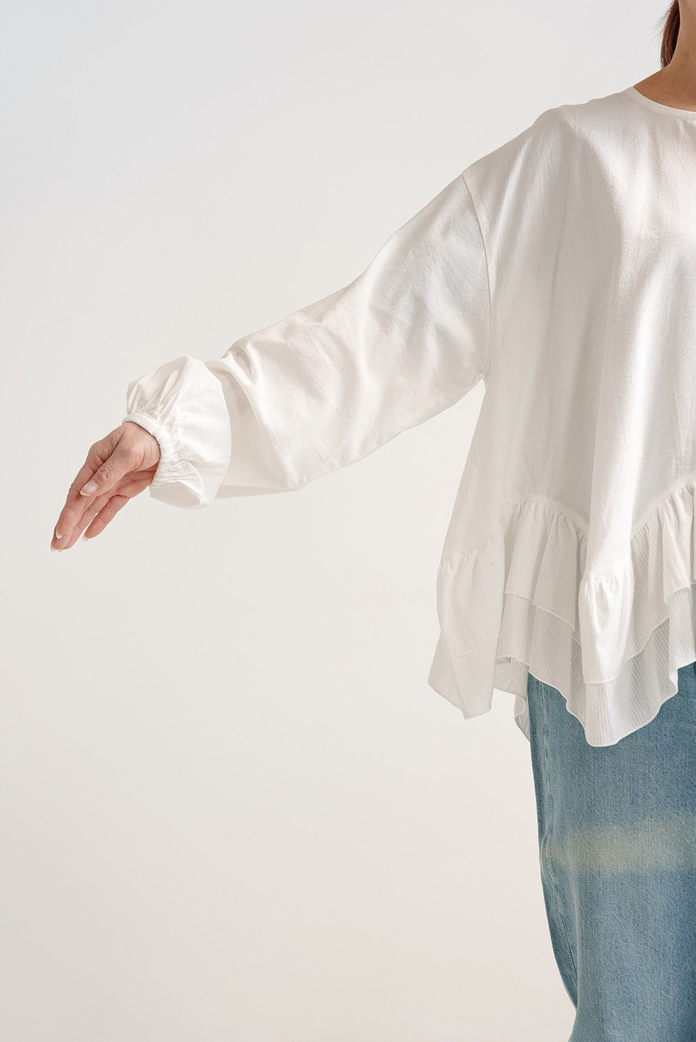 裾フリルがアクセントになった、軽やかなフリルヘムカットブラウス。