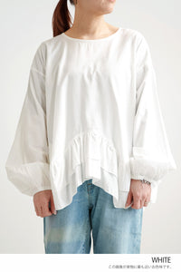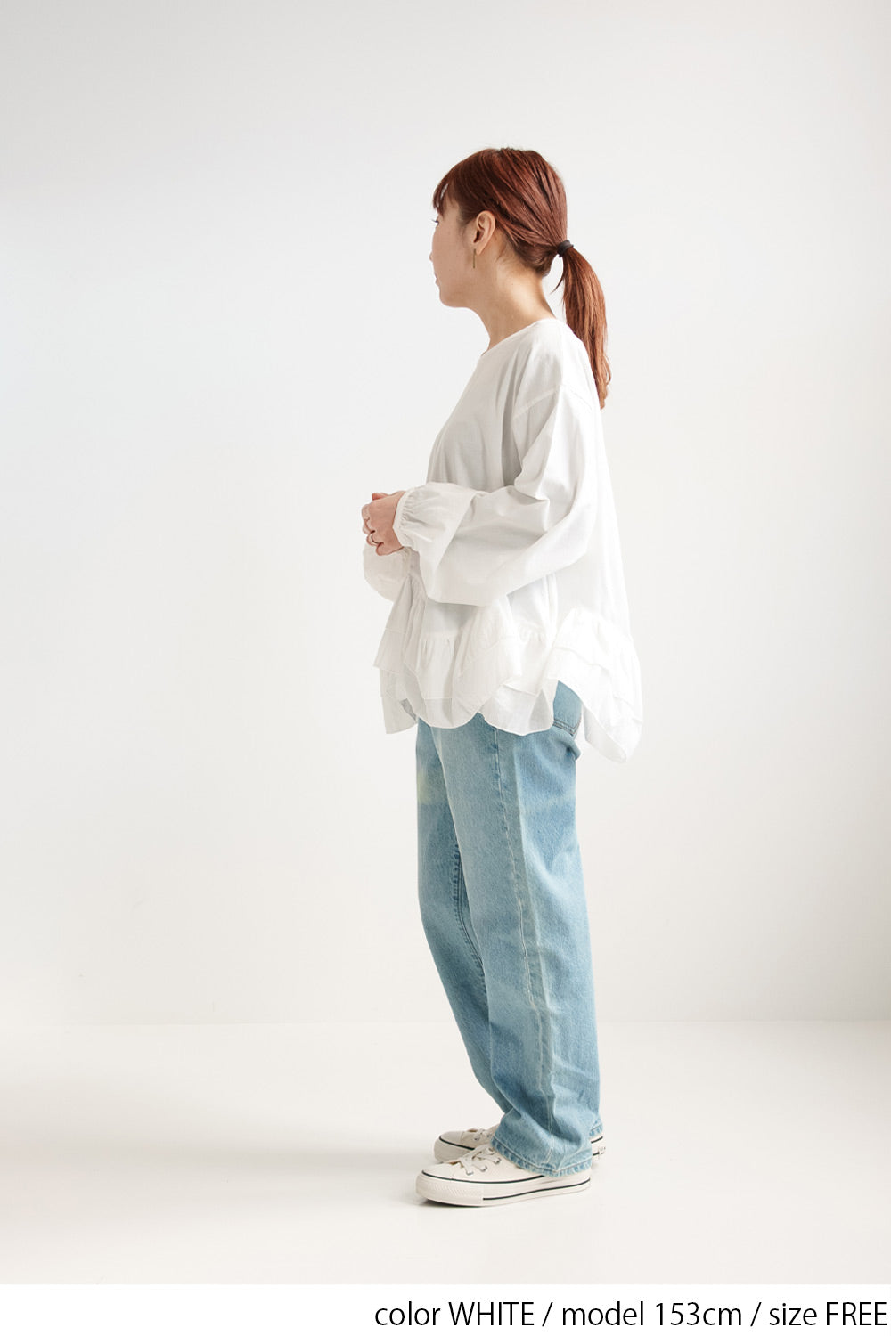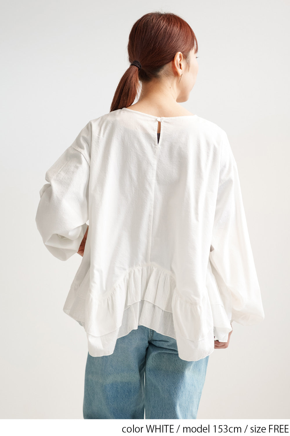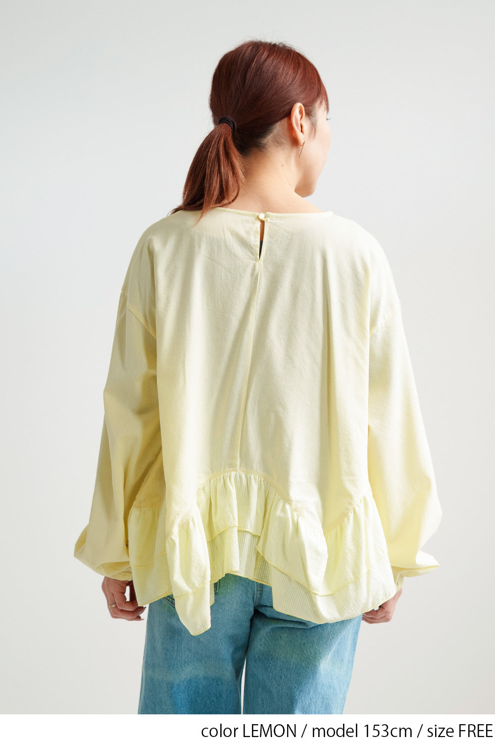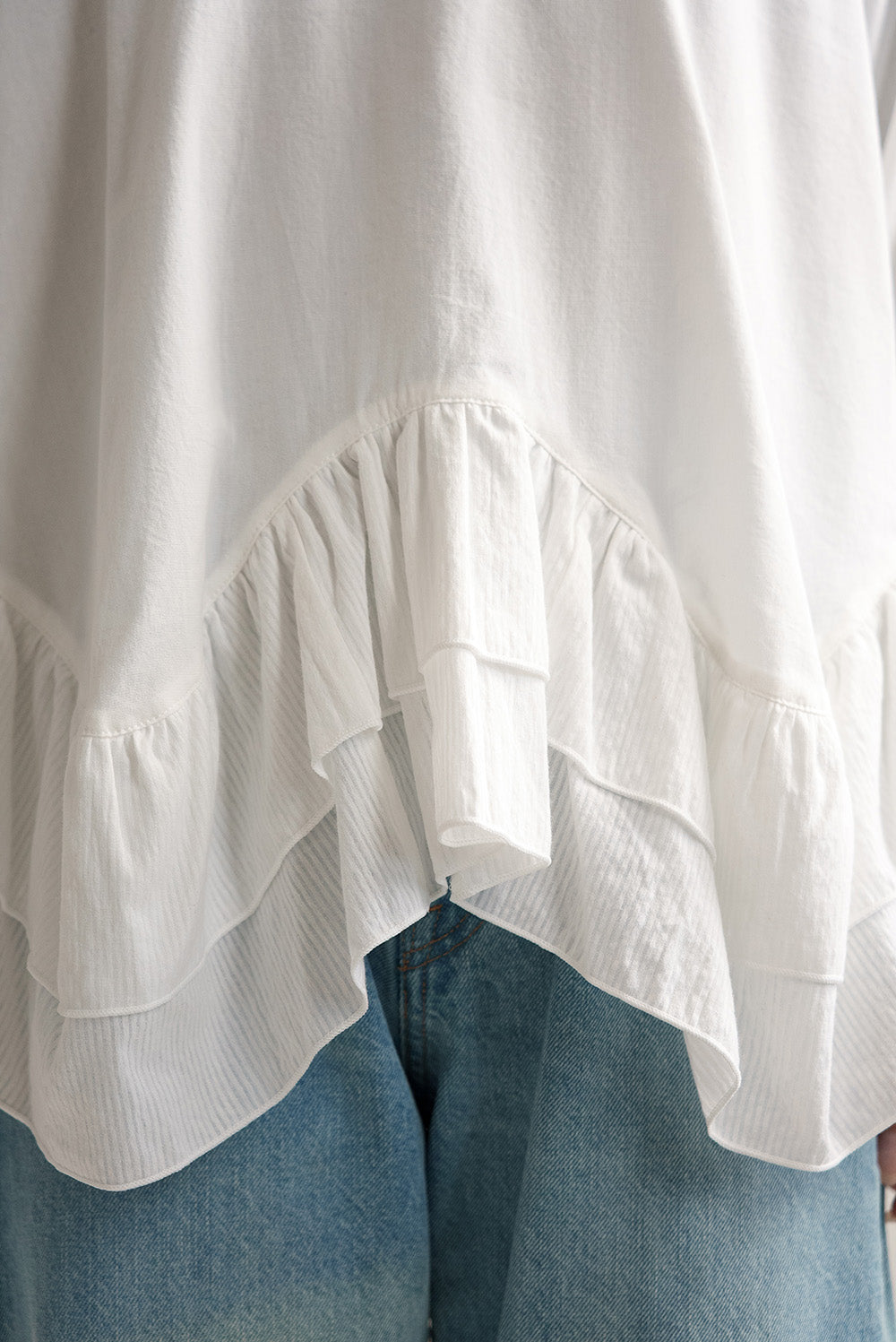 裾フリルがアクセントになった、軽やかなフリルヘムカットブラウス。