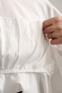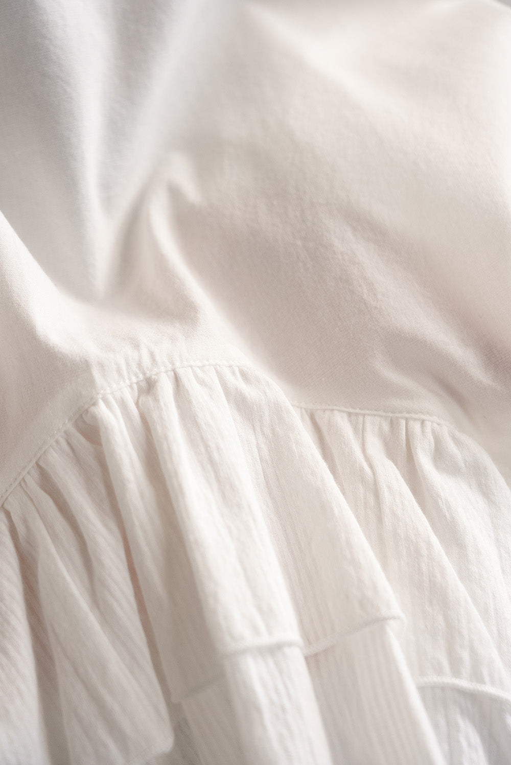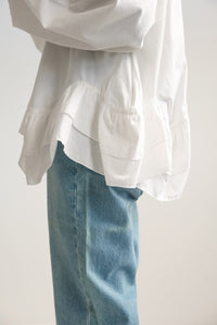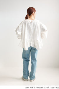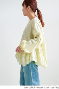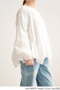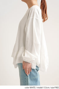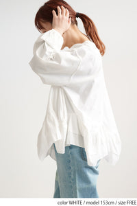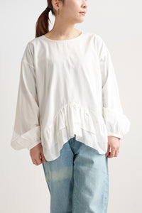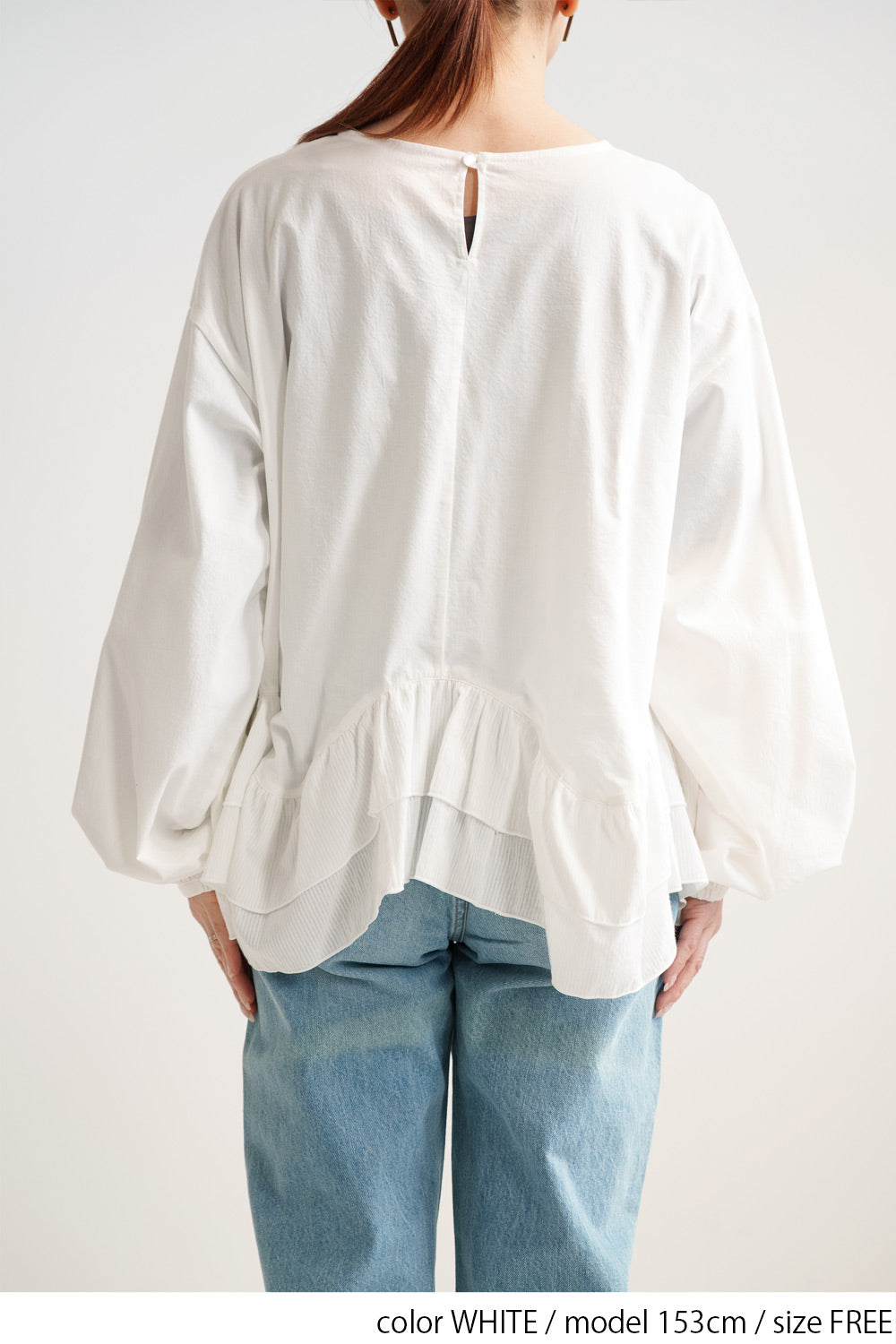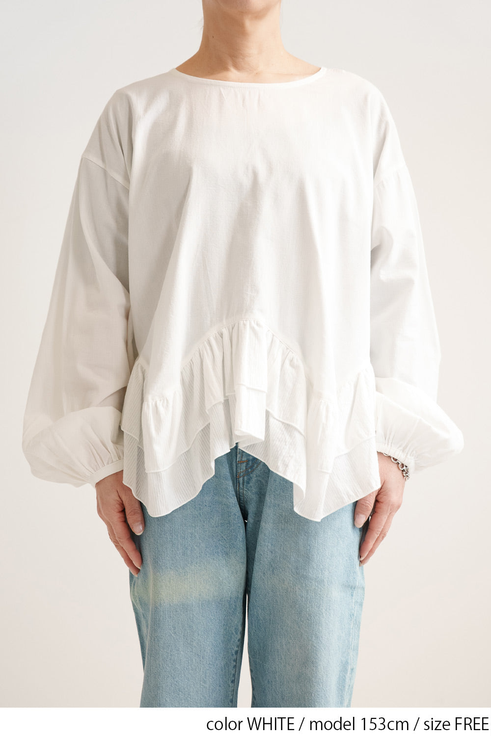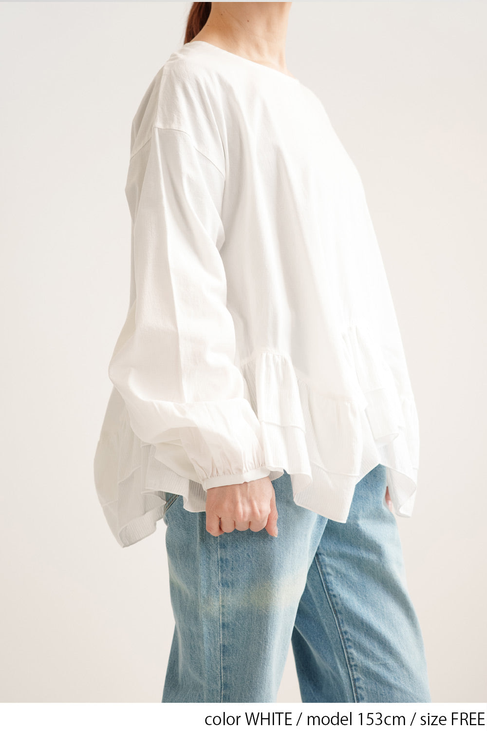 裾フリルがアクセントになった、軽やかなフリルヘムカットブラウス。