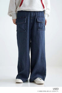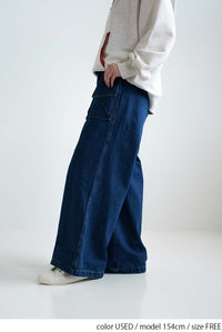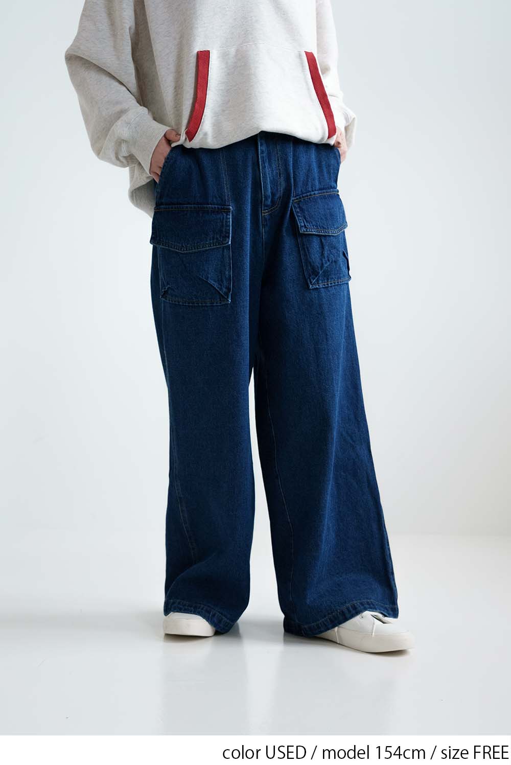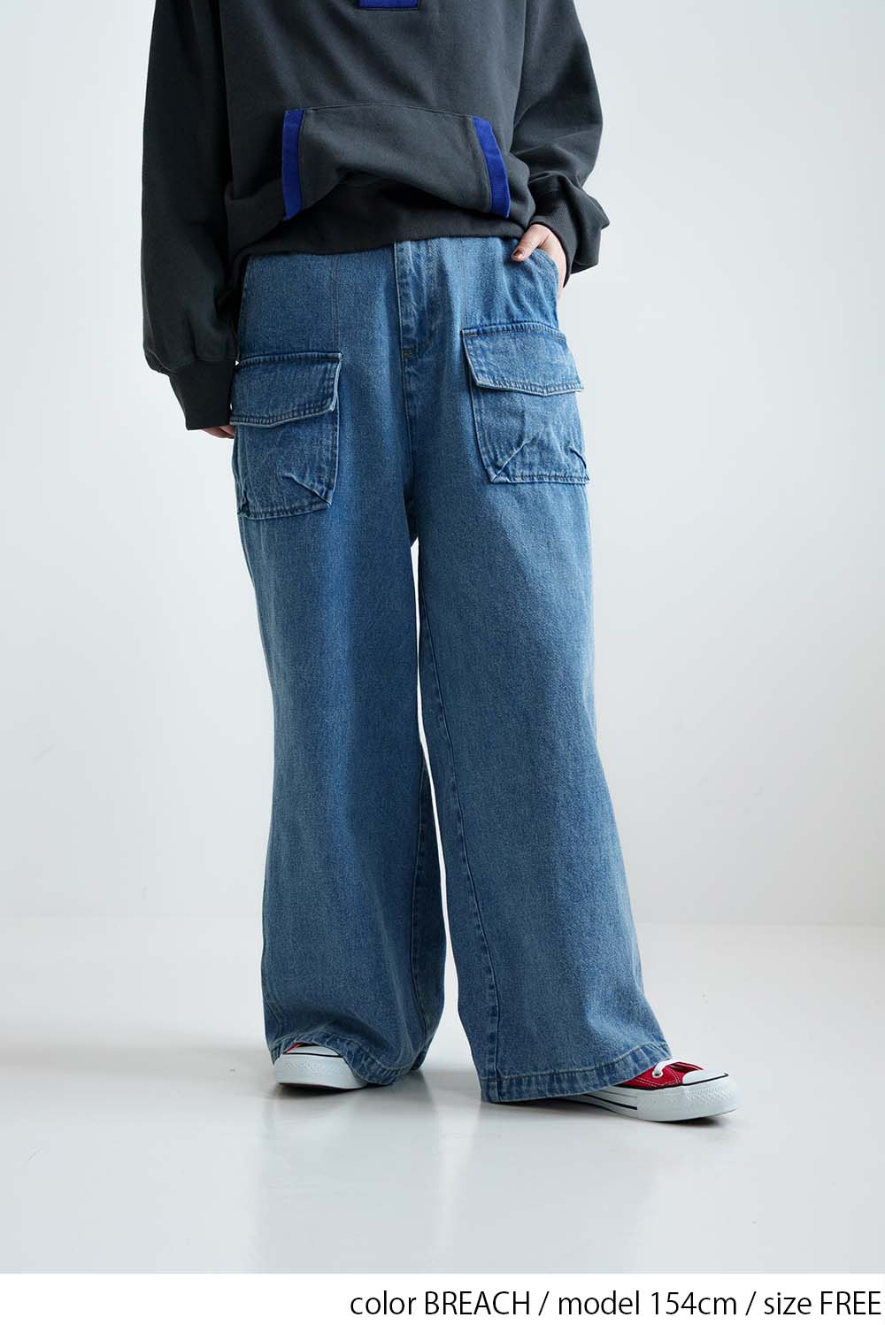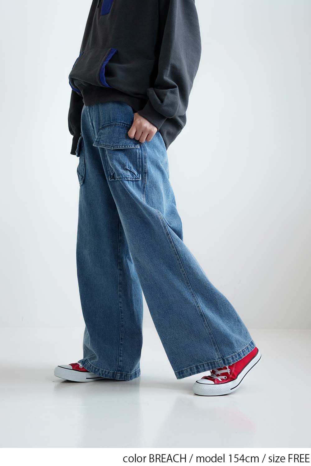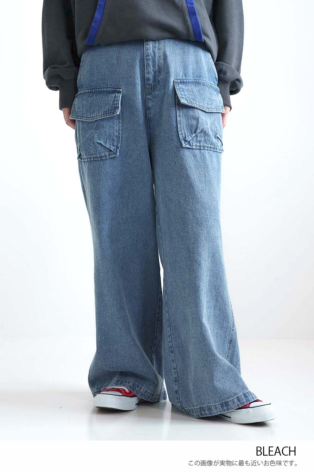 トレンドのワイドシルエットに、フラップポケットをあしらいワークテイストをプラスしたデニムワイドパンツです。