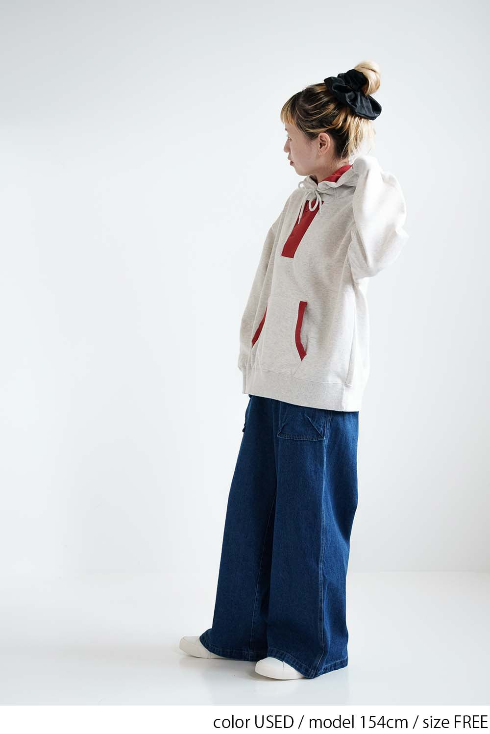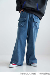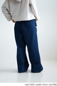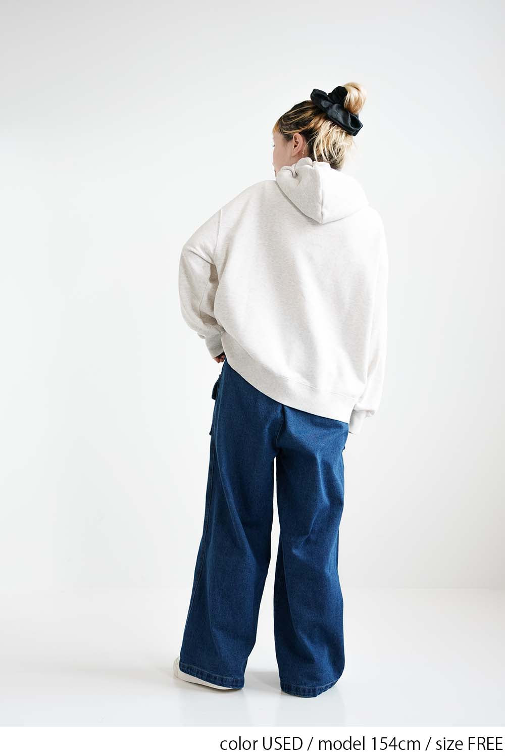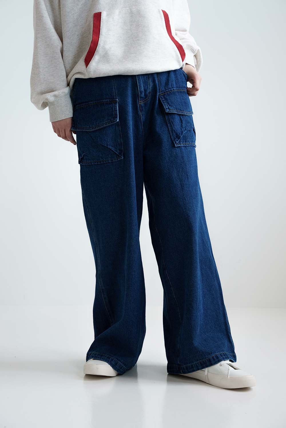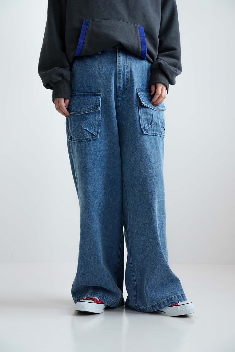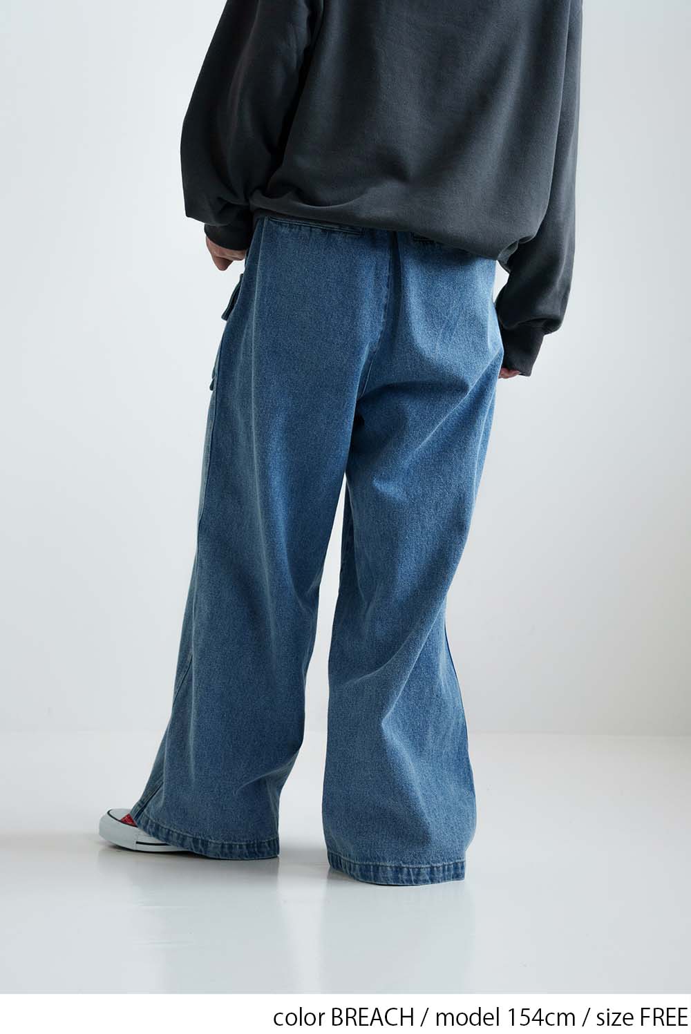 トレンドのワイドシルエットに、フラップポケットをあしらいワークテイストをプラスしたデニムワイドパンツです。
