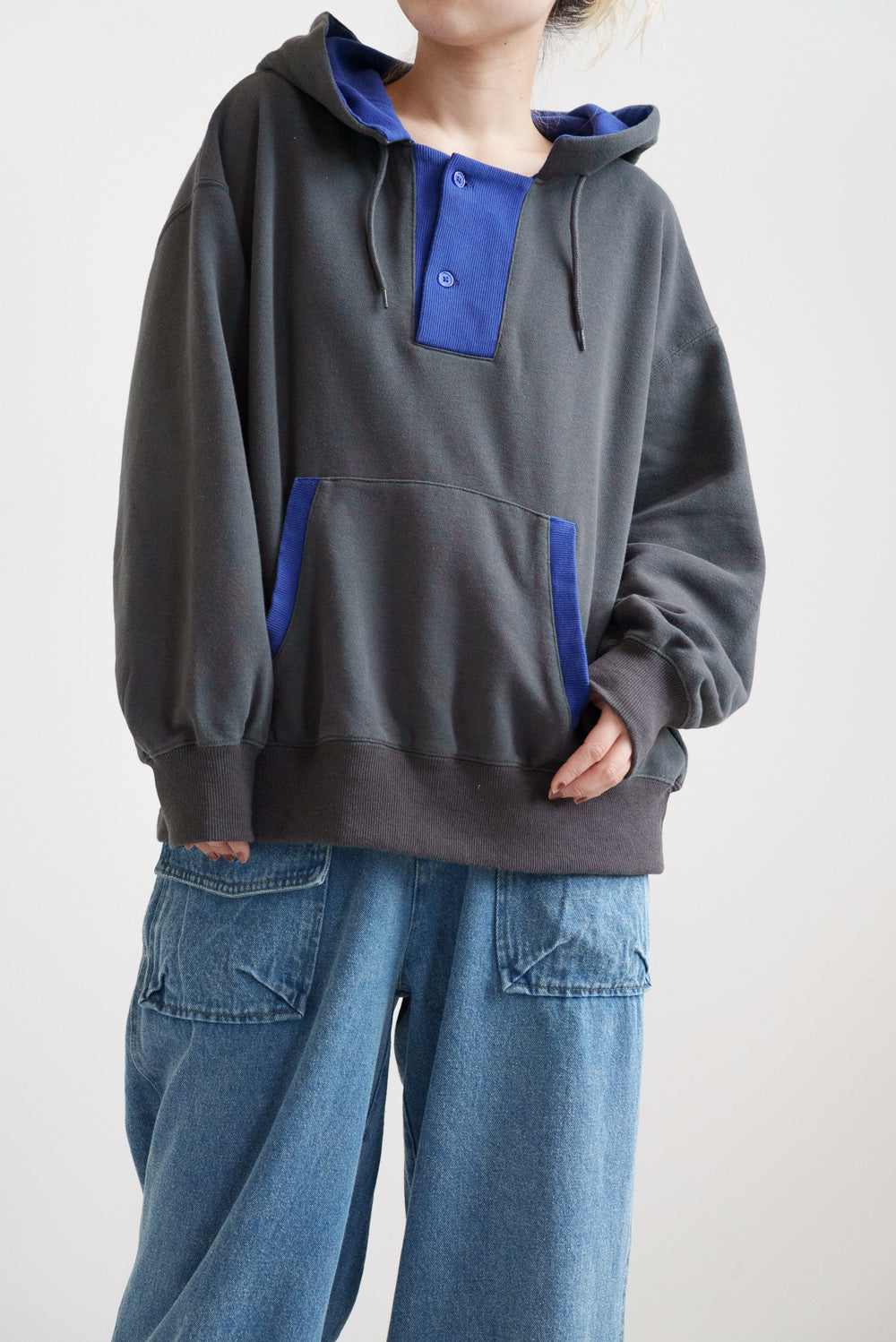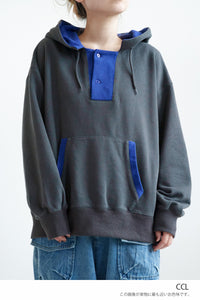 配色切り替えとビンテージ加工が、さっと着るだけでこなれた印象に仕上げてくれるフーディーパーカー。