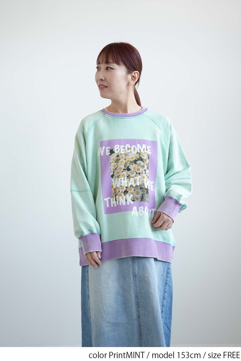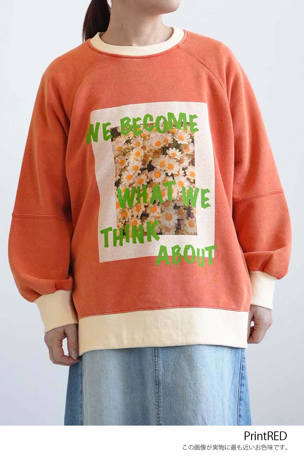 ノスタルジックな気分をまとえる、レトロフラワープリントの裏毛プルオーバー。