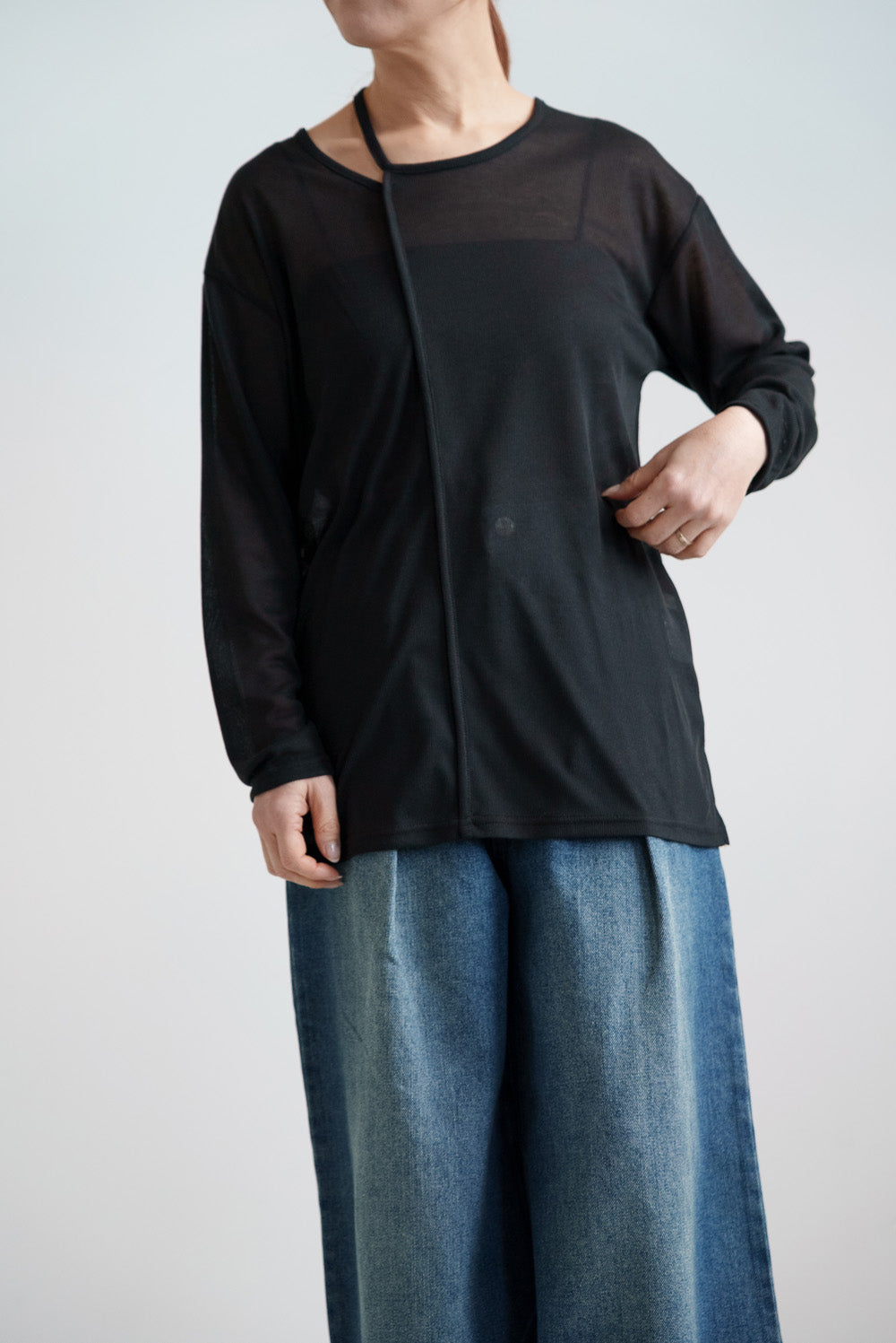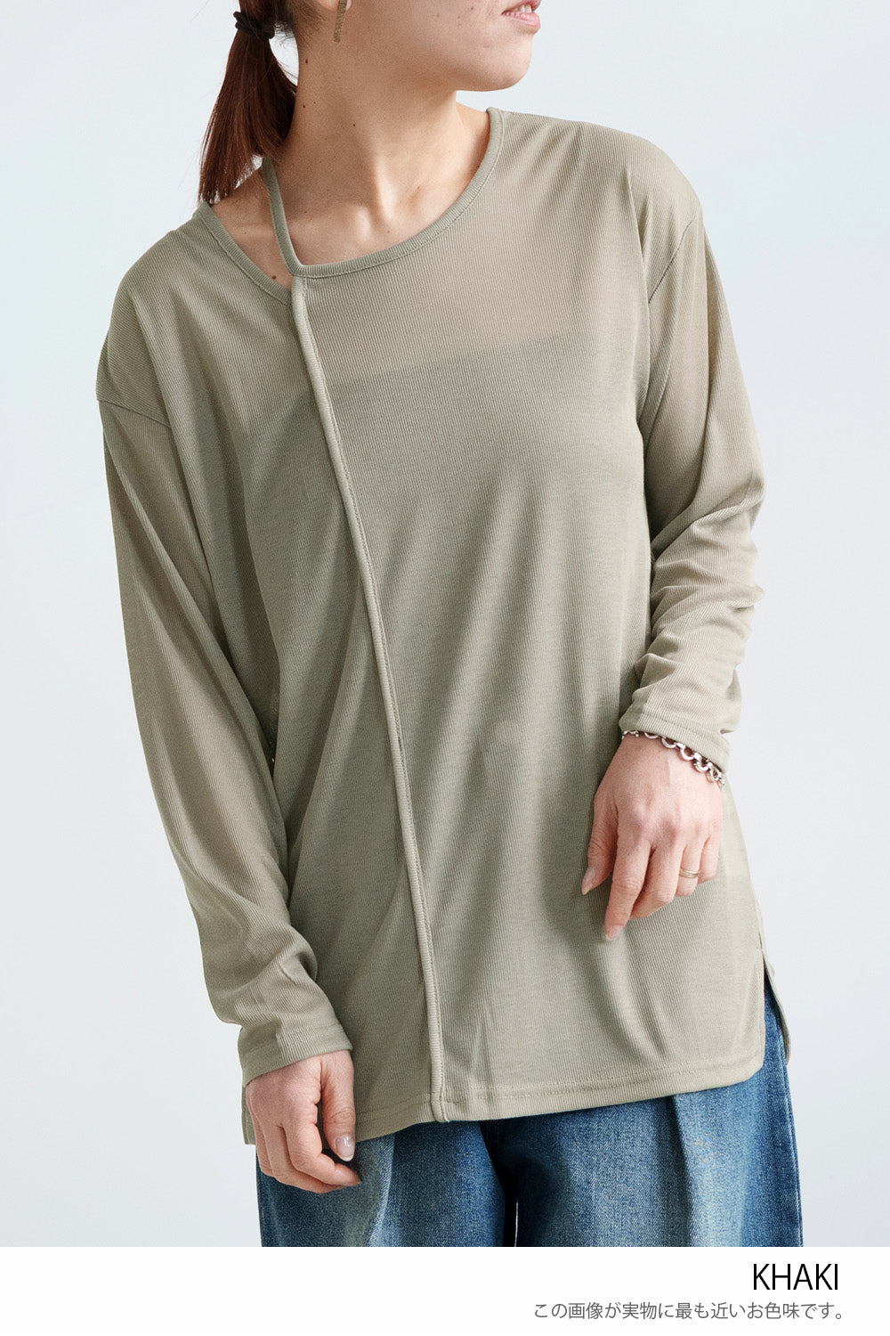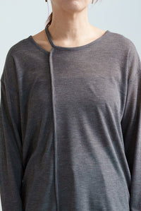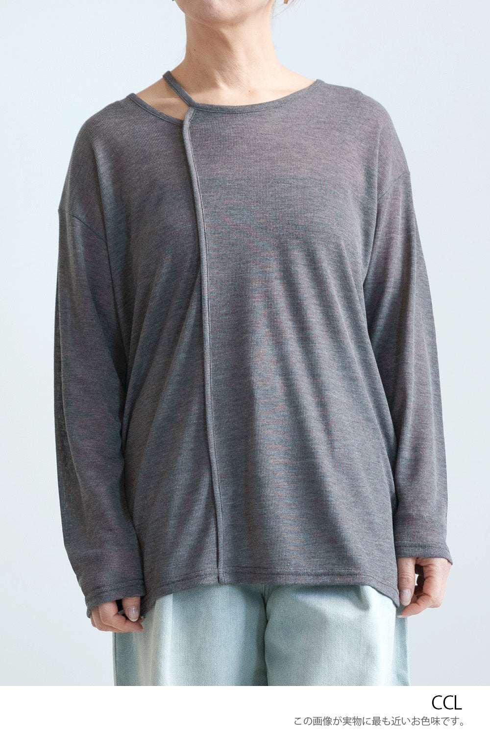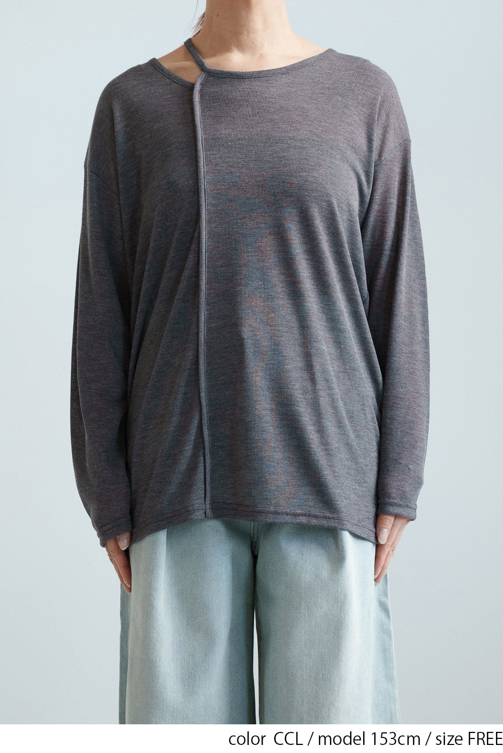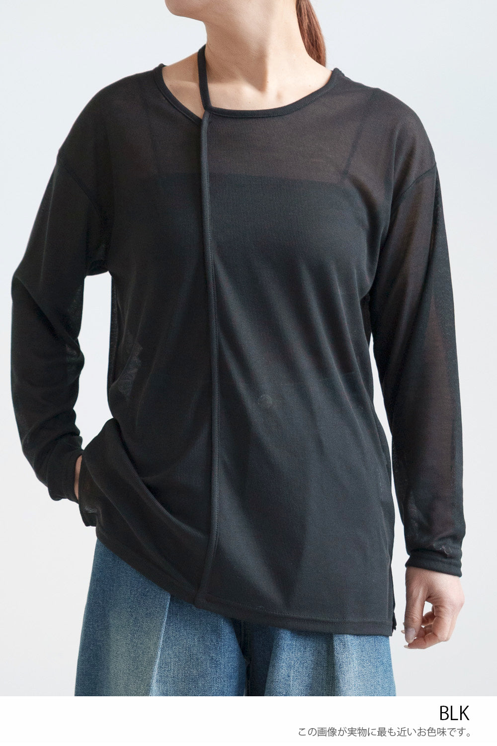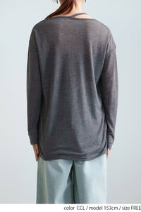 繊細なシアー感が魅力のテレコアシメネックロンT。
