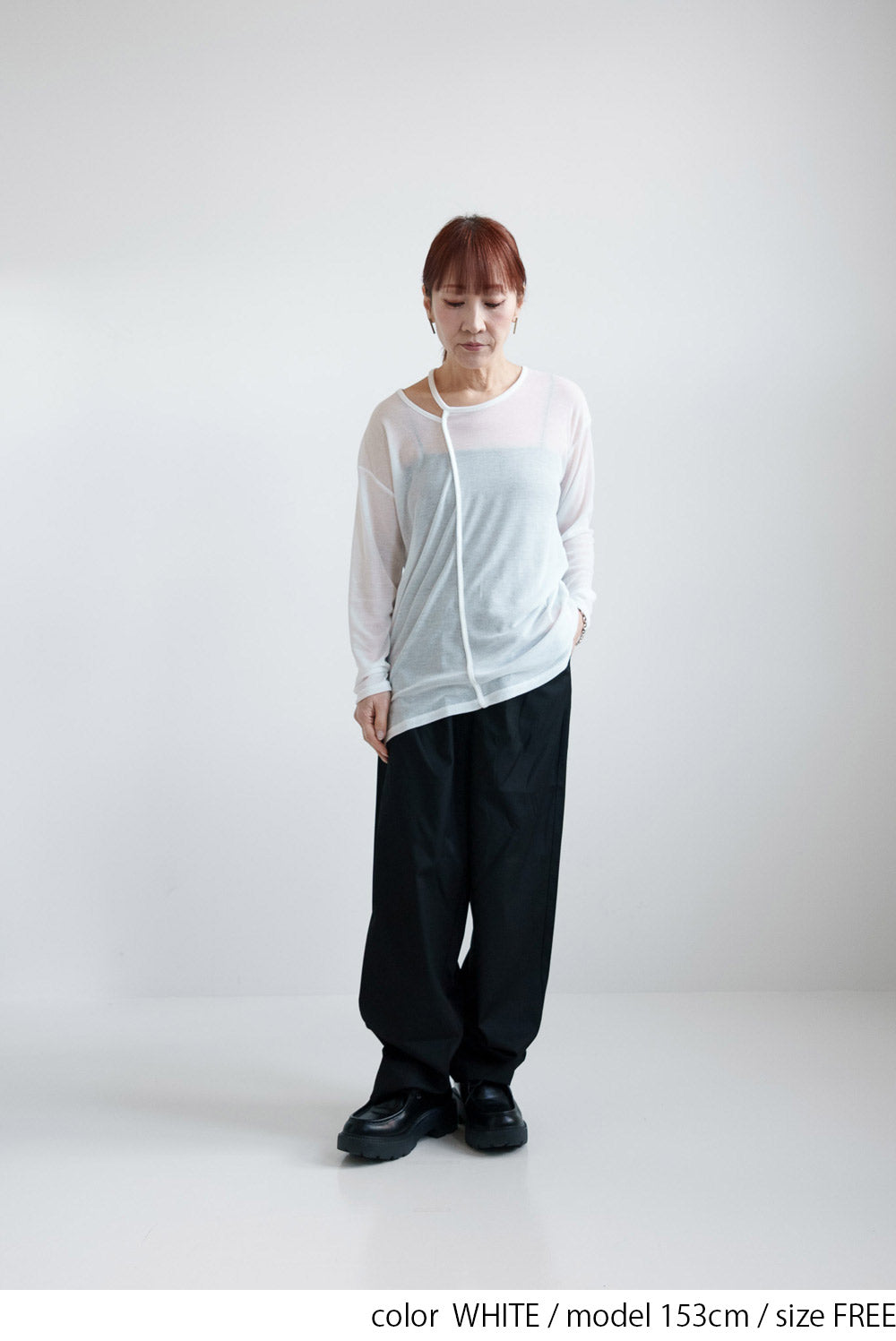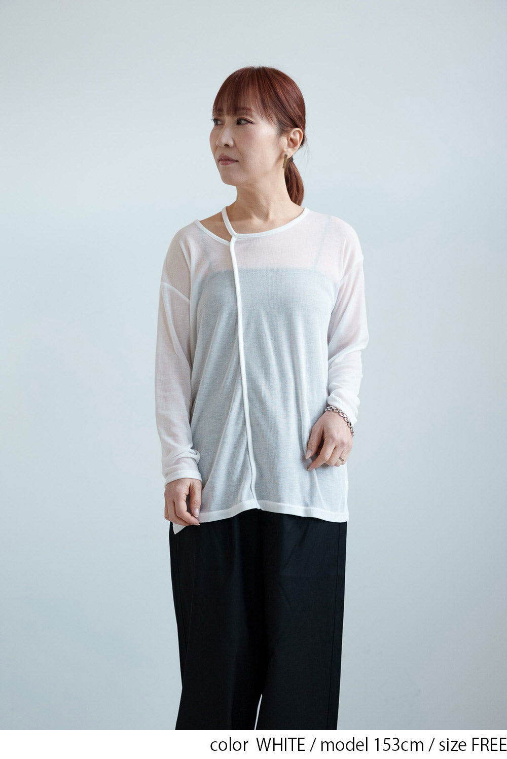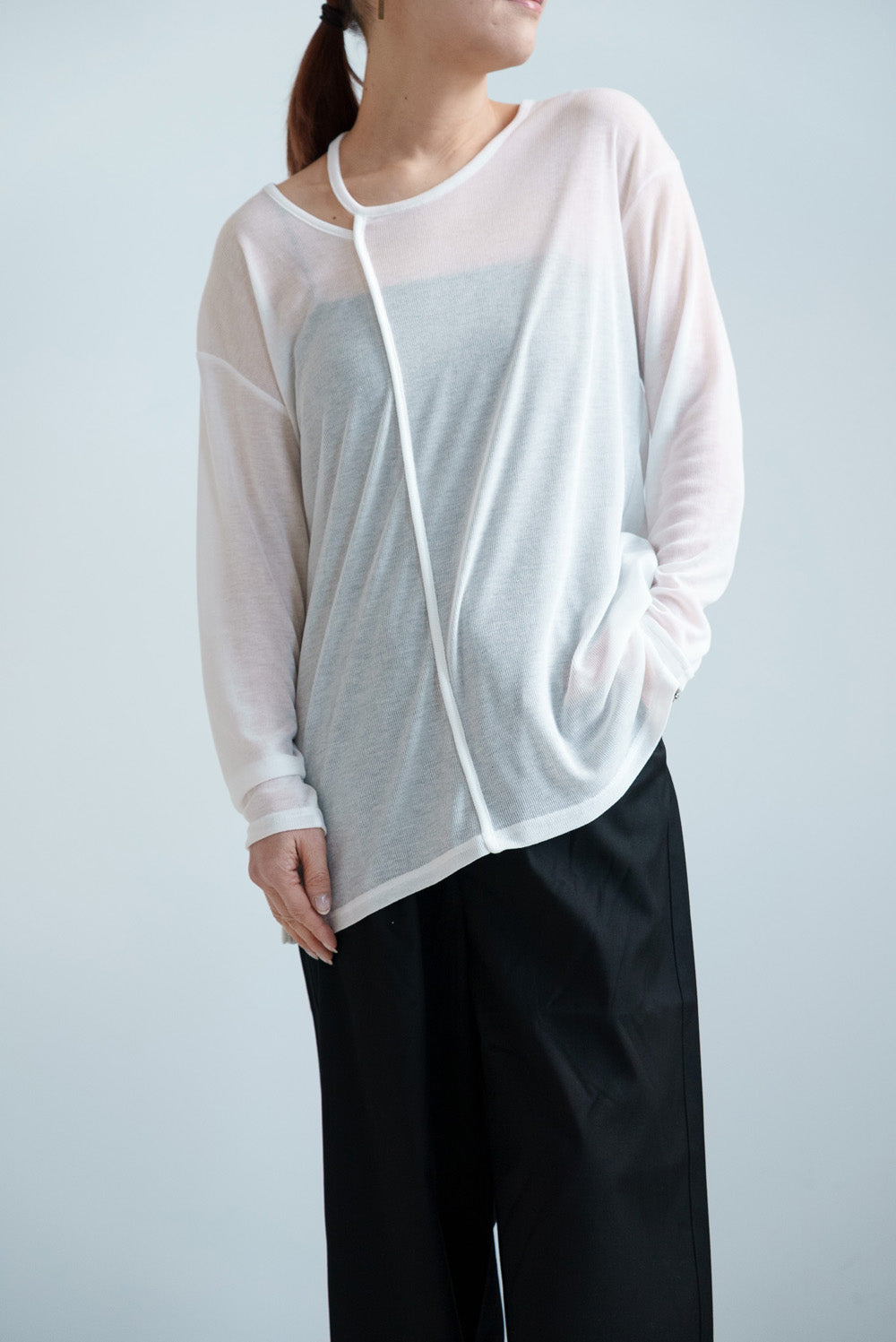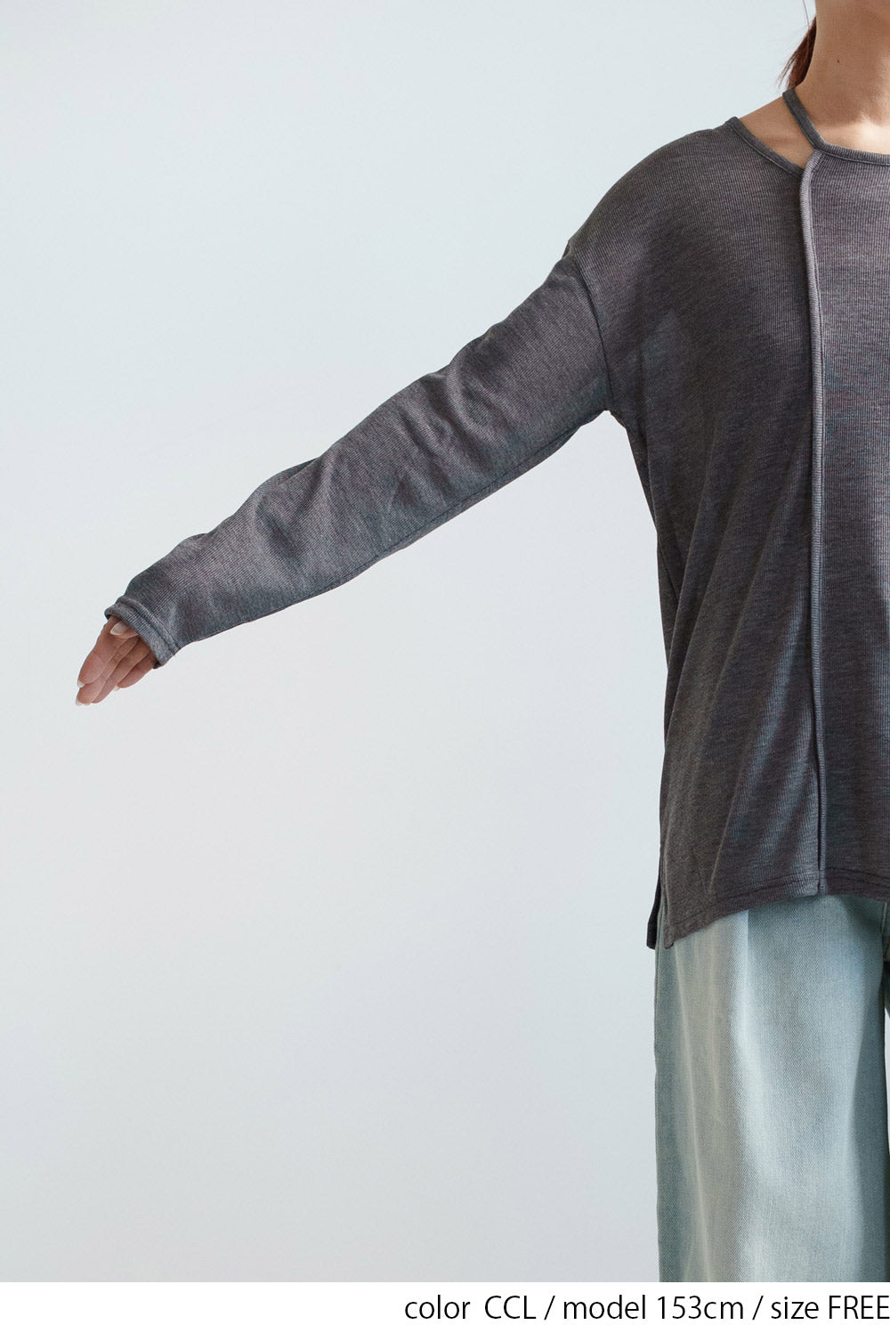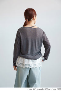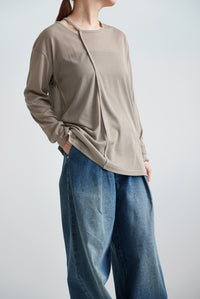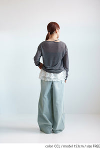 繊細なシアー感が魅力のテレコアシメネックロンT。