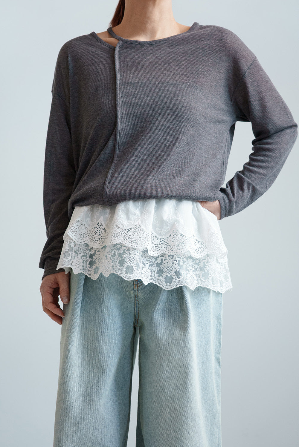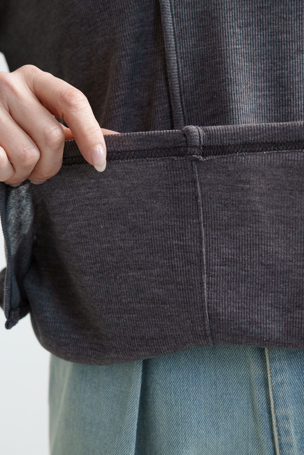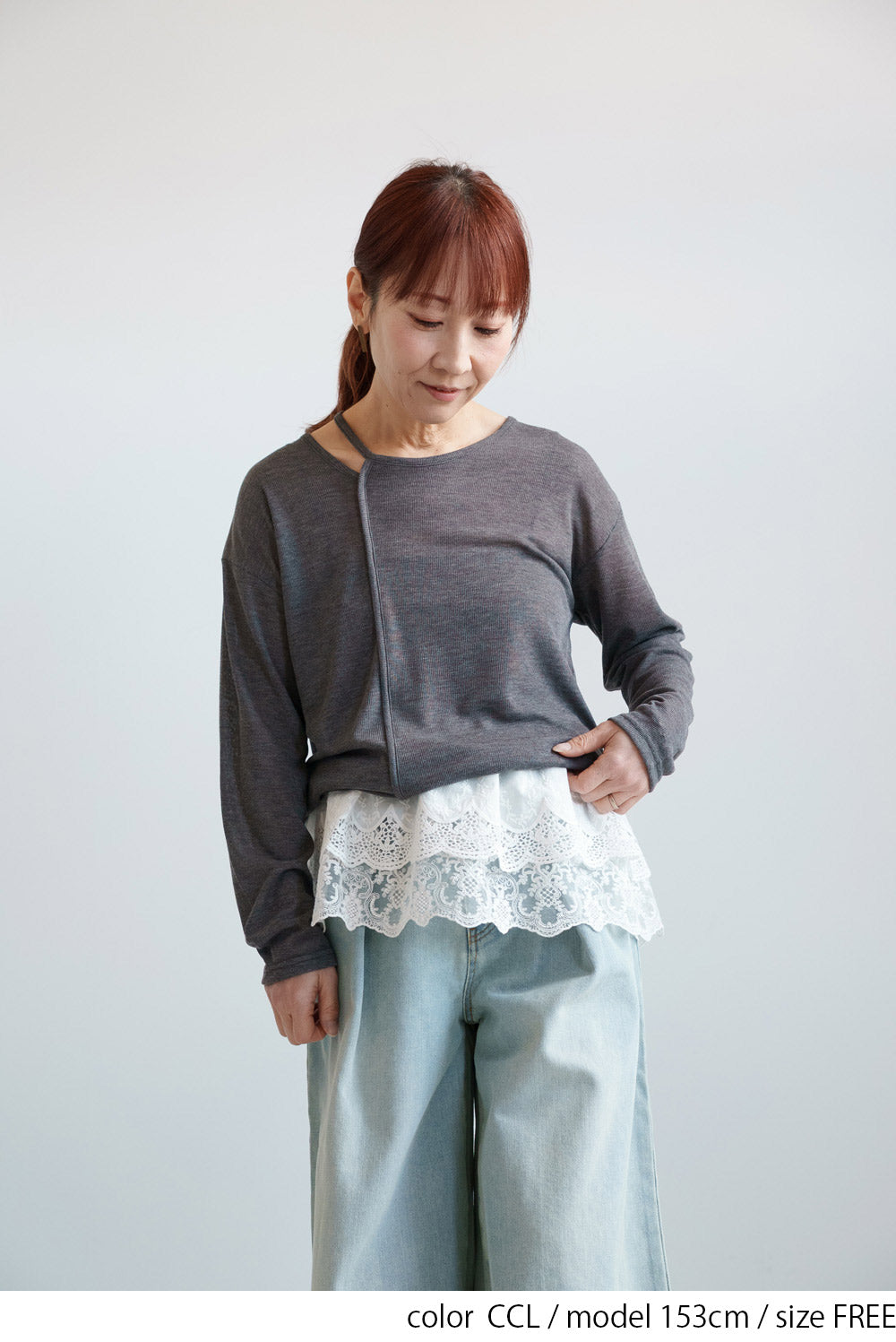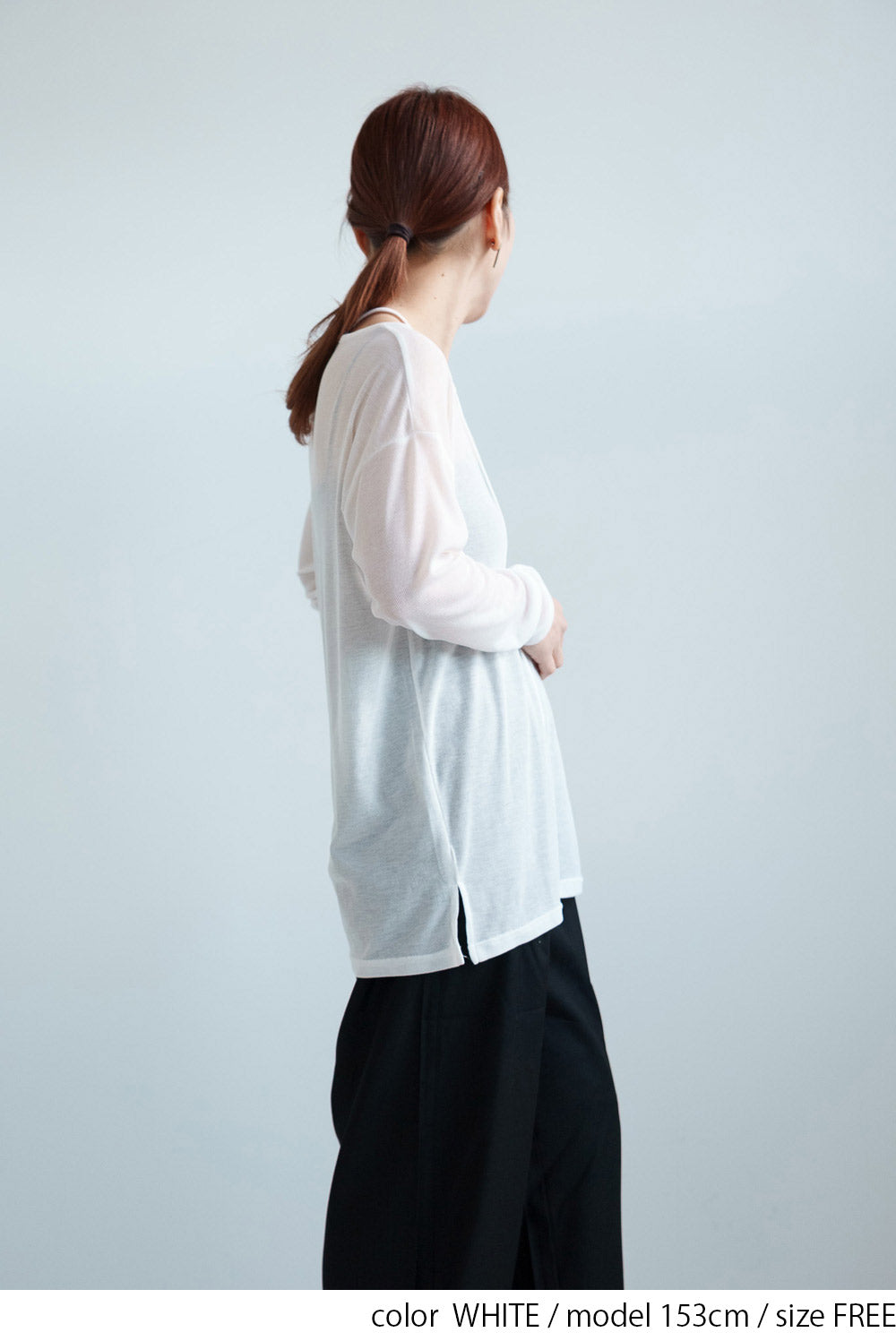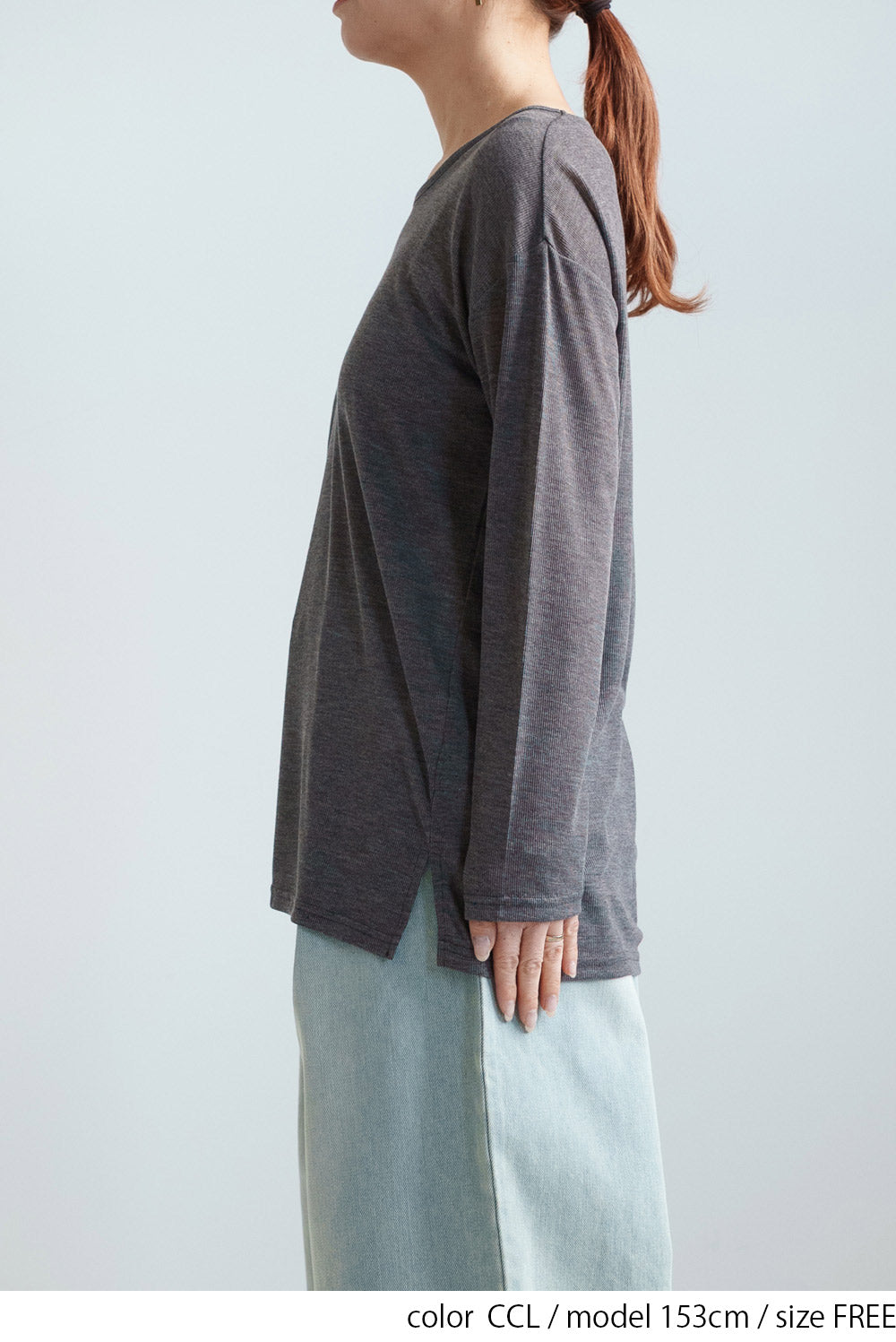 繊細なシアー感が魅力のテレコアシメネックロンT。