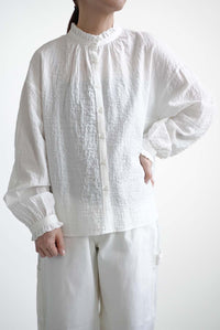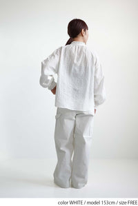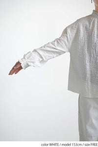 空気を含んだような軽やかな生地感とシルエットが、女性らしいソフトな印象を演出します。