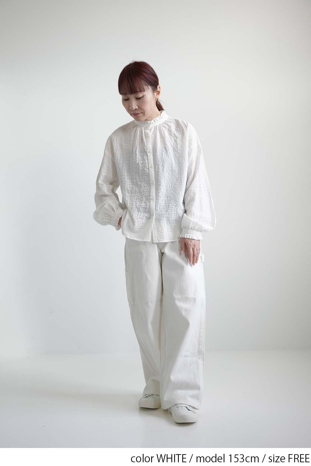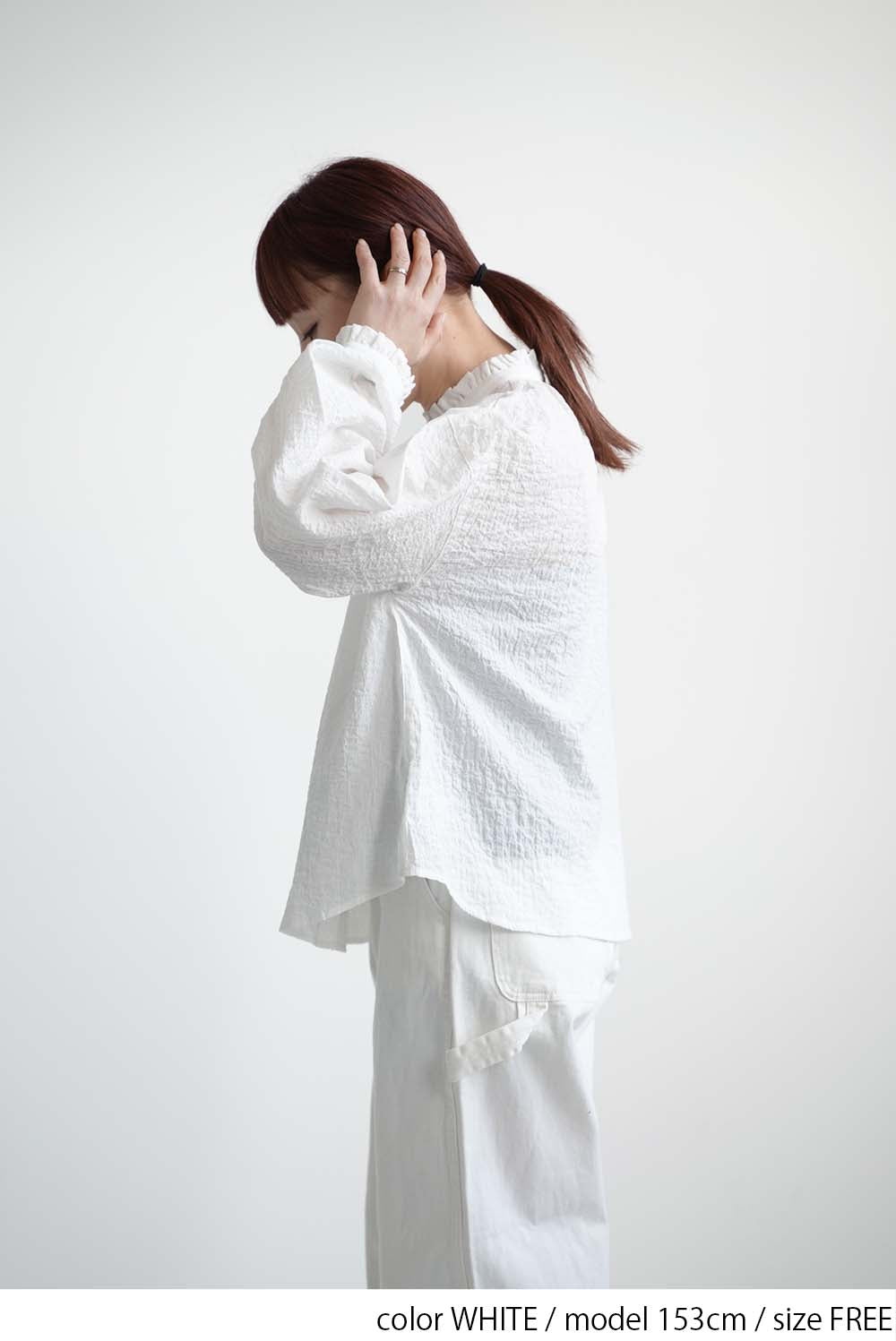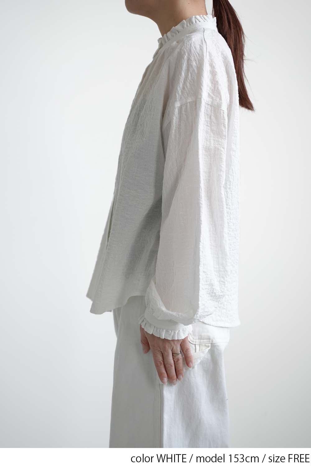 ふんわりと柔らかな風合いが魅力の襟フリルブラウス。