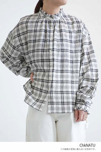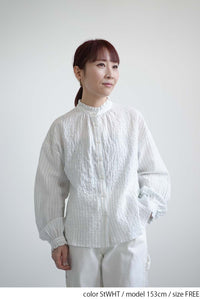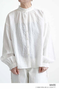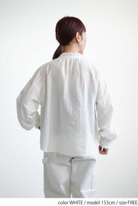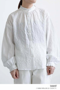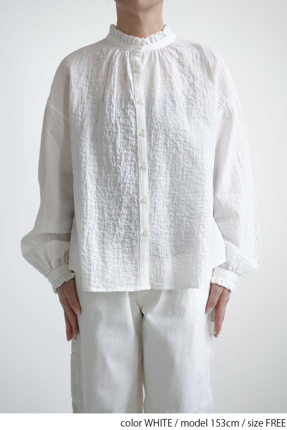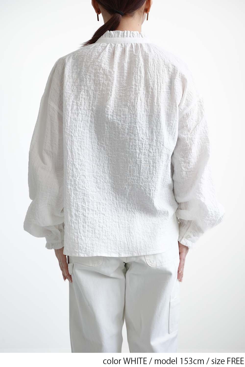 ふんわりと柔らかな風合いが魅力の襟フリルブラウス。